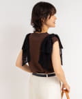 《手洗い可能》肩シアーリボンノースリーブプルオーバーニット