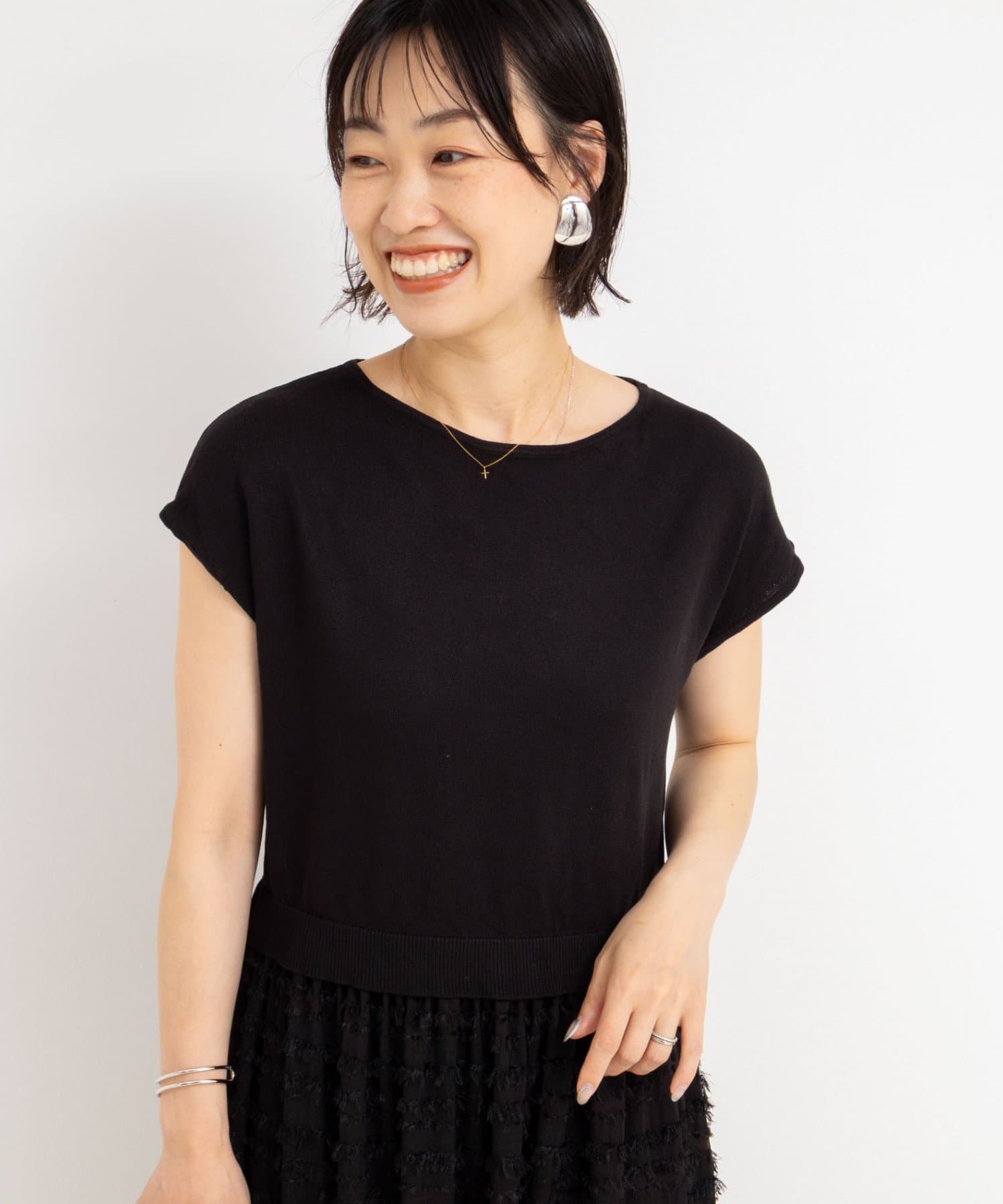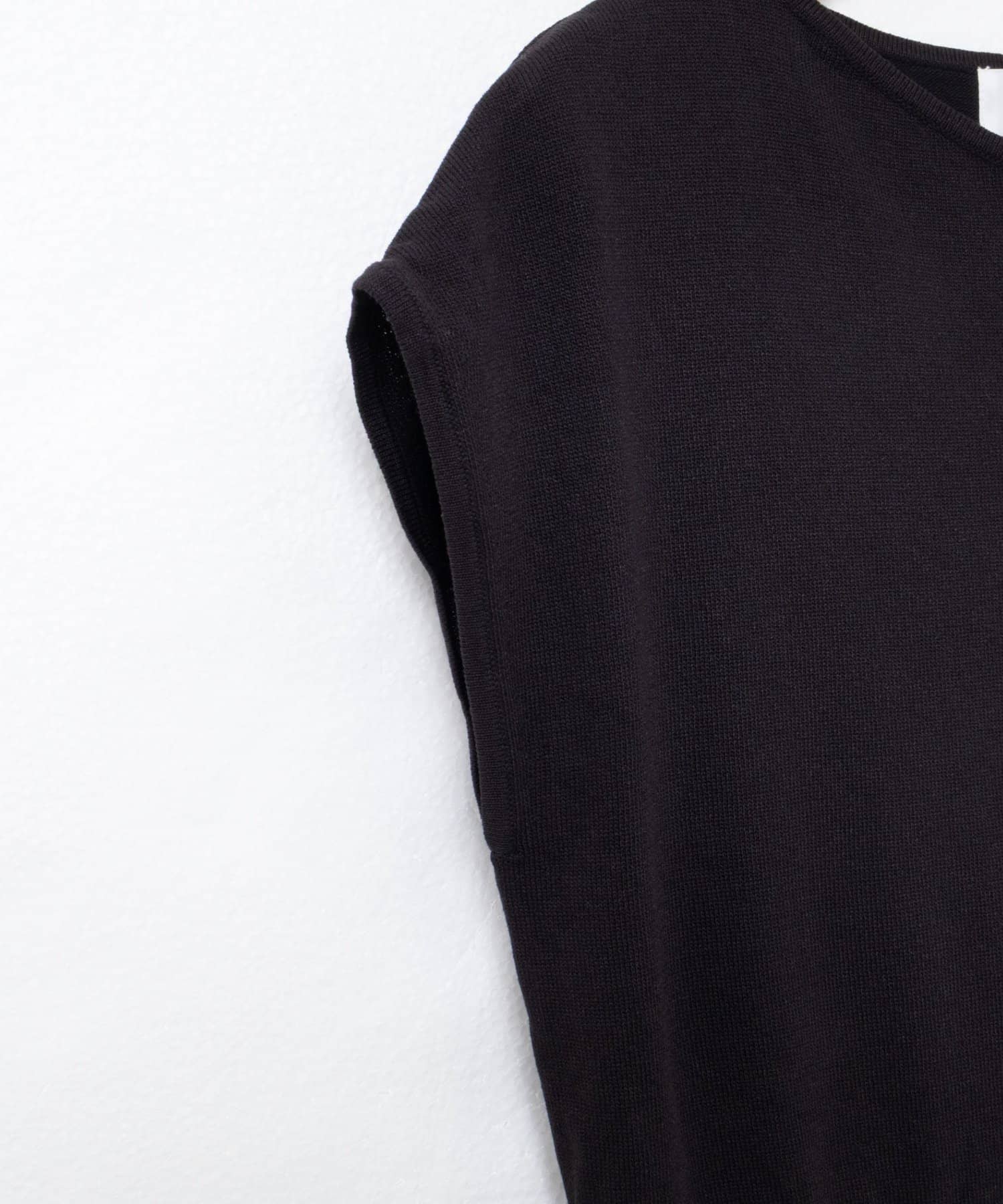 ・上身頃はストレッチ麻のようなさっぱりした風合いのノースリーブニット