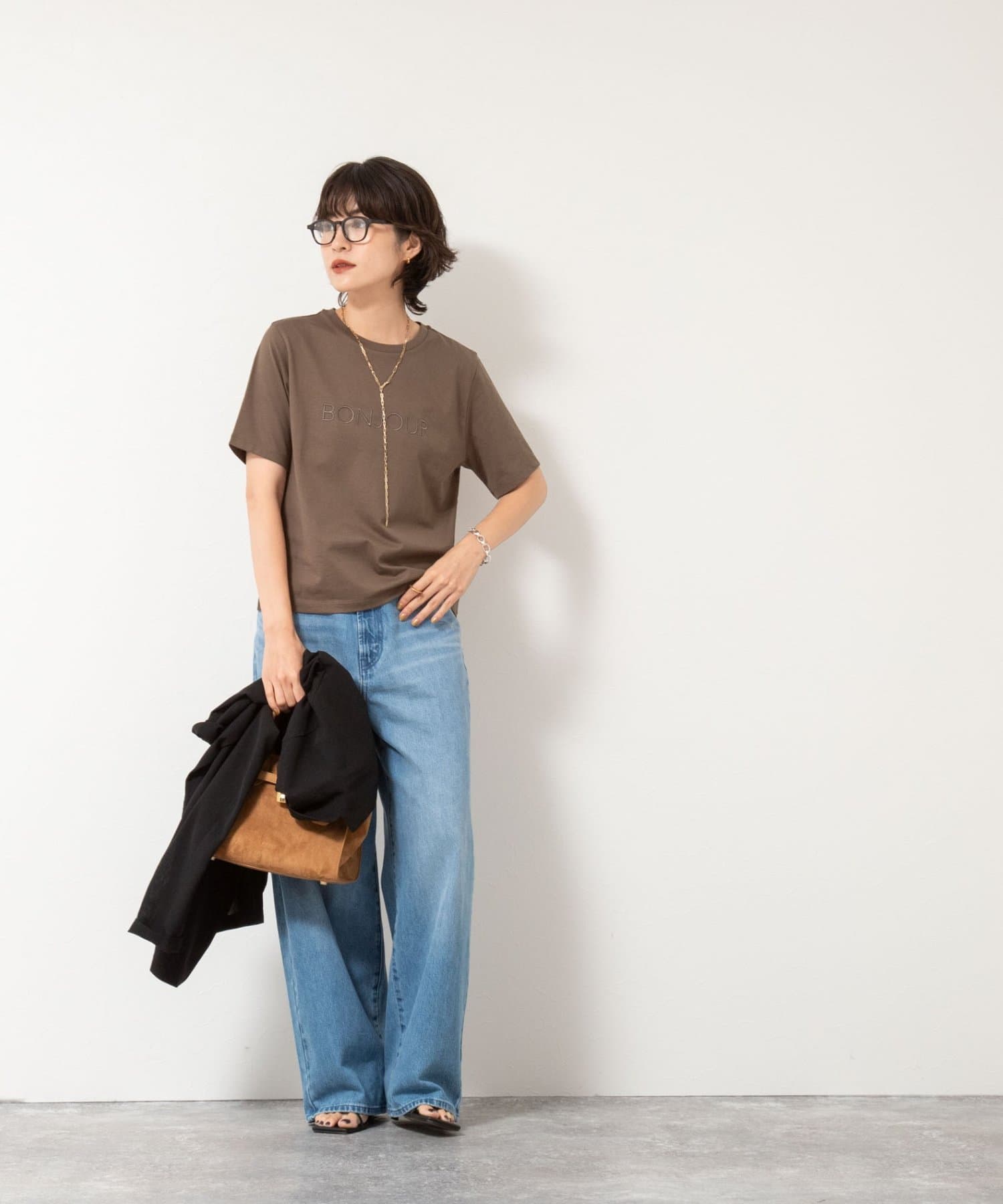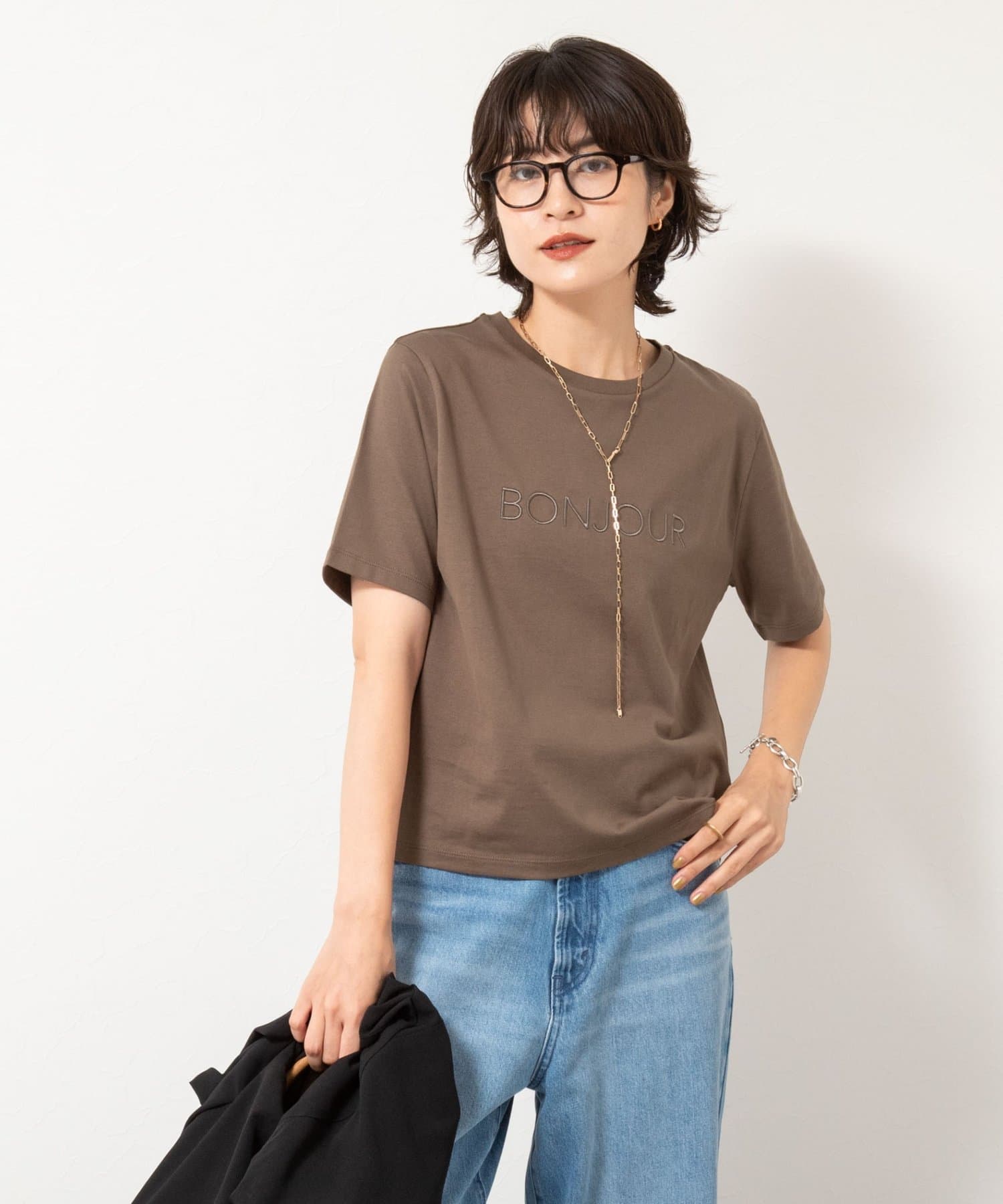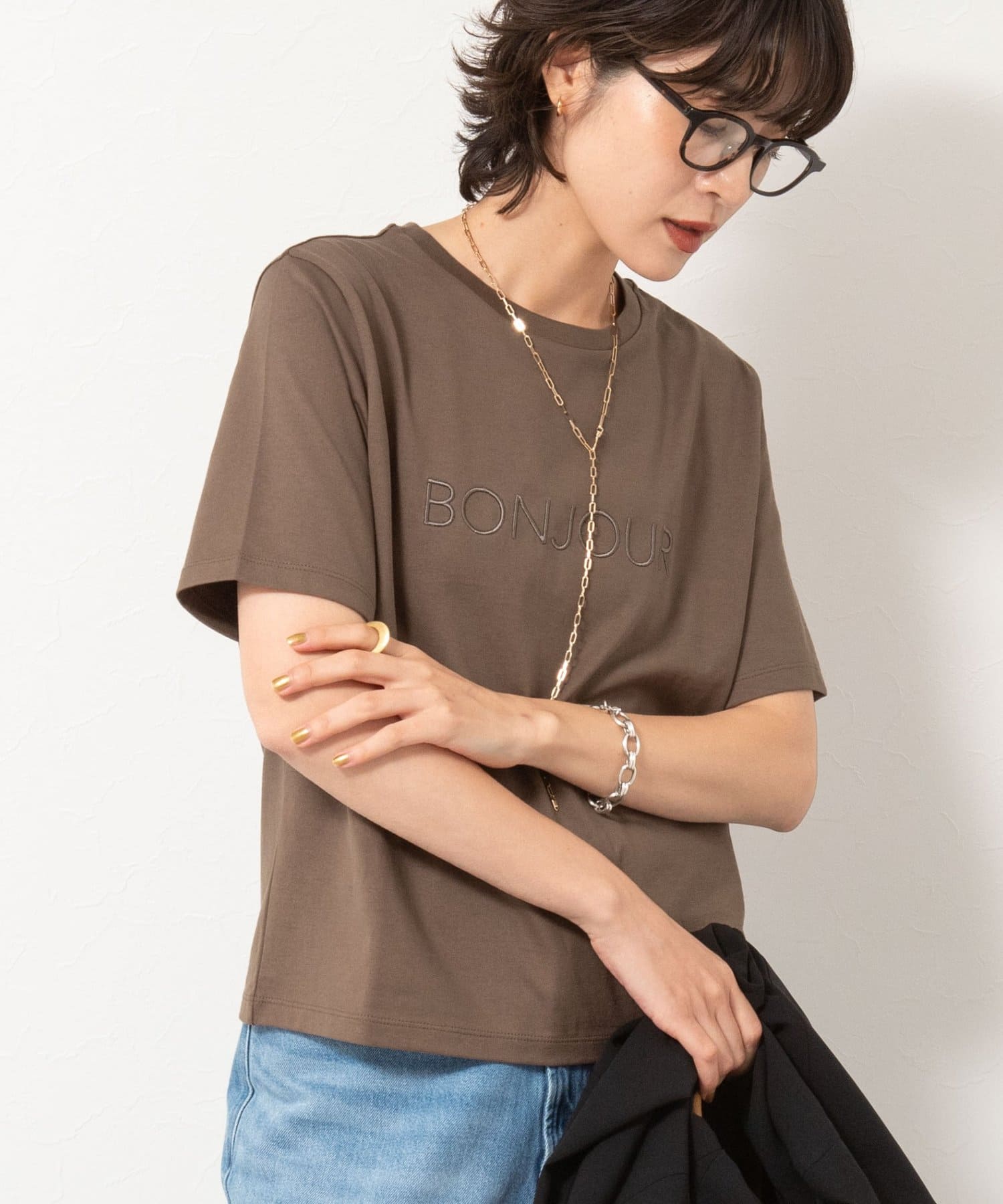TOP > NOLLEY'S > レディース > トップス > Tシャツ/カットソー > BONJOUR刺繍Tシャツ