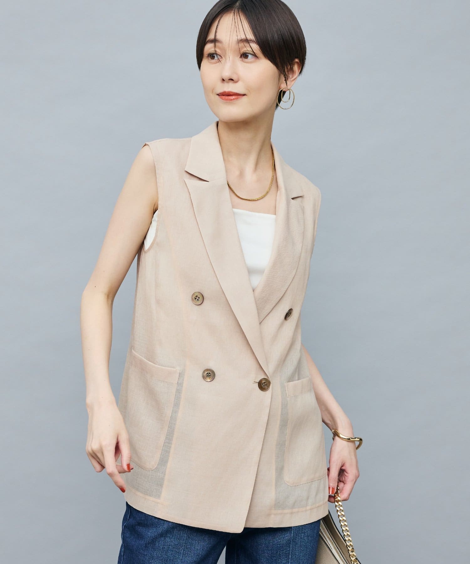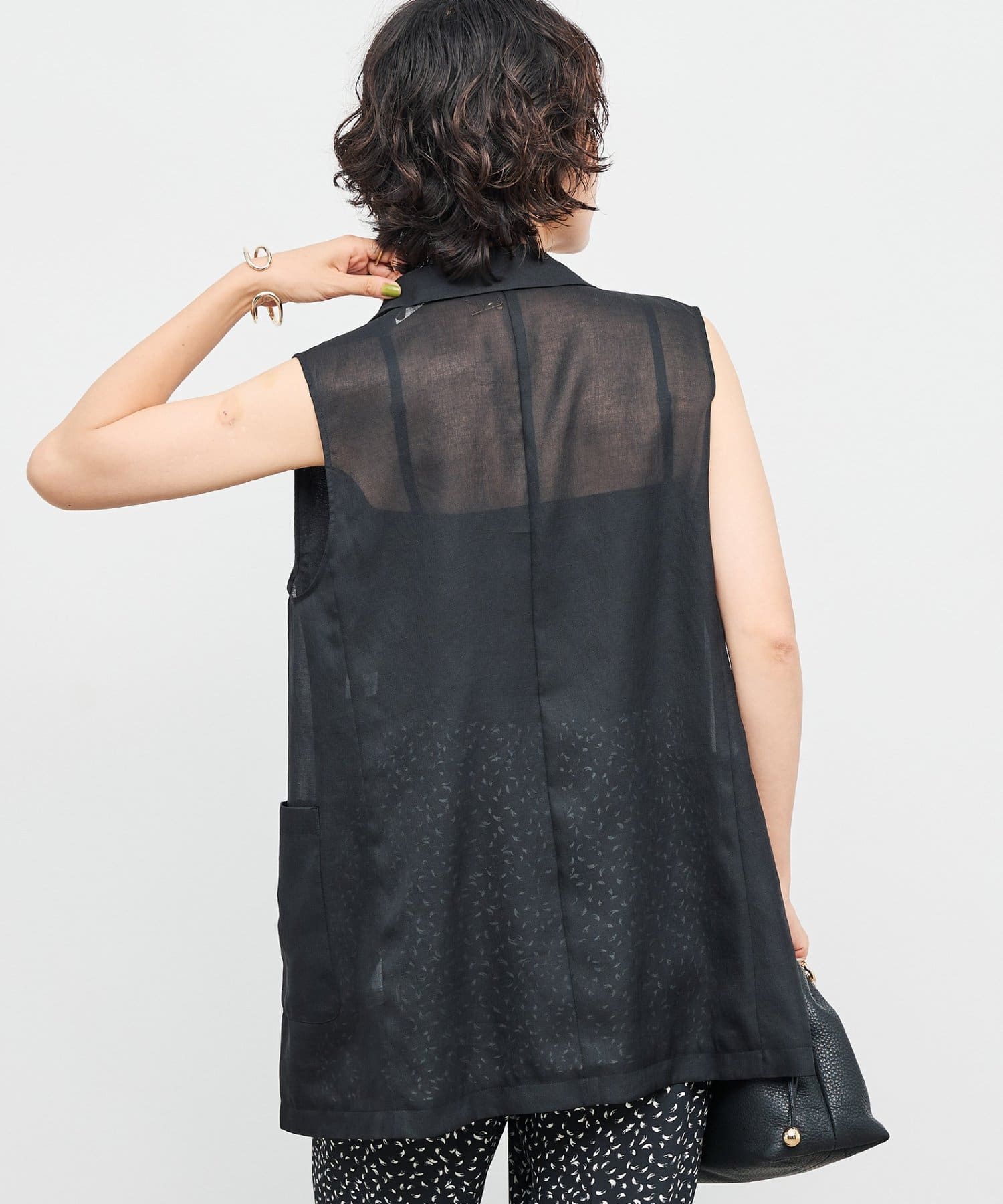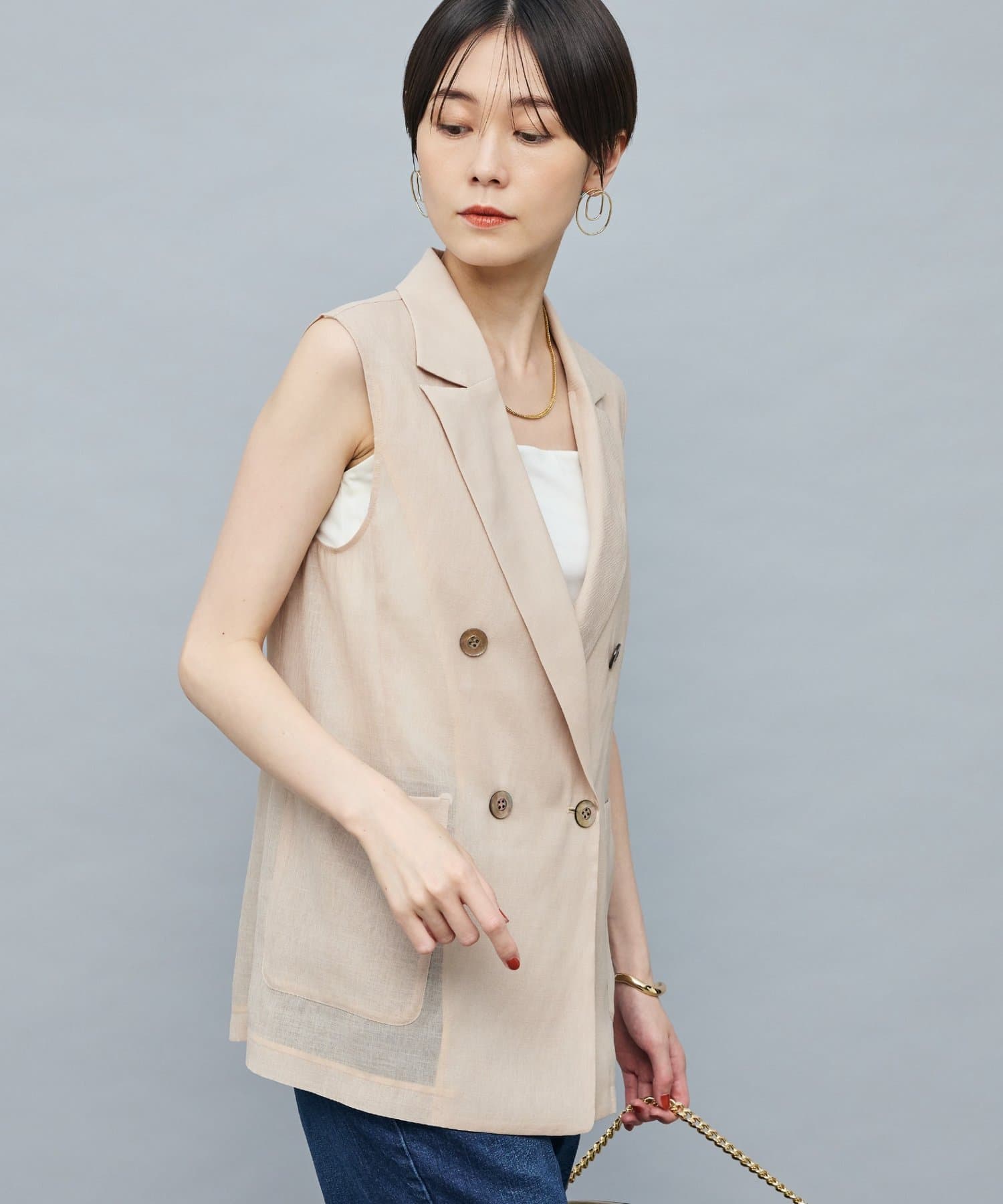 ・スラブ糸のようなかすれた表情が特徴のリネン風シアー素材のジレ