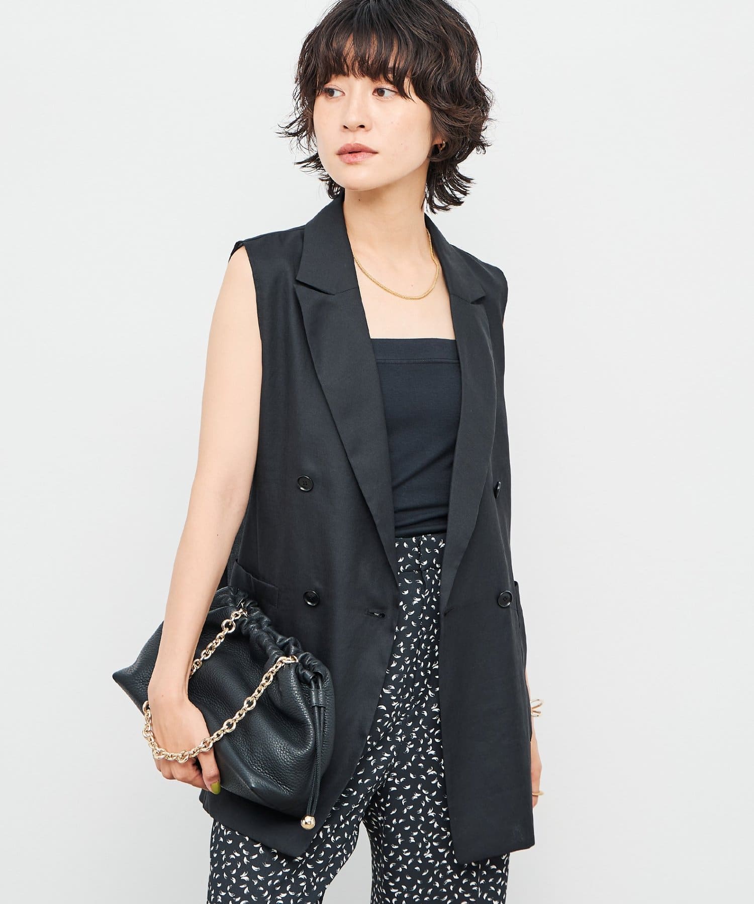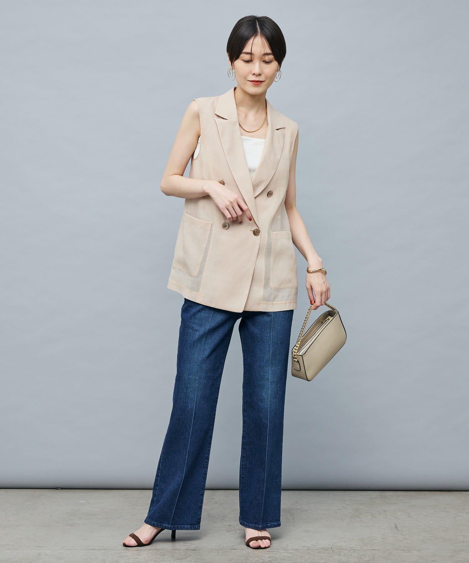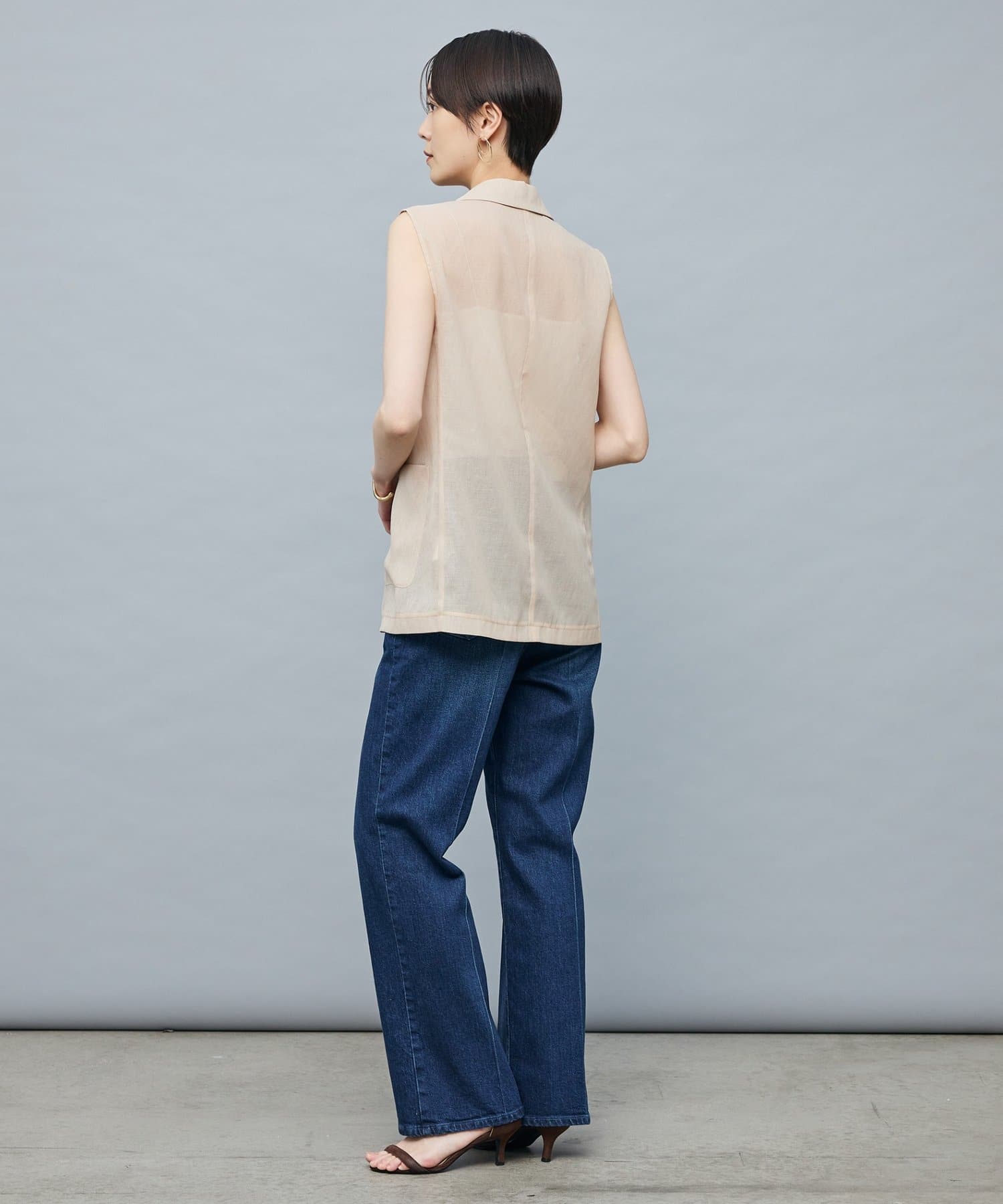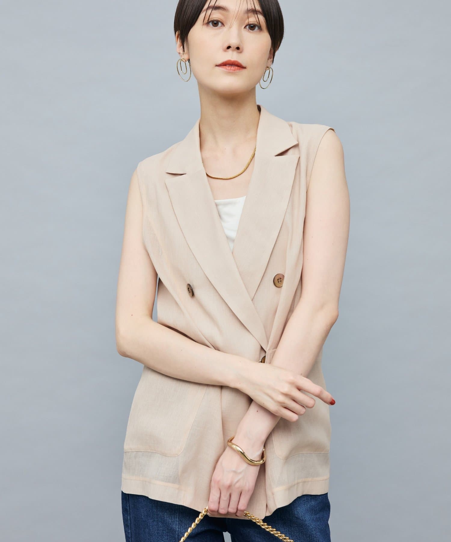 ・スラブ糸のようなかすれた表情が特徴のリネン風シアー素材のジレ
