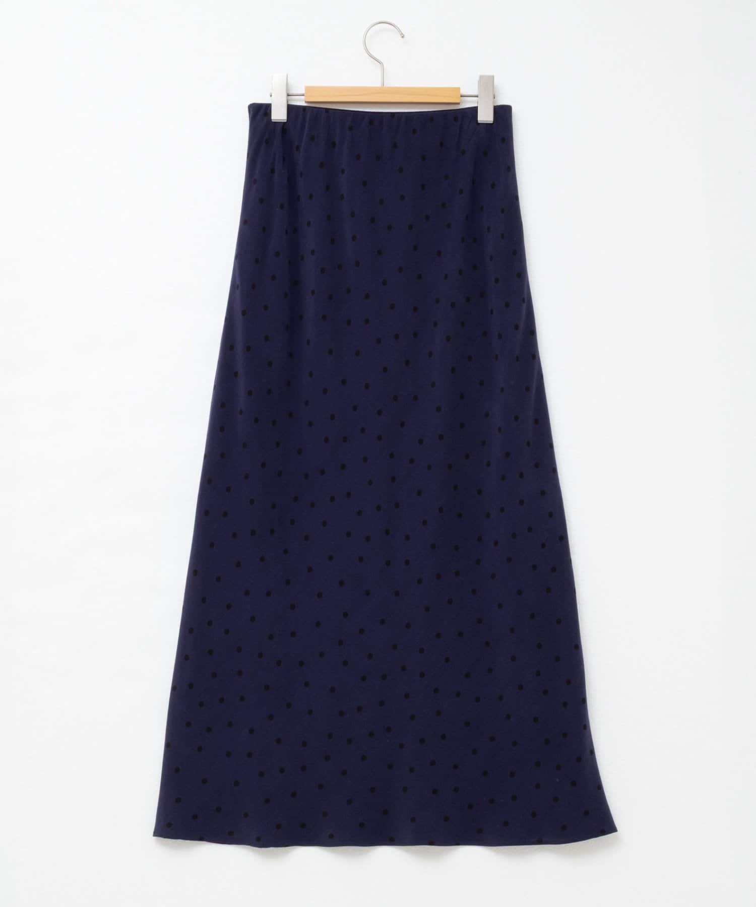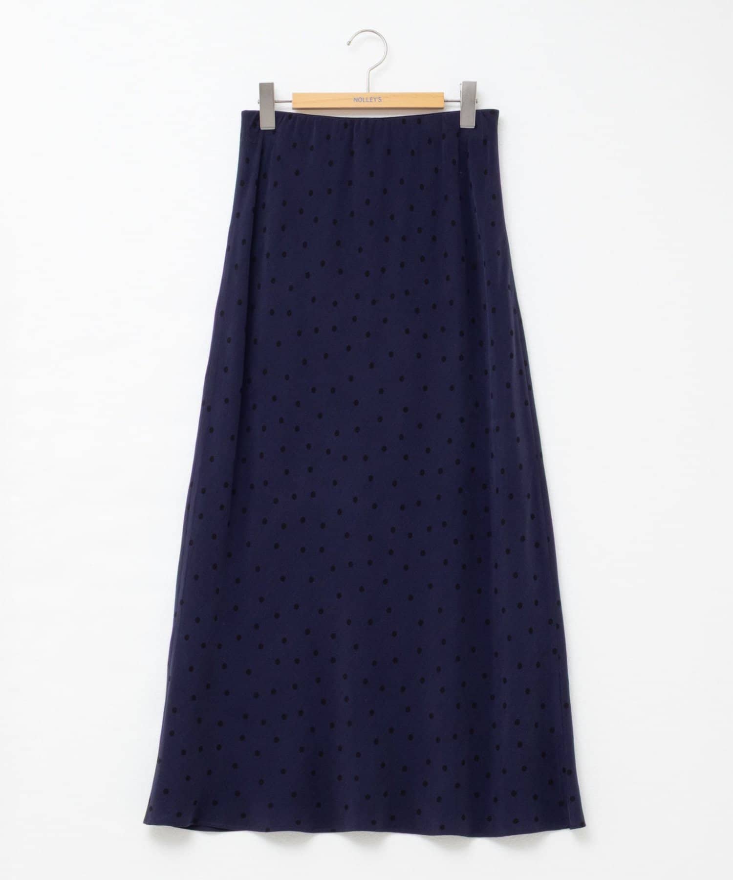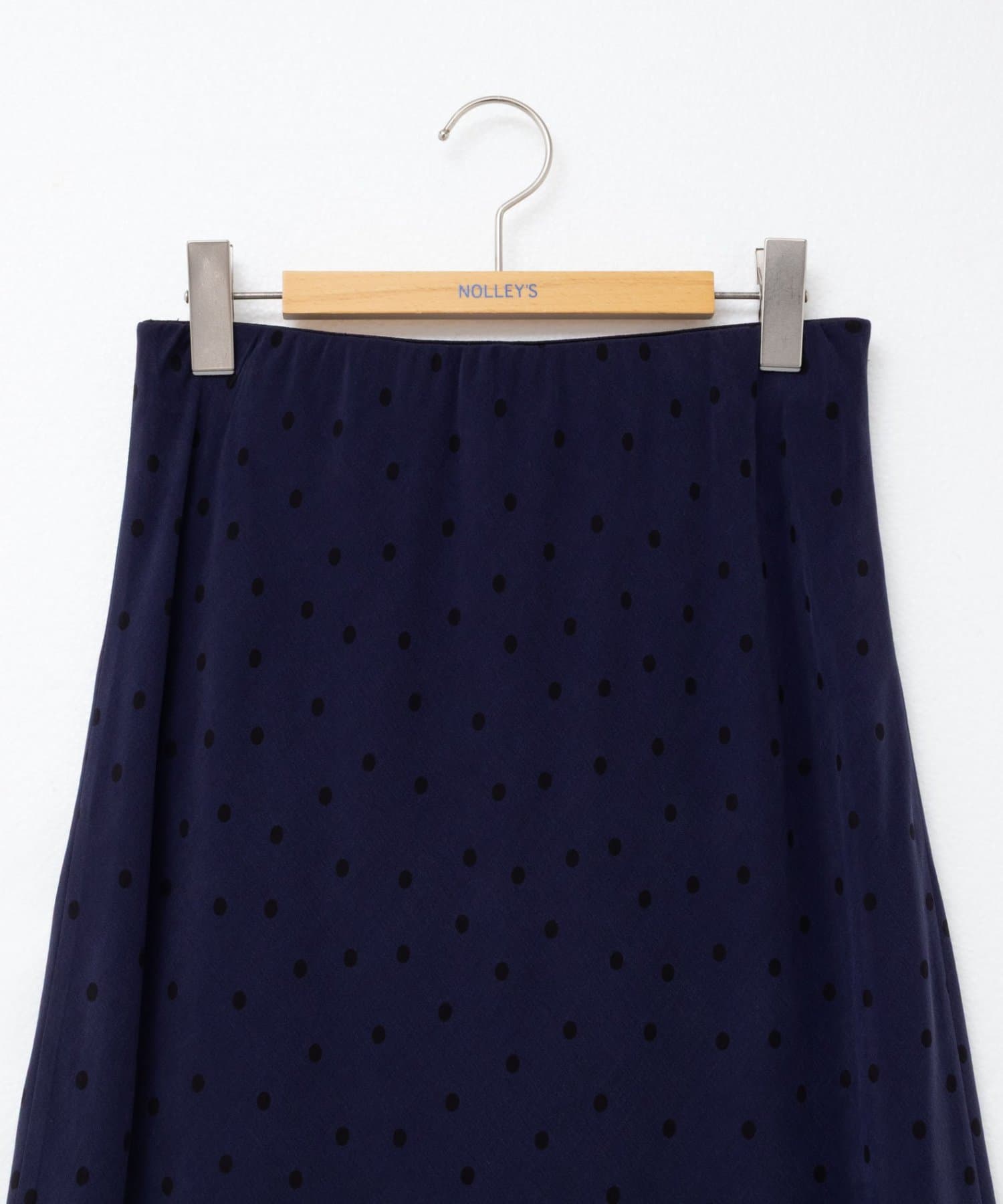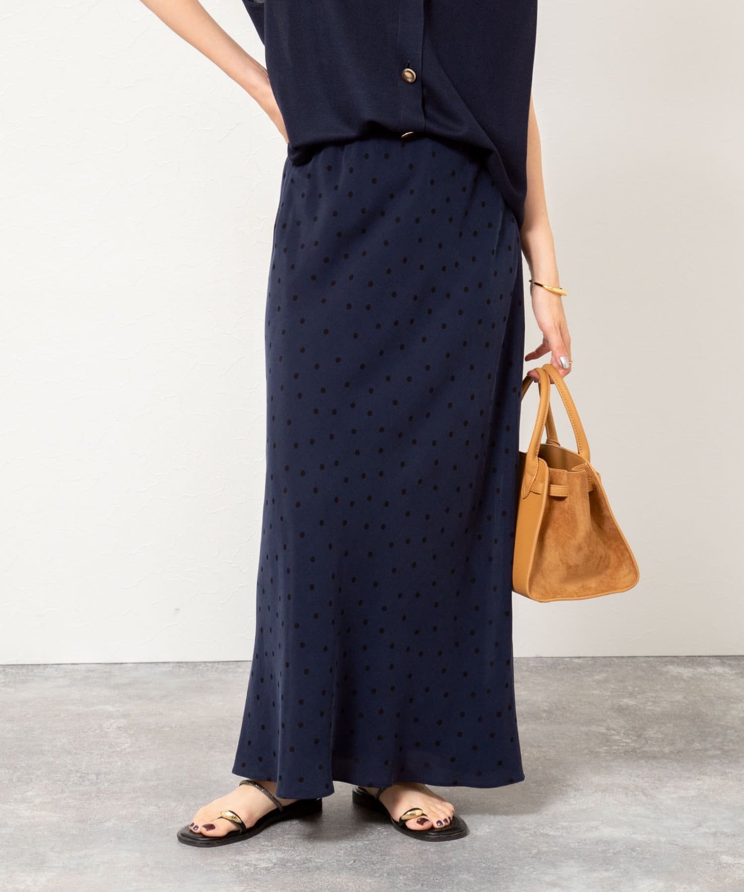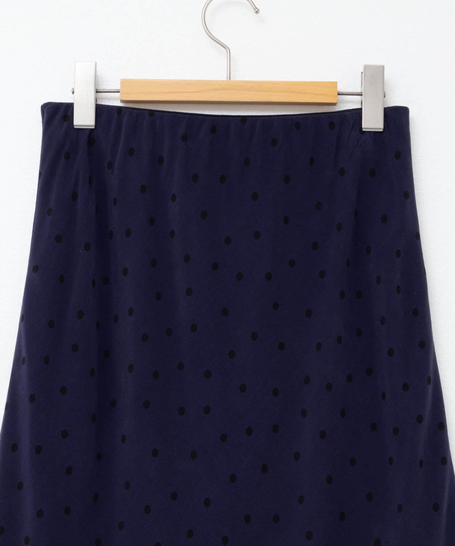 ・微光沢のある上品な生地にドットプリントが施されたナロースカート