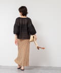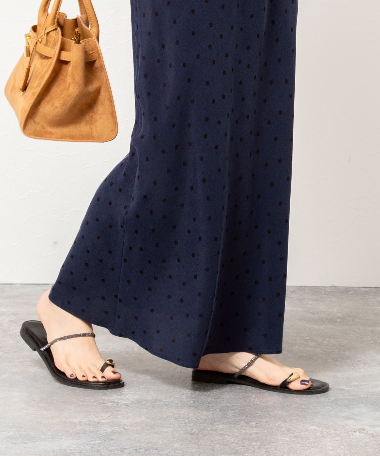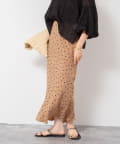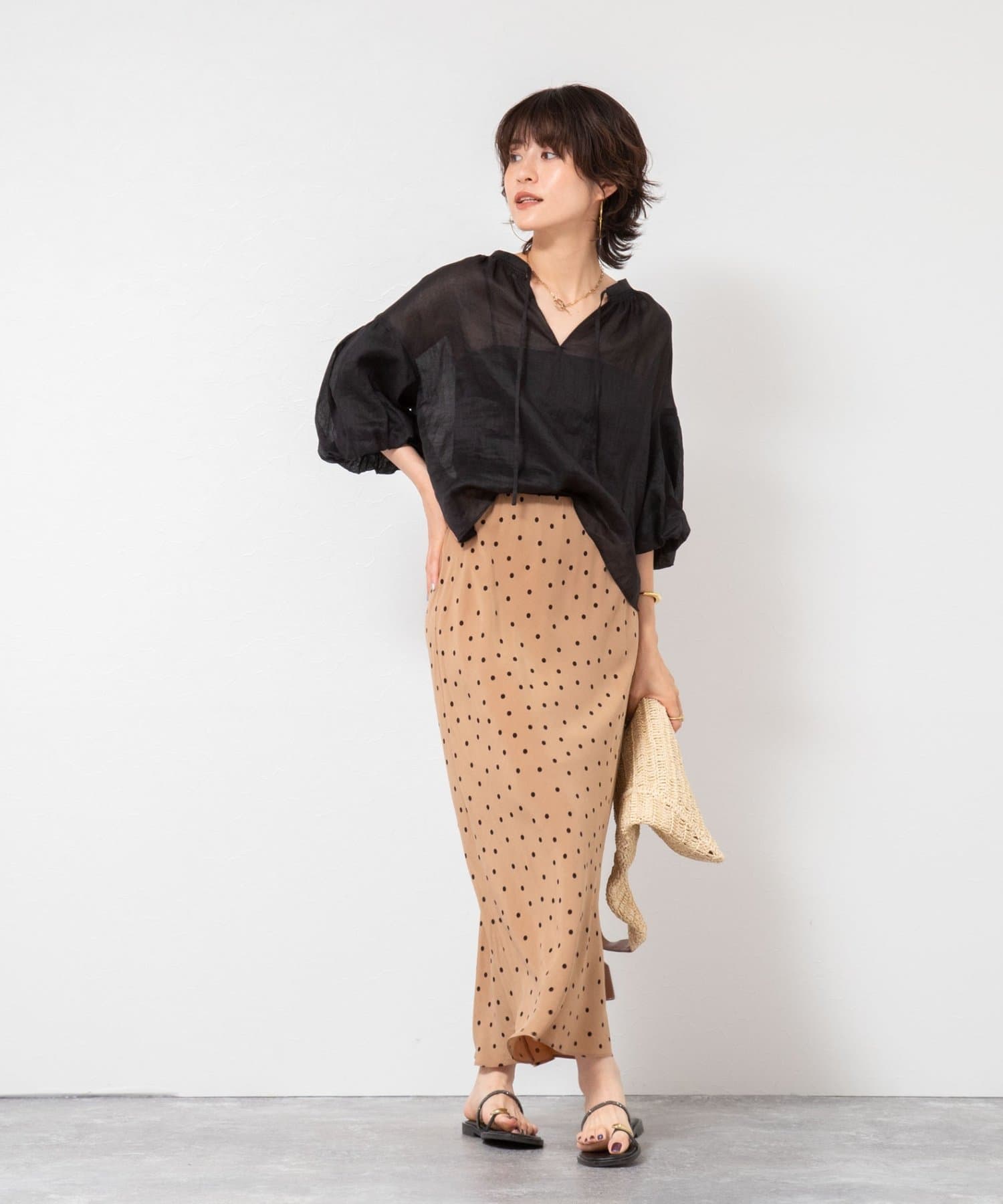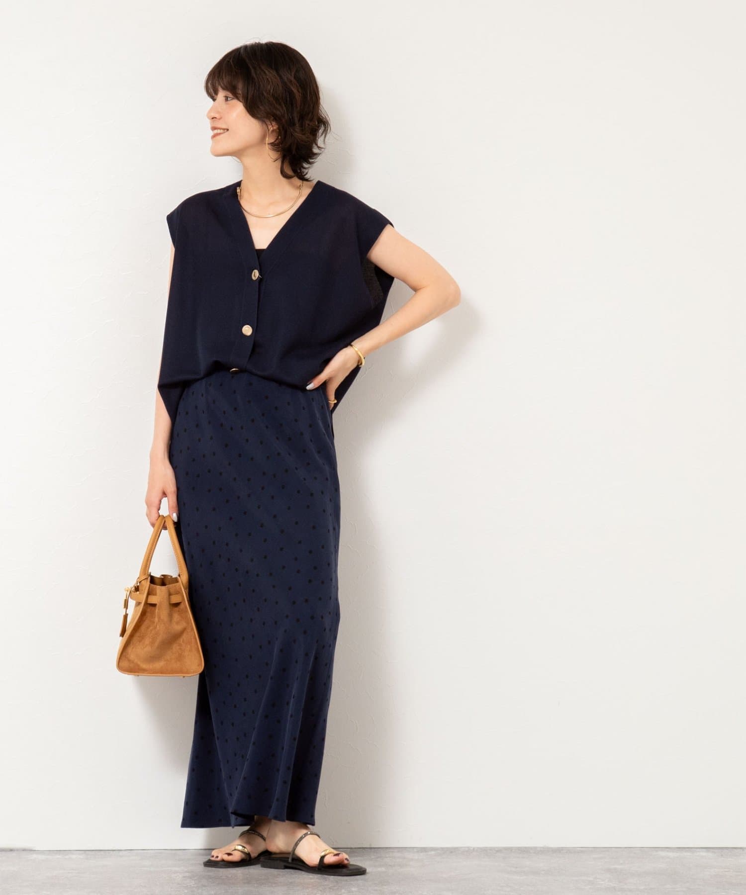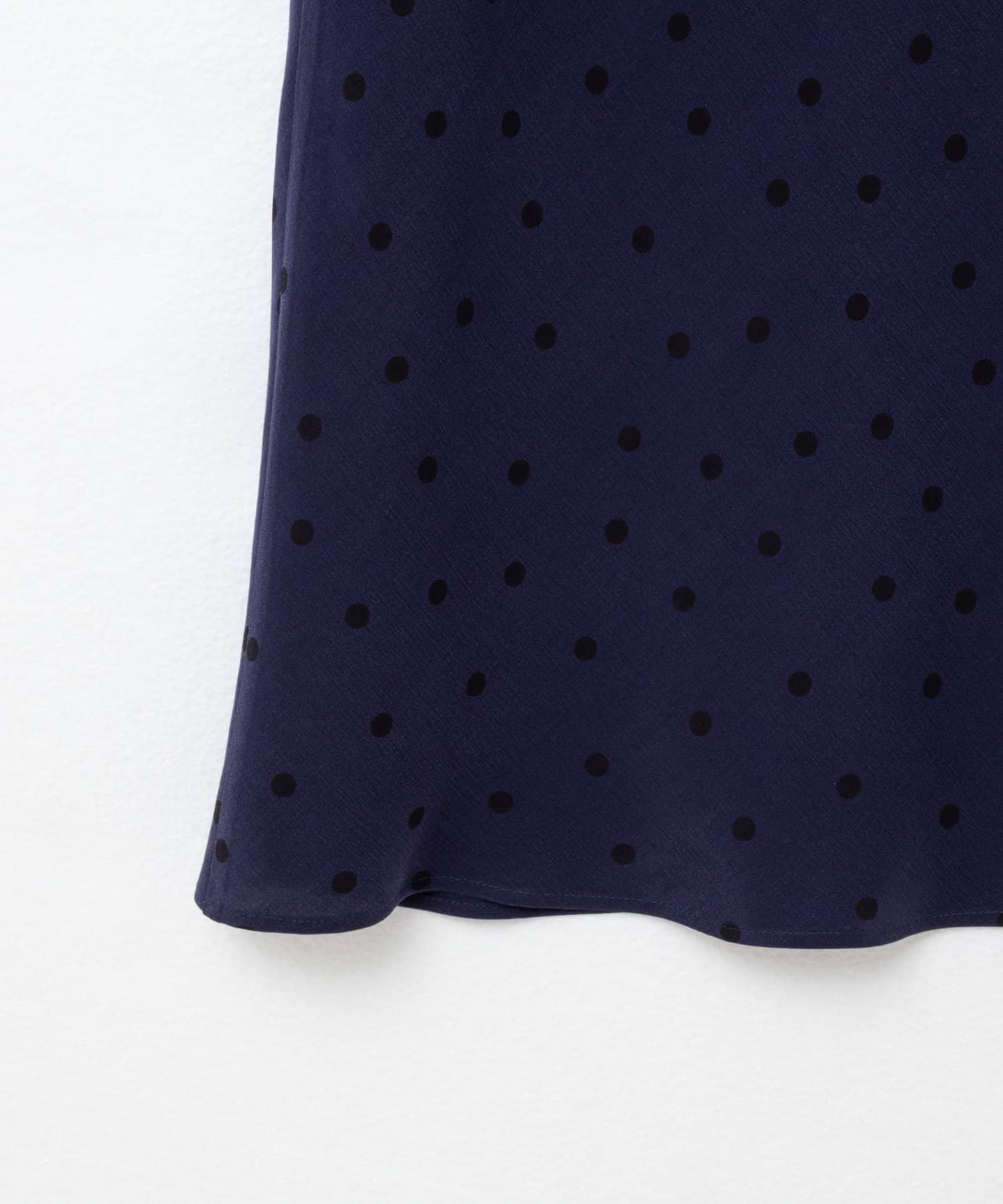 ・微光沢のある上品な生地にドットプリントが施されたナロースカート