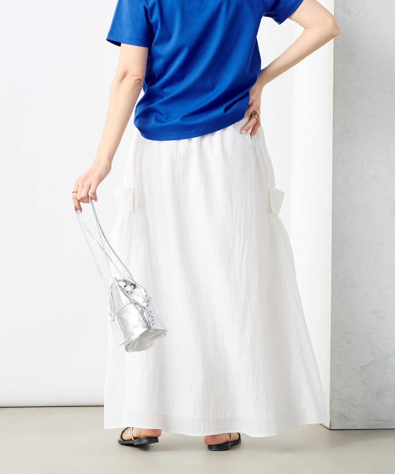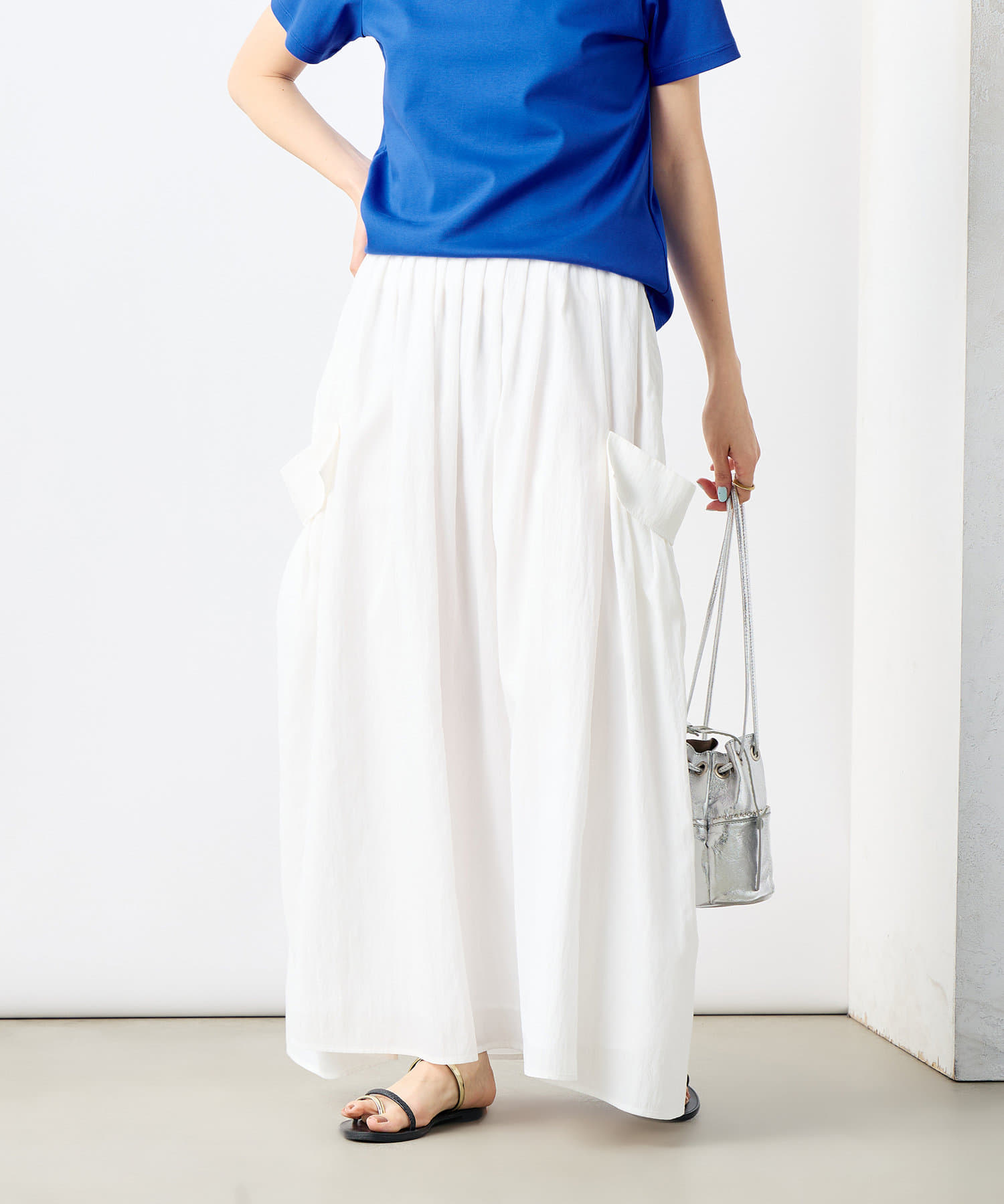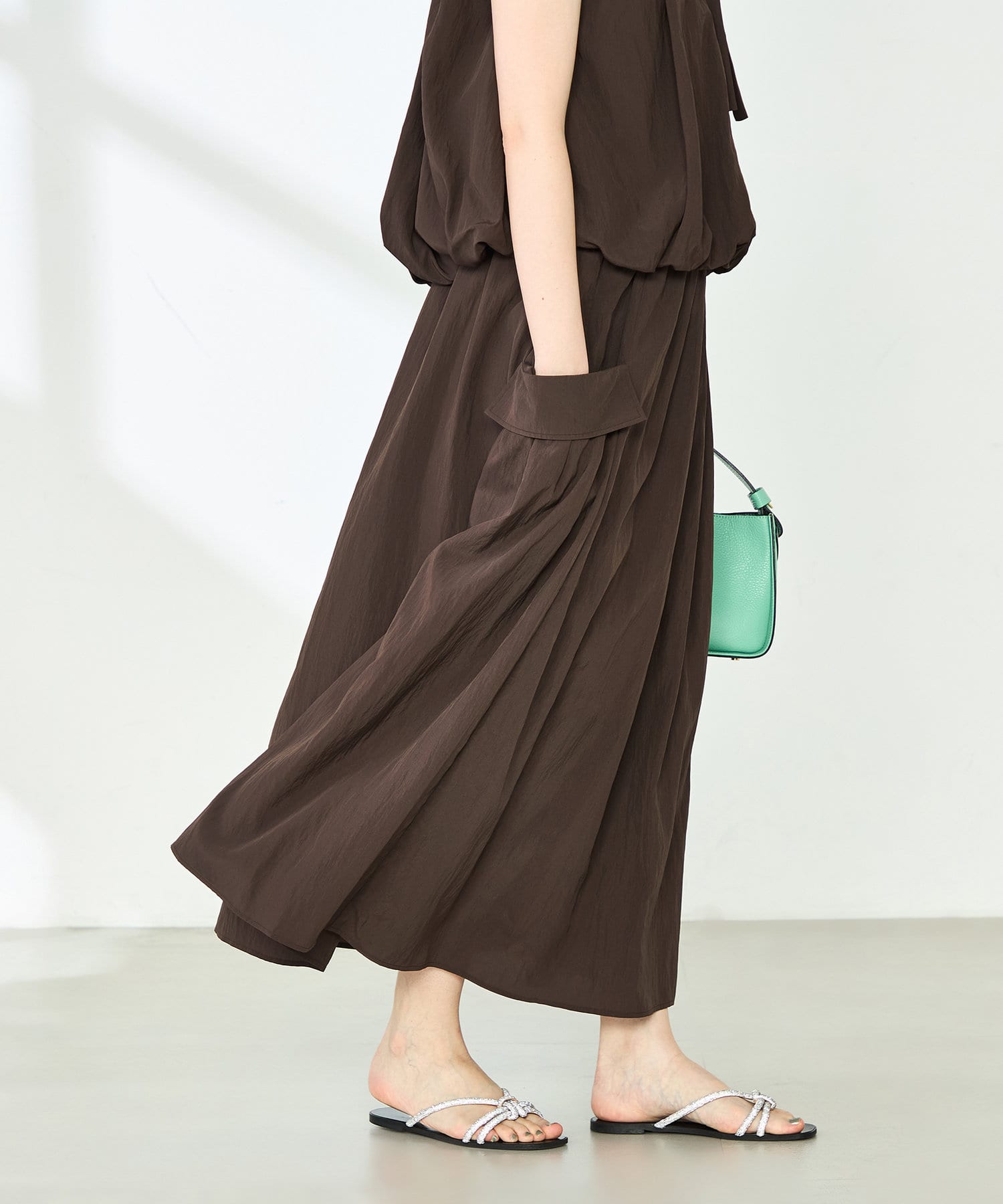 《セットアップ対応》リンクルタイプライターポケ付きスカート