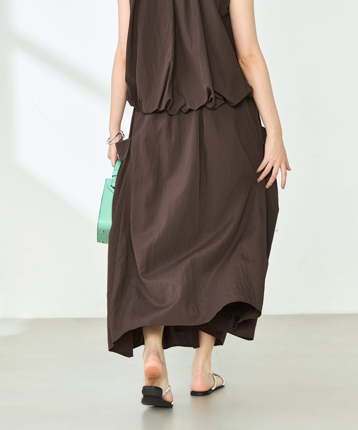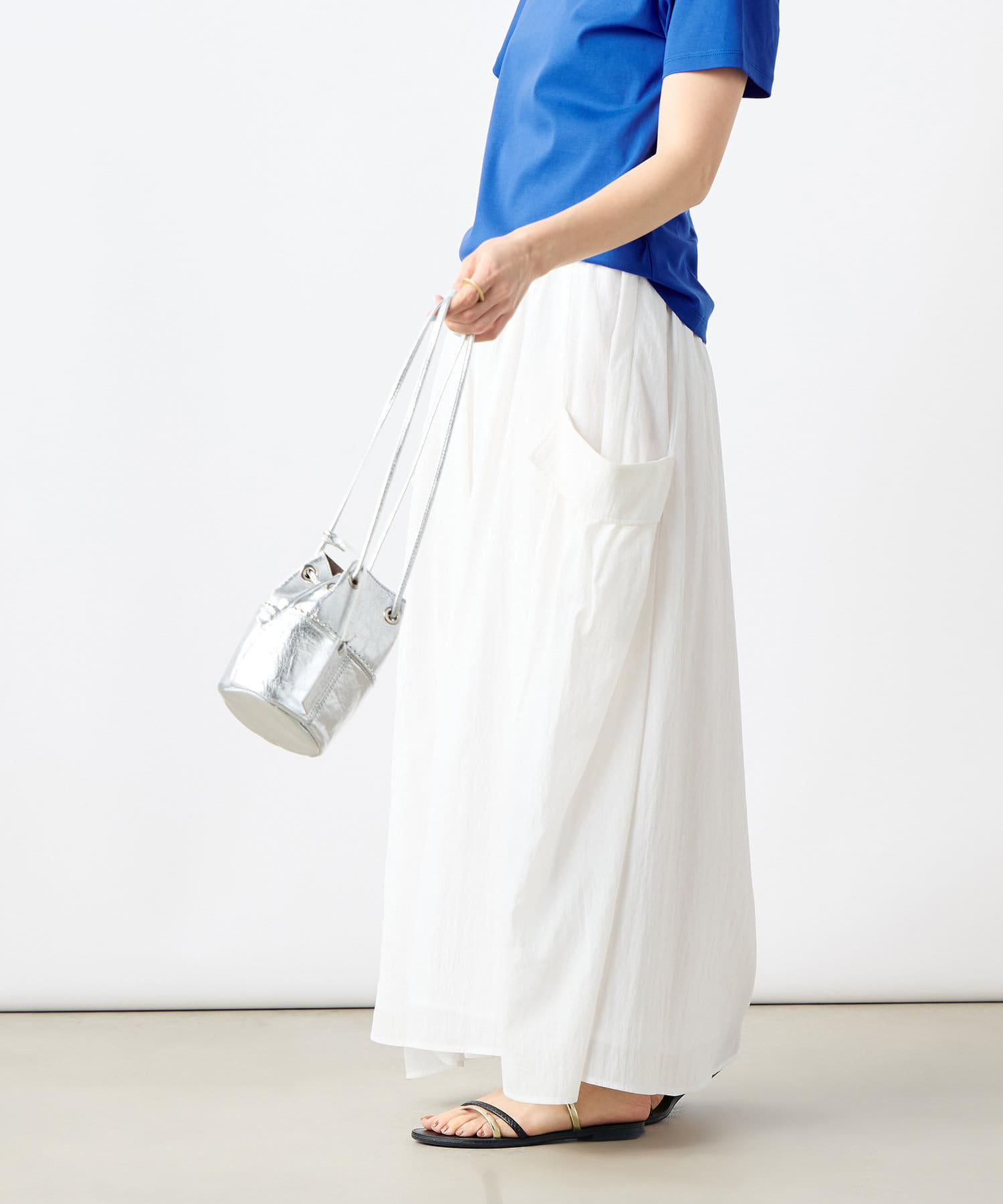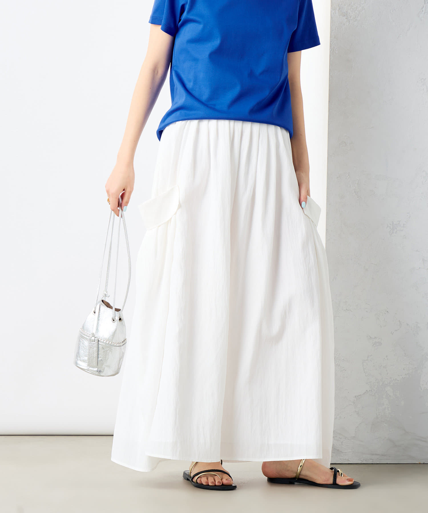 《セットアップ対応》リンクルタイプライターポケ付きスカート