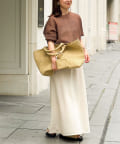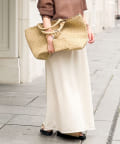 ・綿や麻を織り交ぜた天然素材のような表面感が特徴のスカート