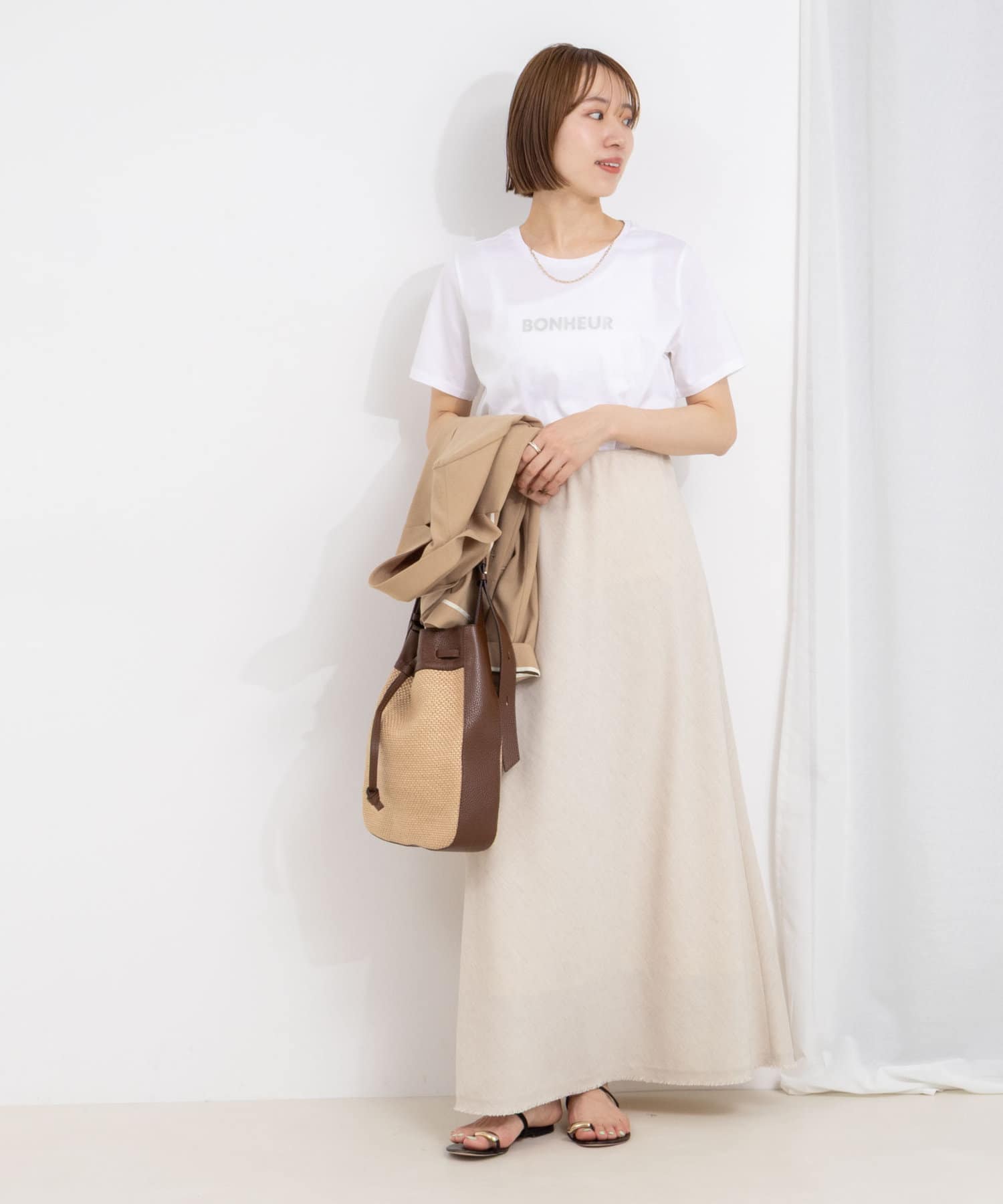 ・綿や麻を織り交ぜた天然素材のような表面感が特徴のスカート