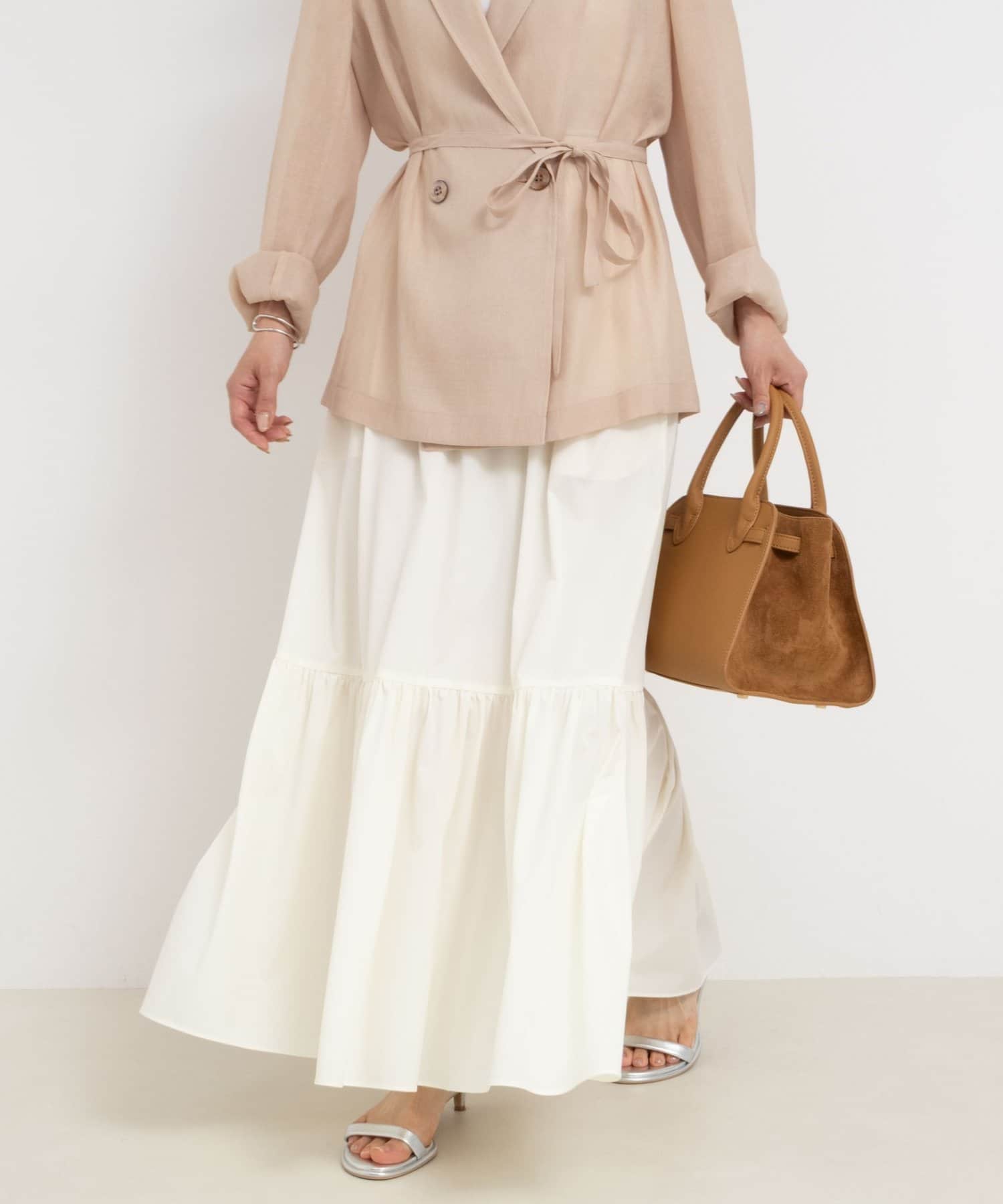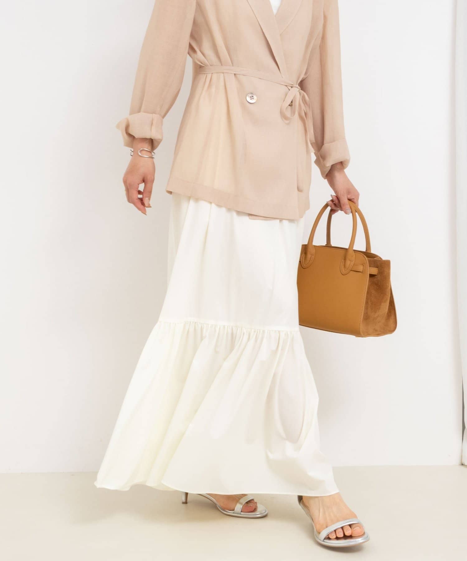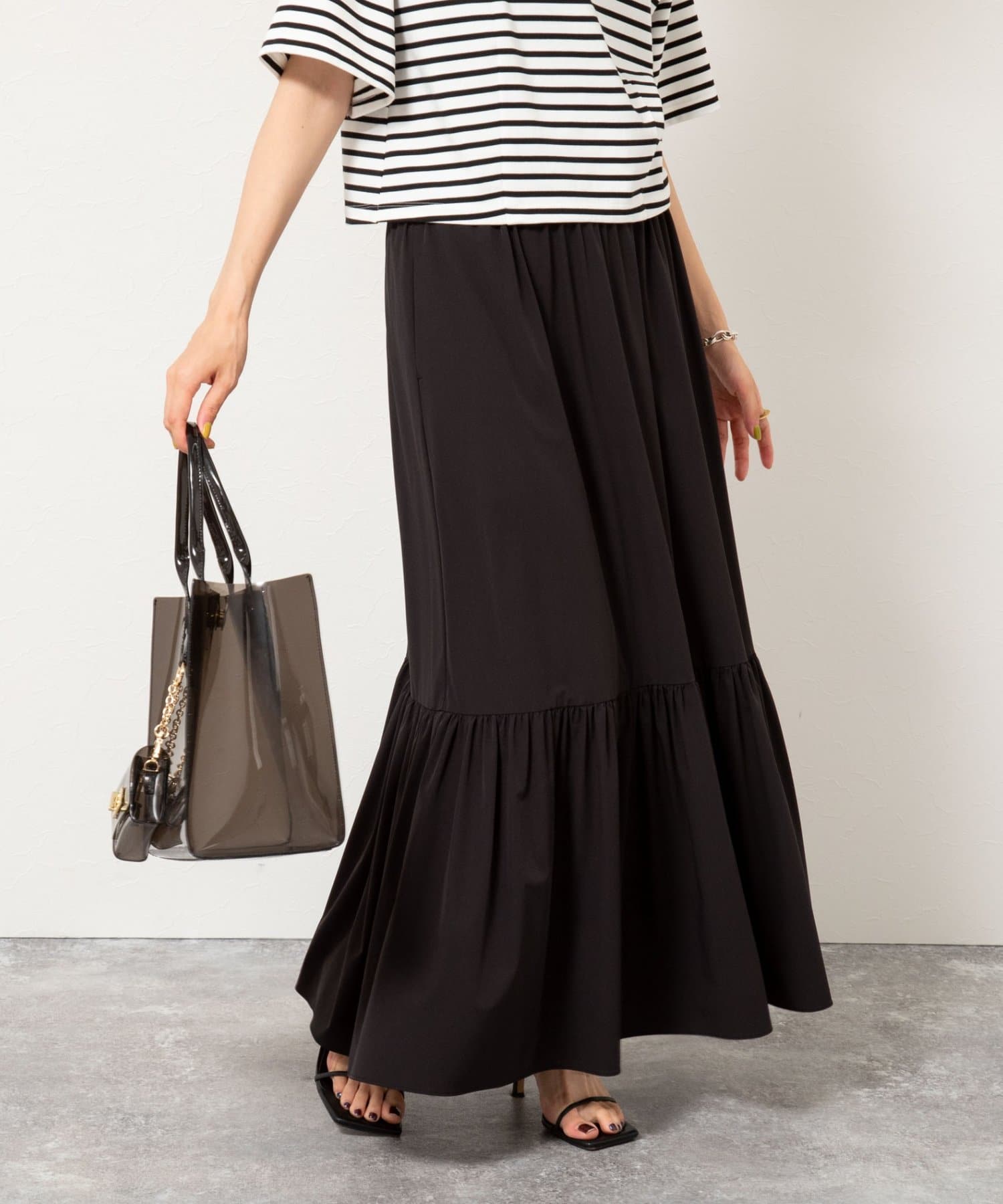 ・撥水ストレッチと接触冷感の機能性素材のストレッチタフタを使用したスカート