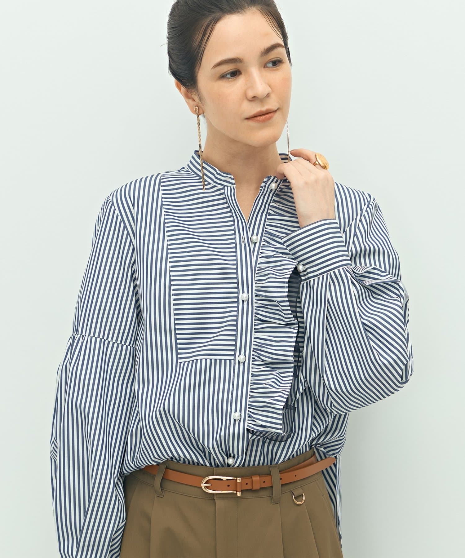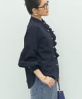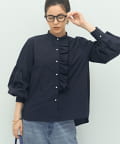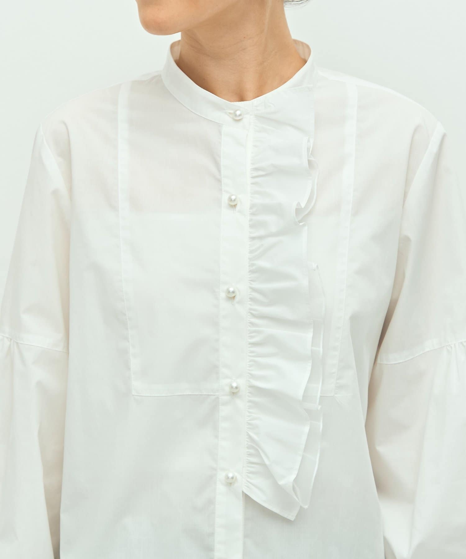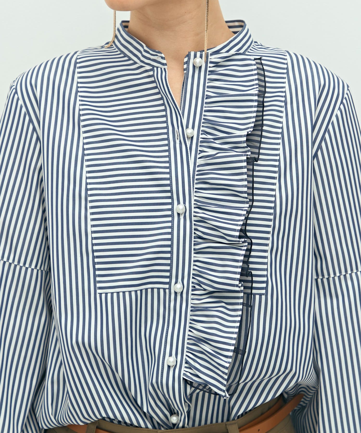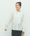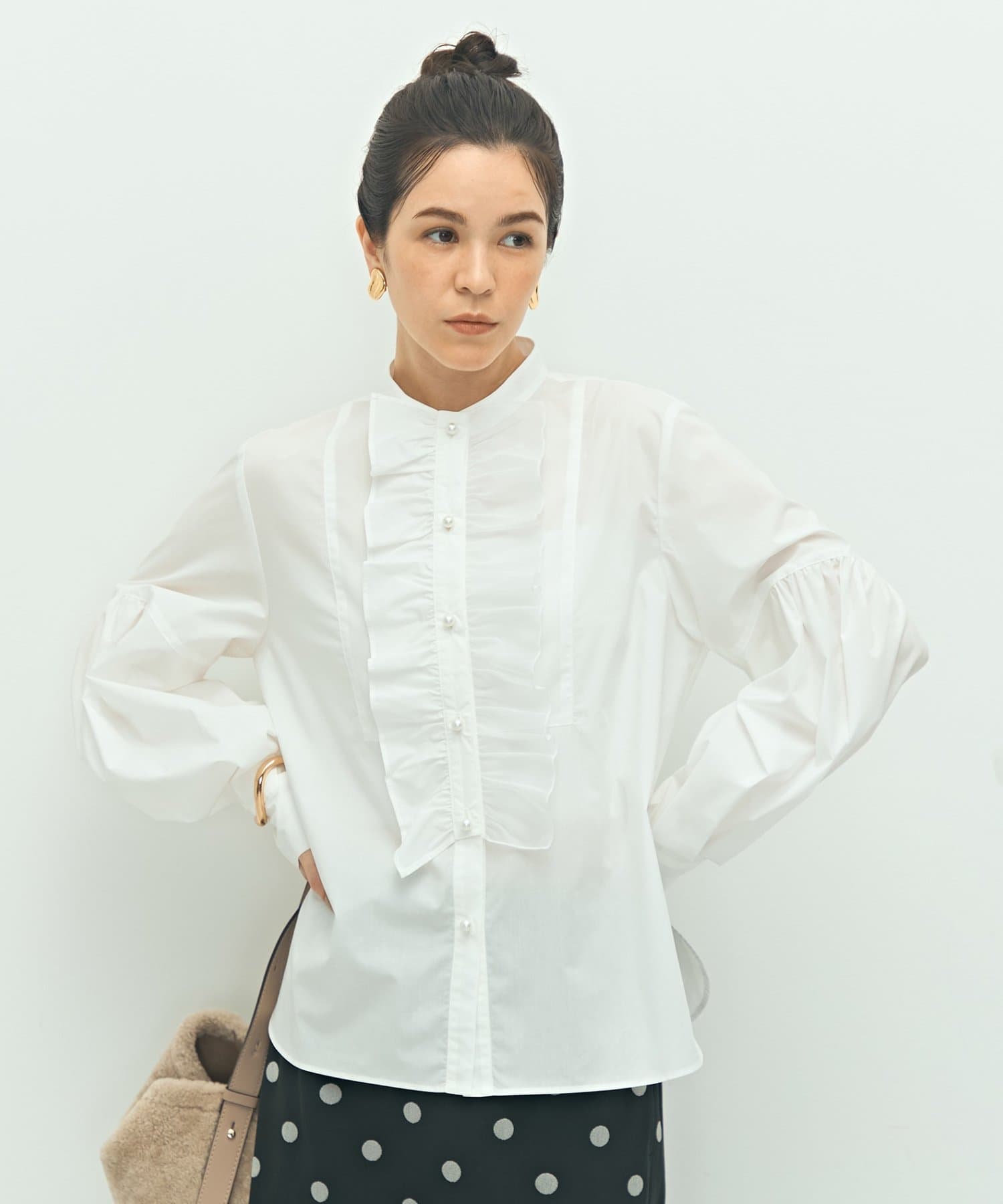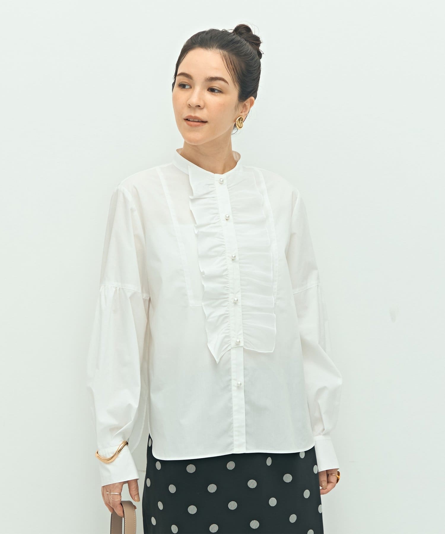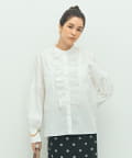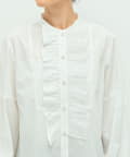 ・ビブヨークシャツに華やかな前立てのフリルを施した着映えブラウス