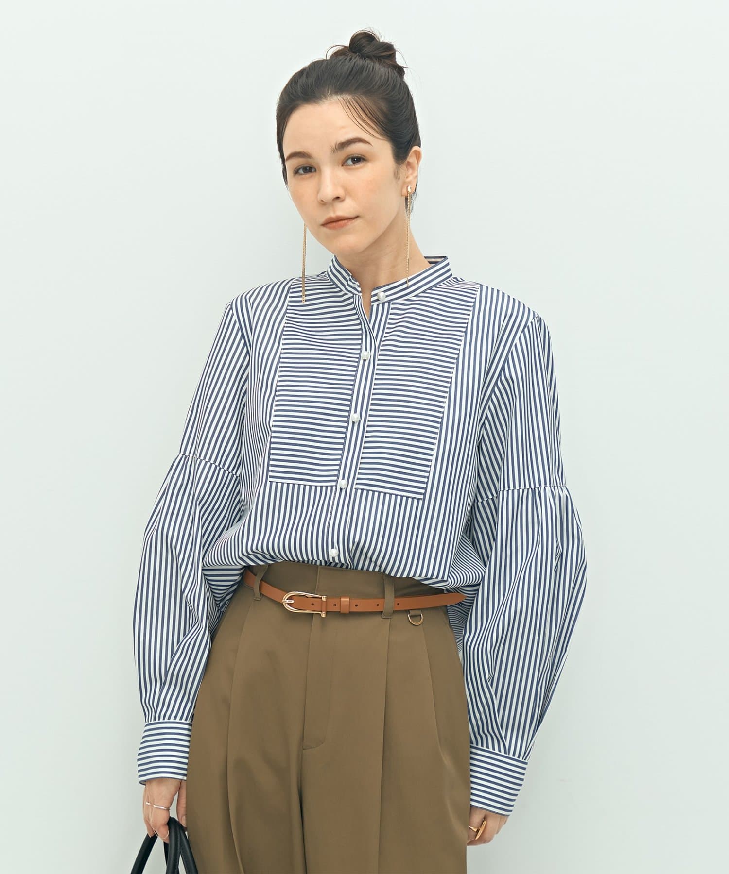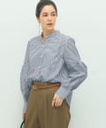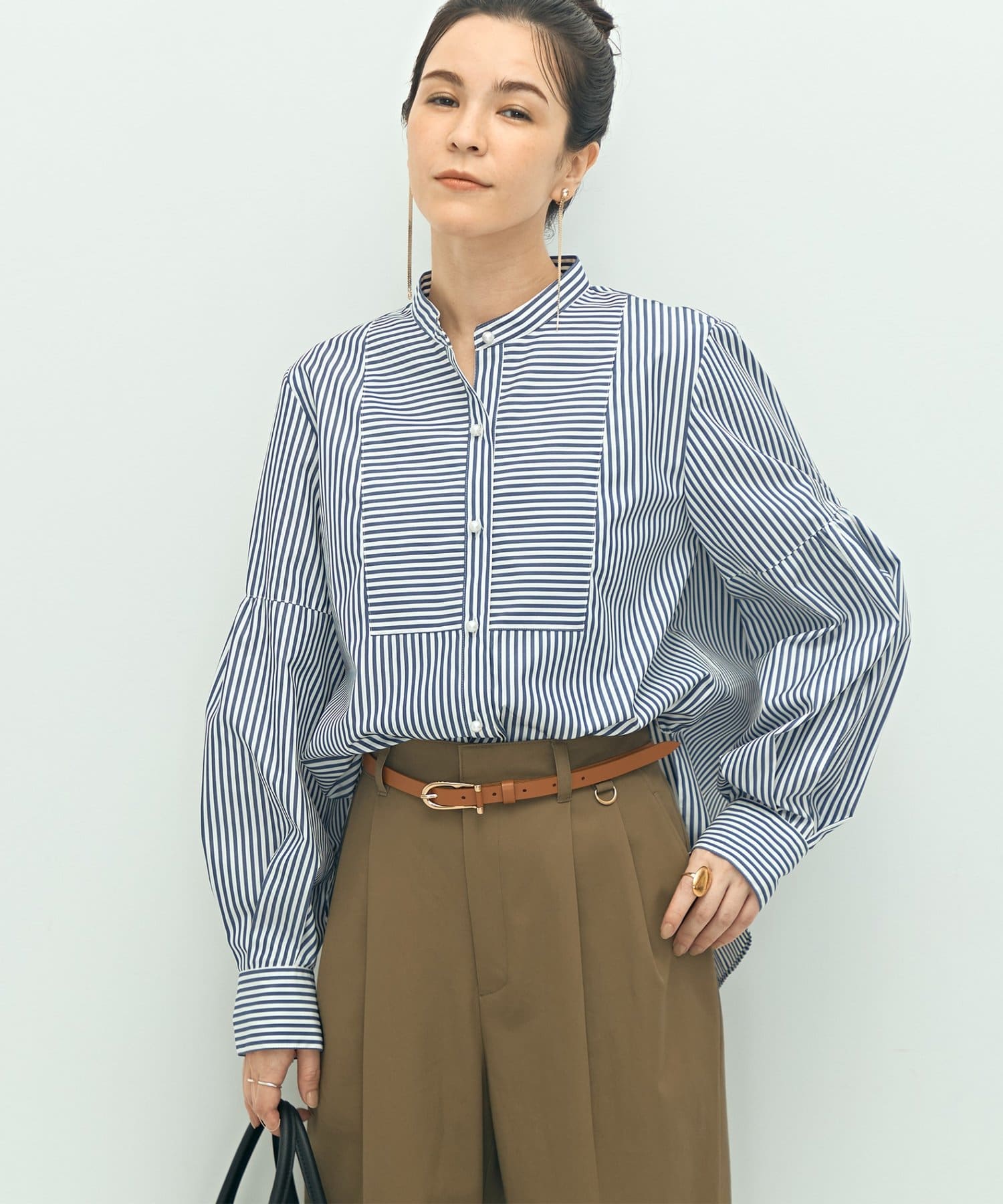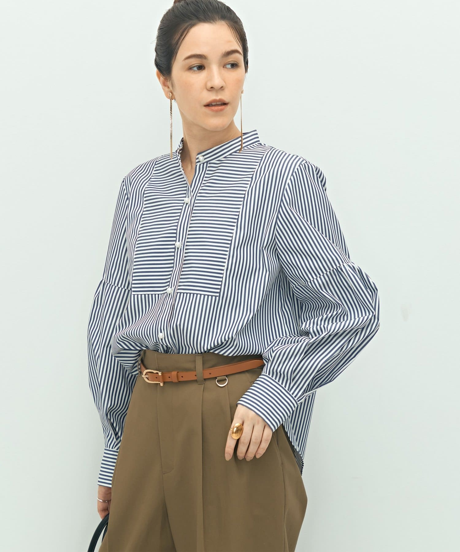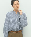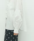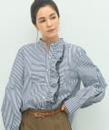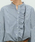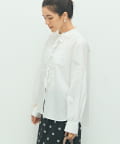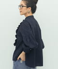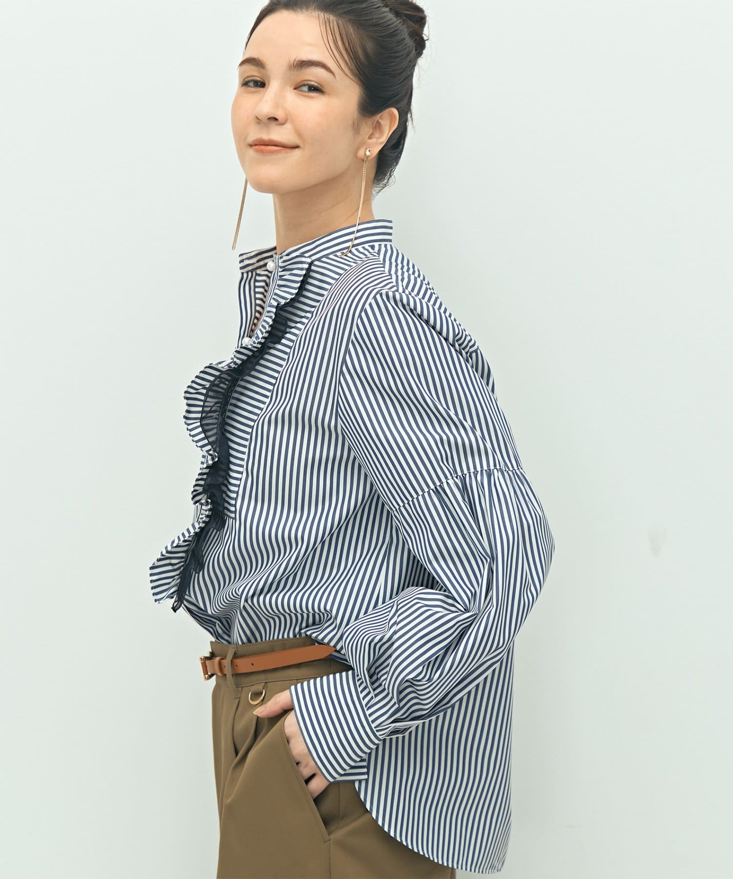 ・ビブヨークシャツに華やかな前立てのフリルを施した着映えブラウス