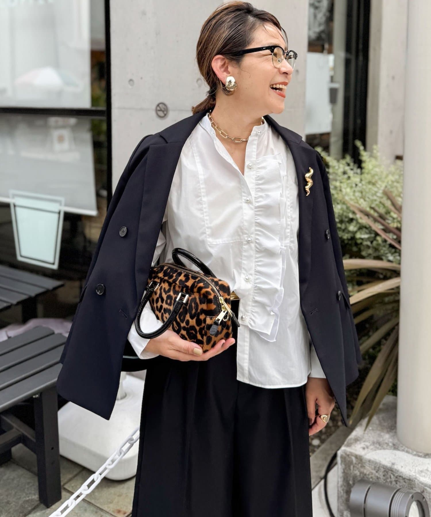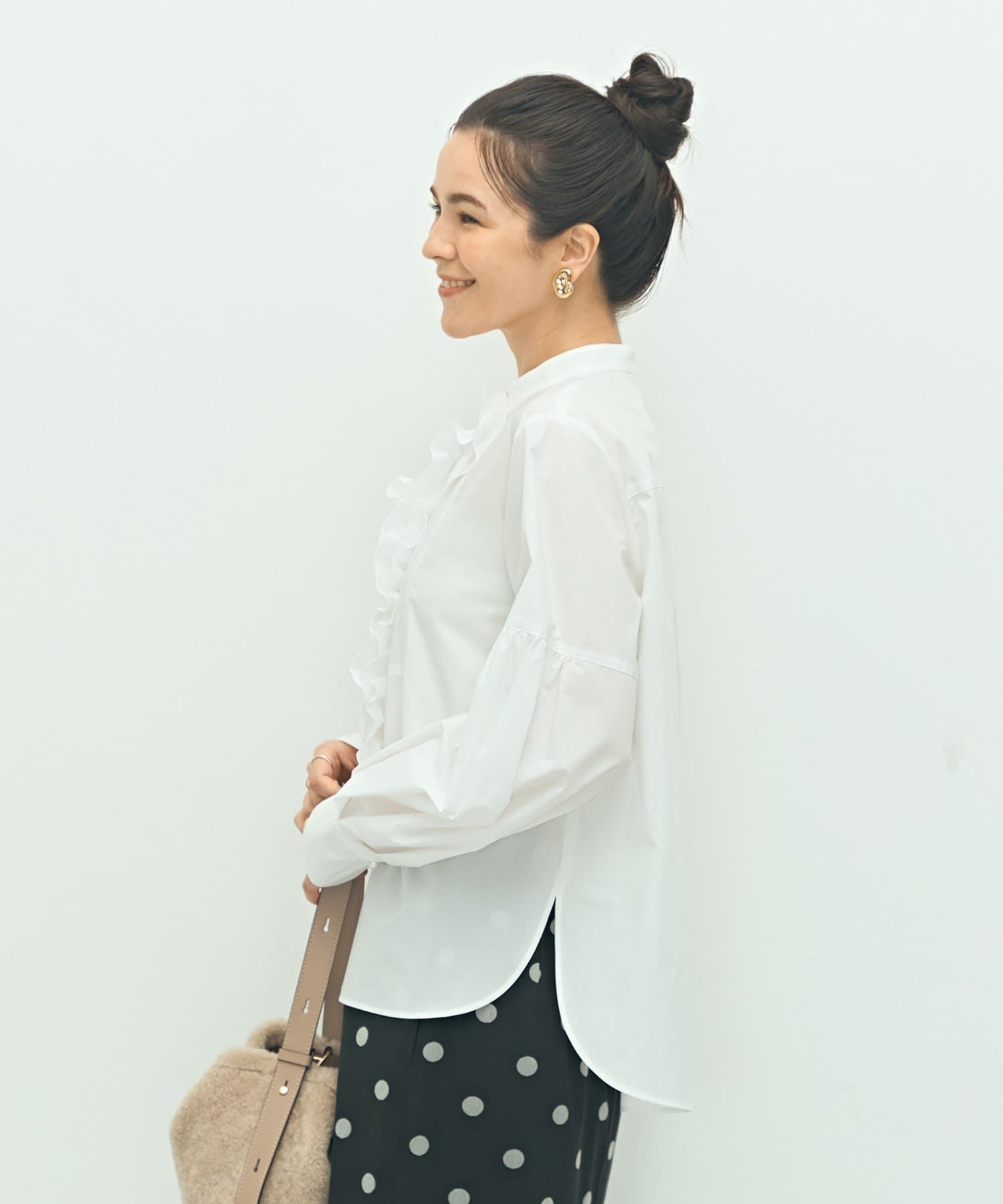 ・フリルは取り外し可能で、シンプルなパール釦ブラウスとしても着用可能