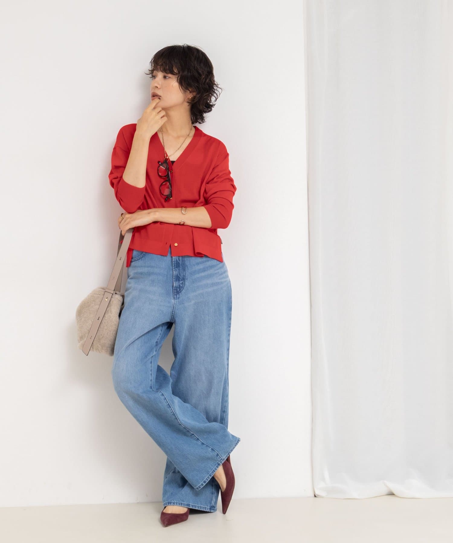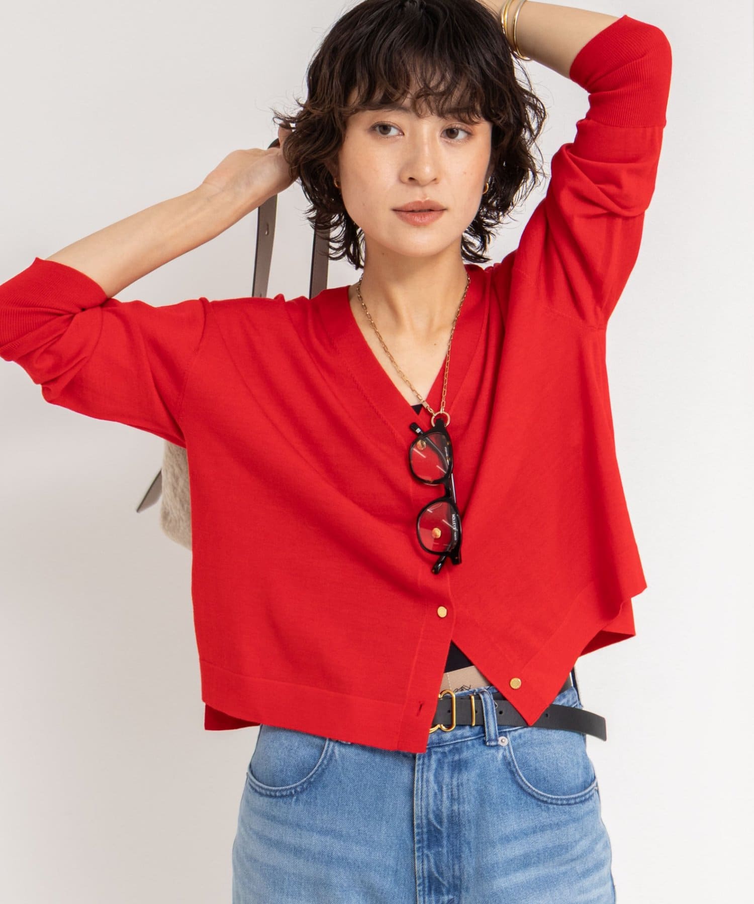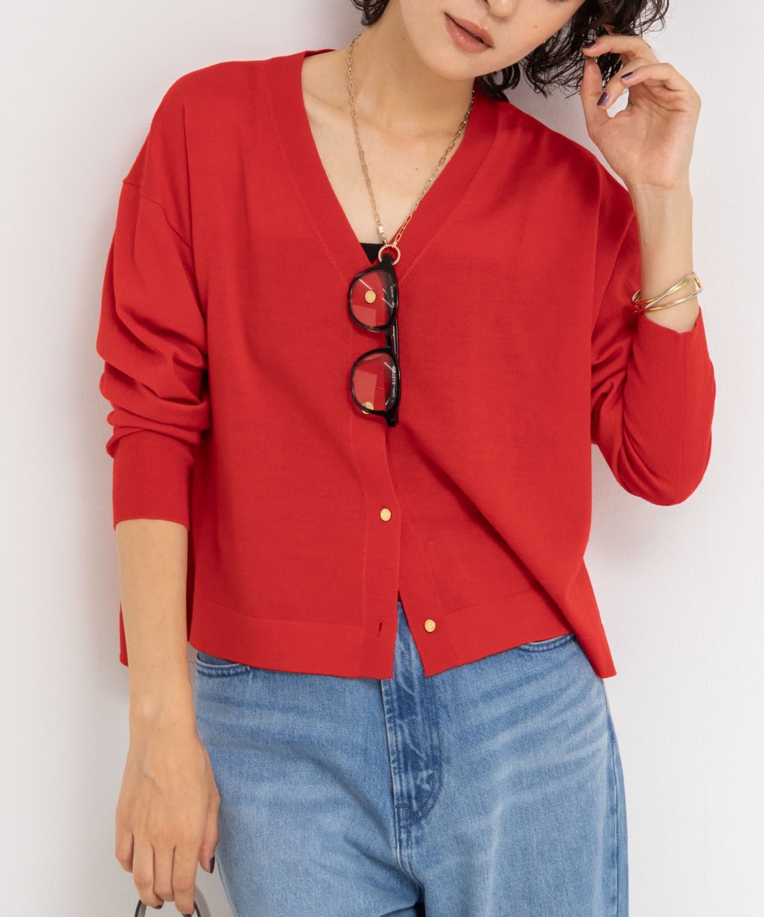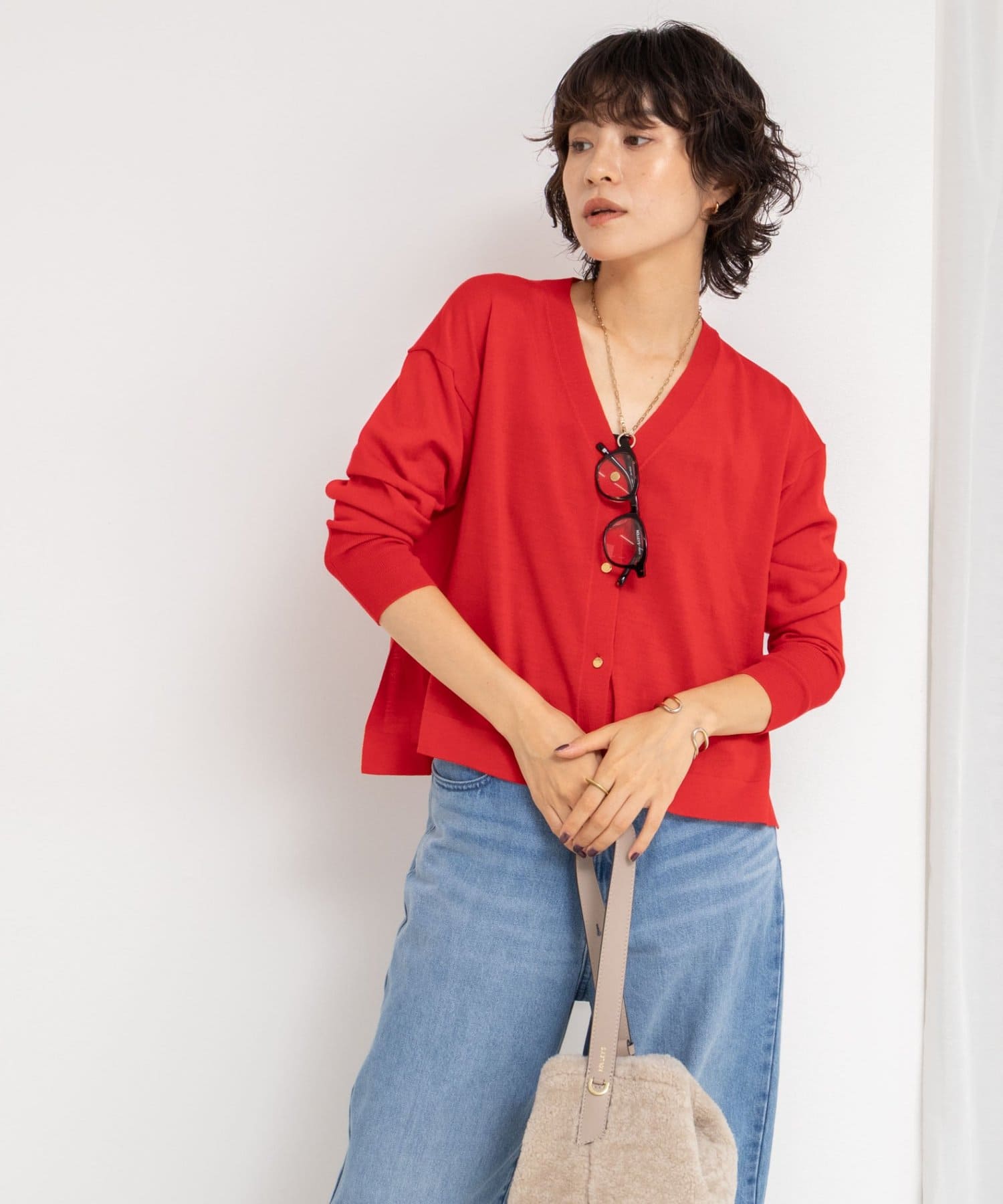 TOP > NOLLEY'S > レディース > トップス > カーディガン/ボレロ > 《手洗い可能》《アンサンブル対応》18G天竺ゆったりVネックカーディガン