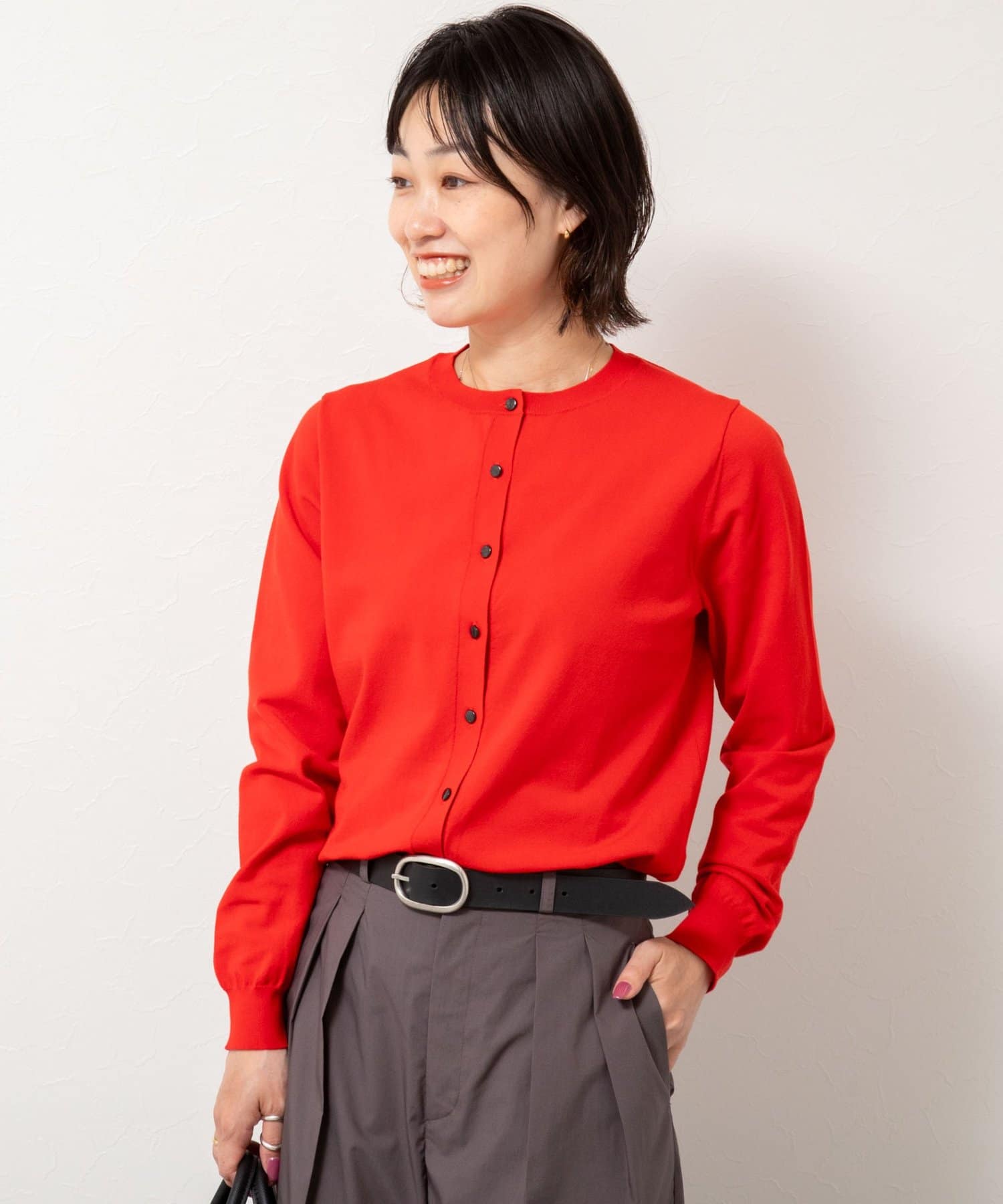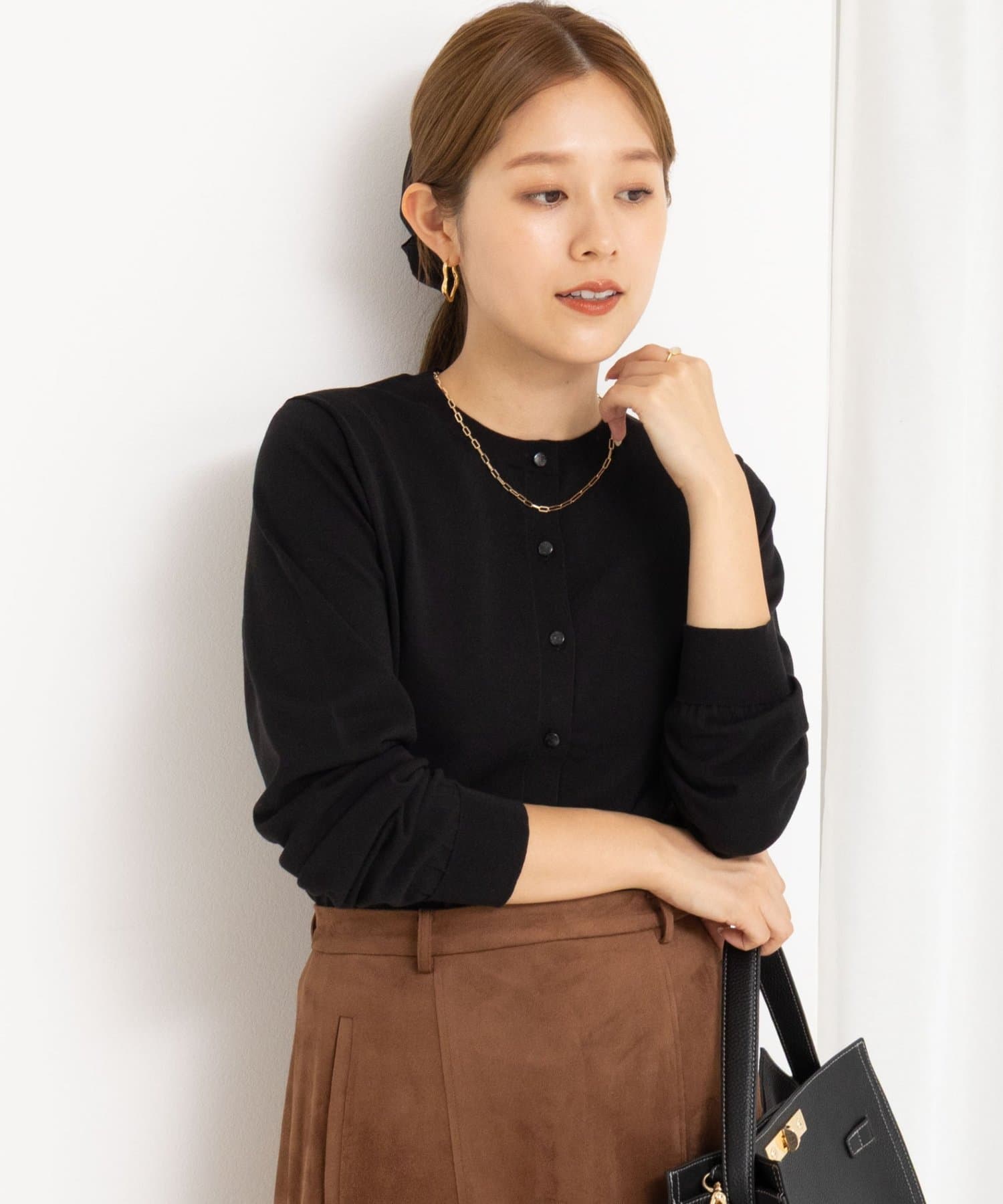 TOP > NOLLEY'S > レディース > トップス > カーディガン/ボレロ > 《手洗い可能》《アンサンブル対応》天竺クルーネックカーディガン
