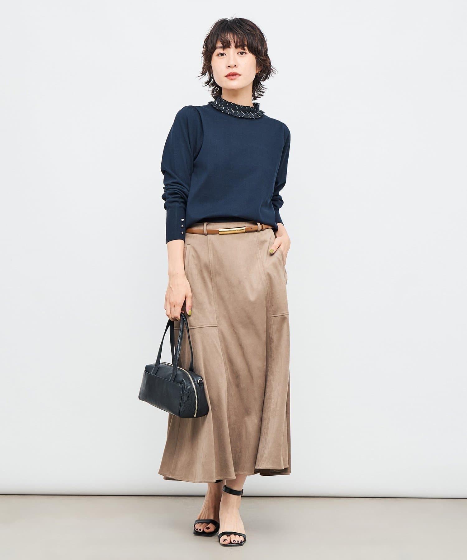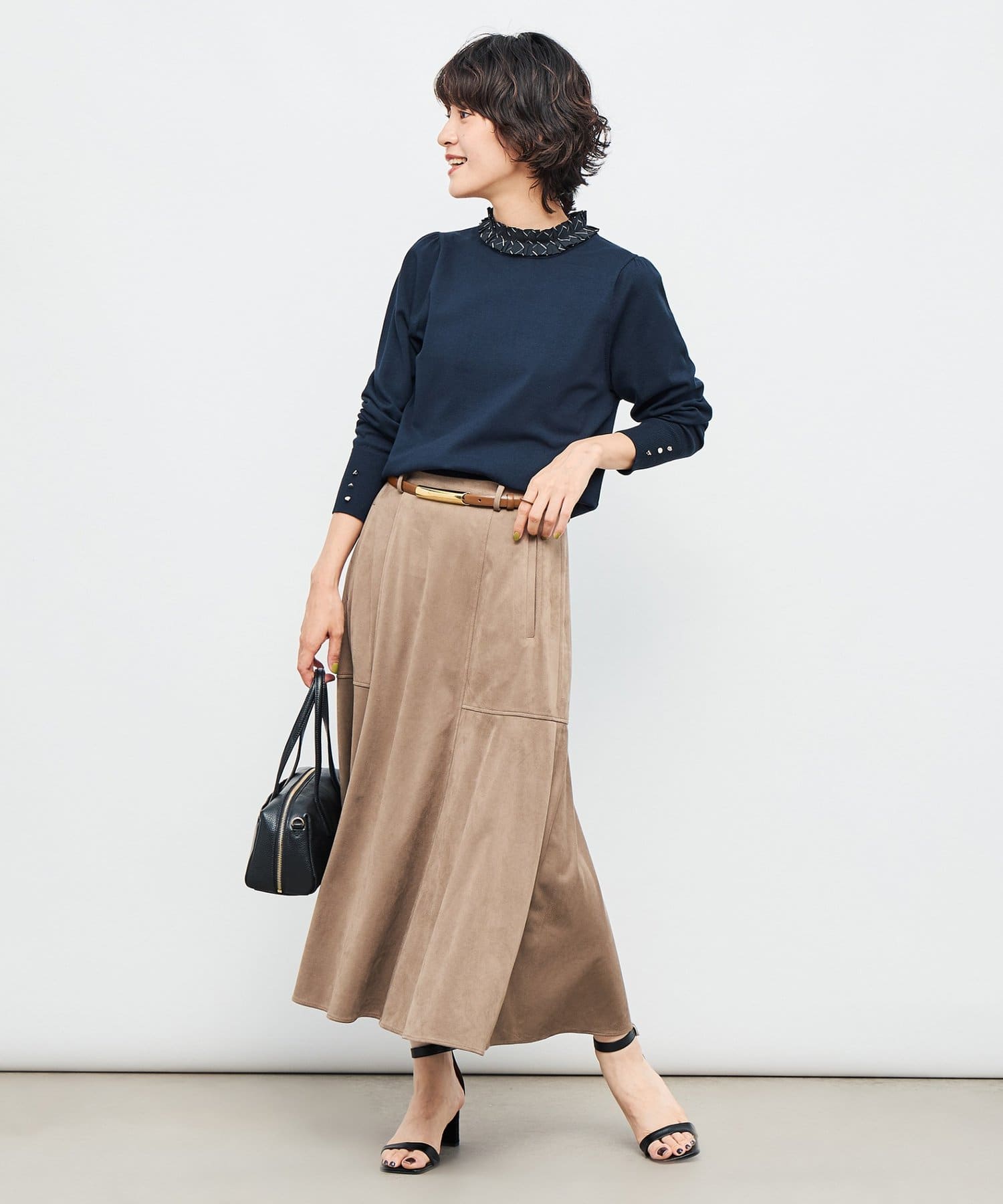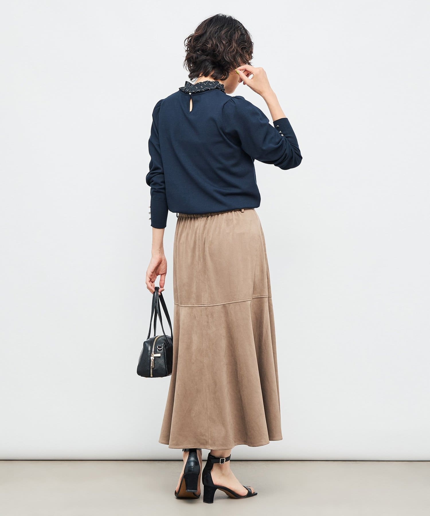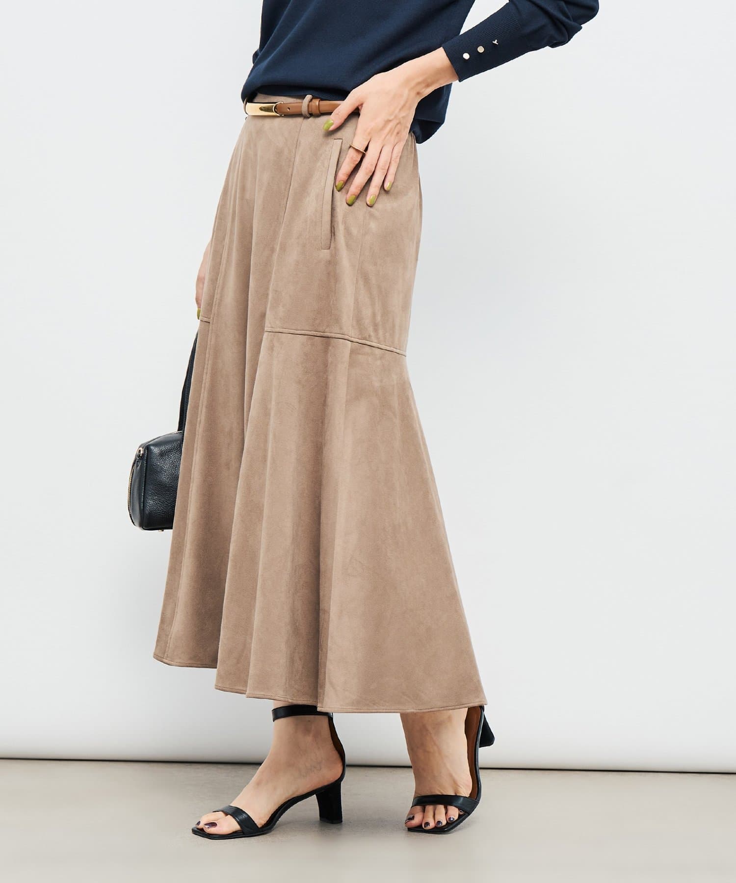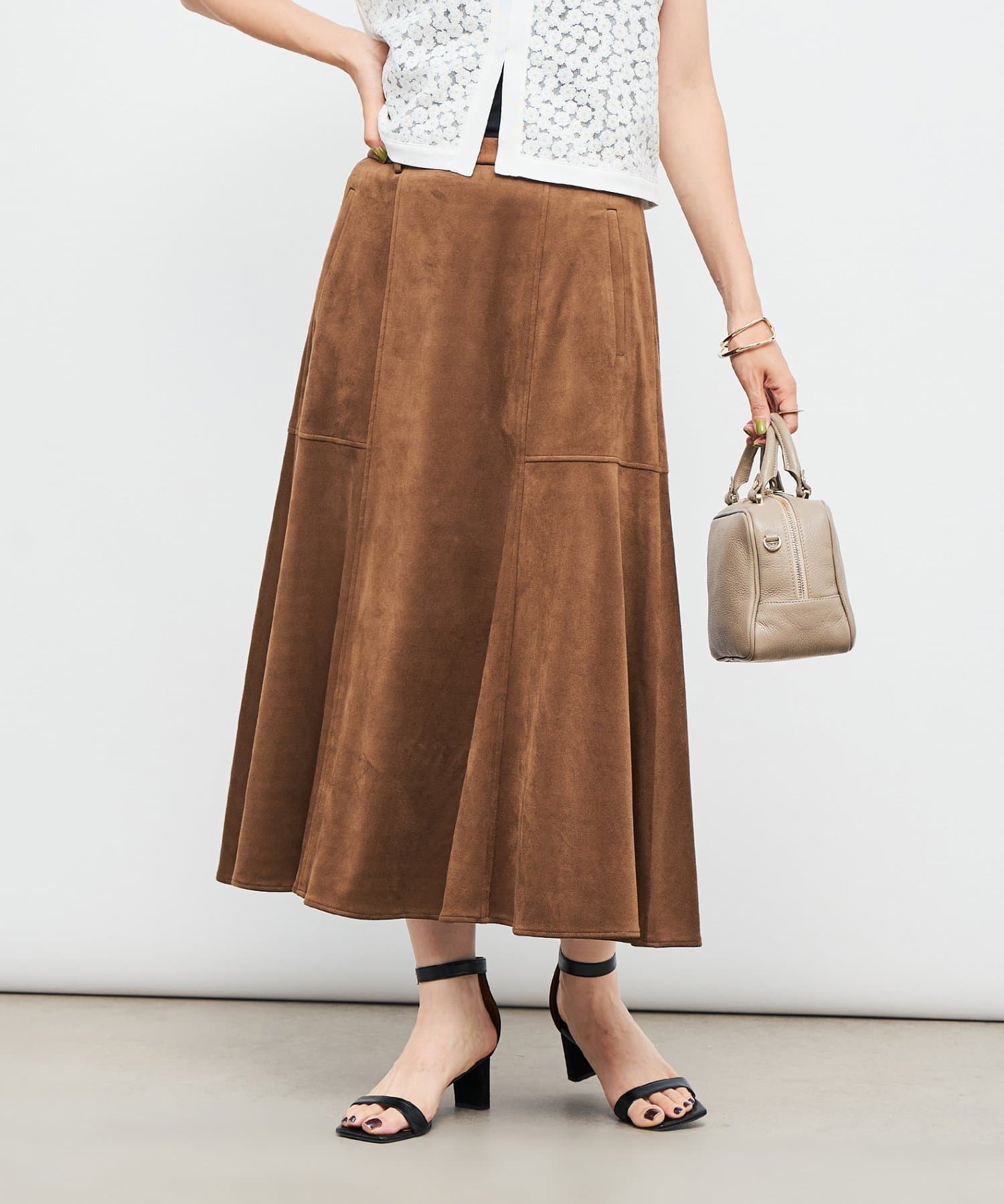 《セットアップ対応》ウォッシャブルストレッチスエードフレアスカート