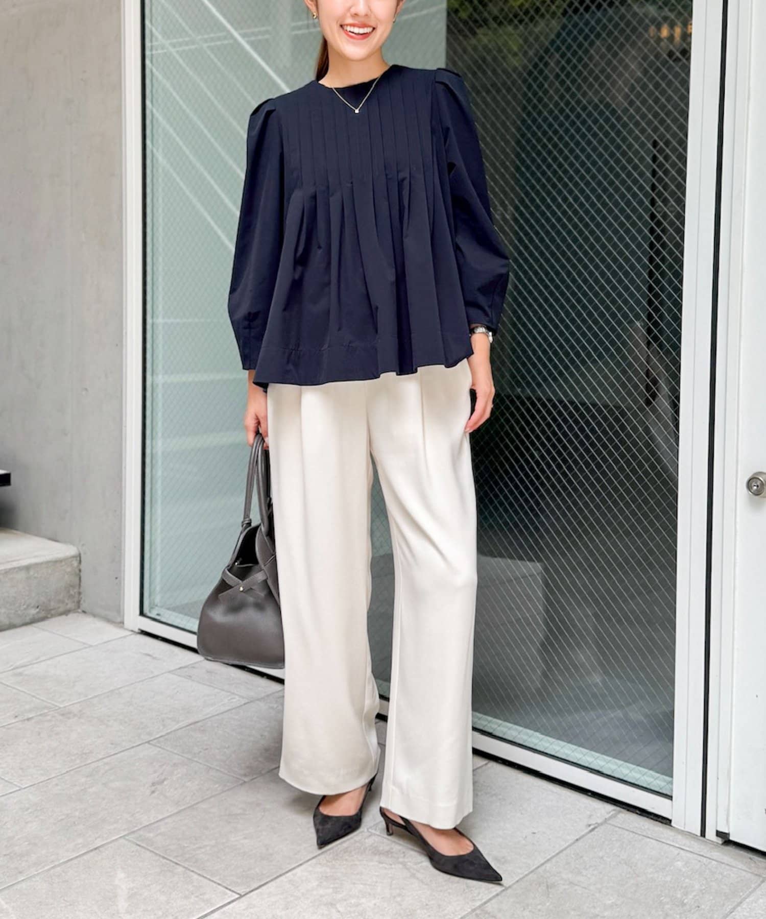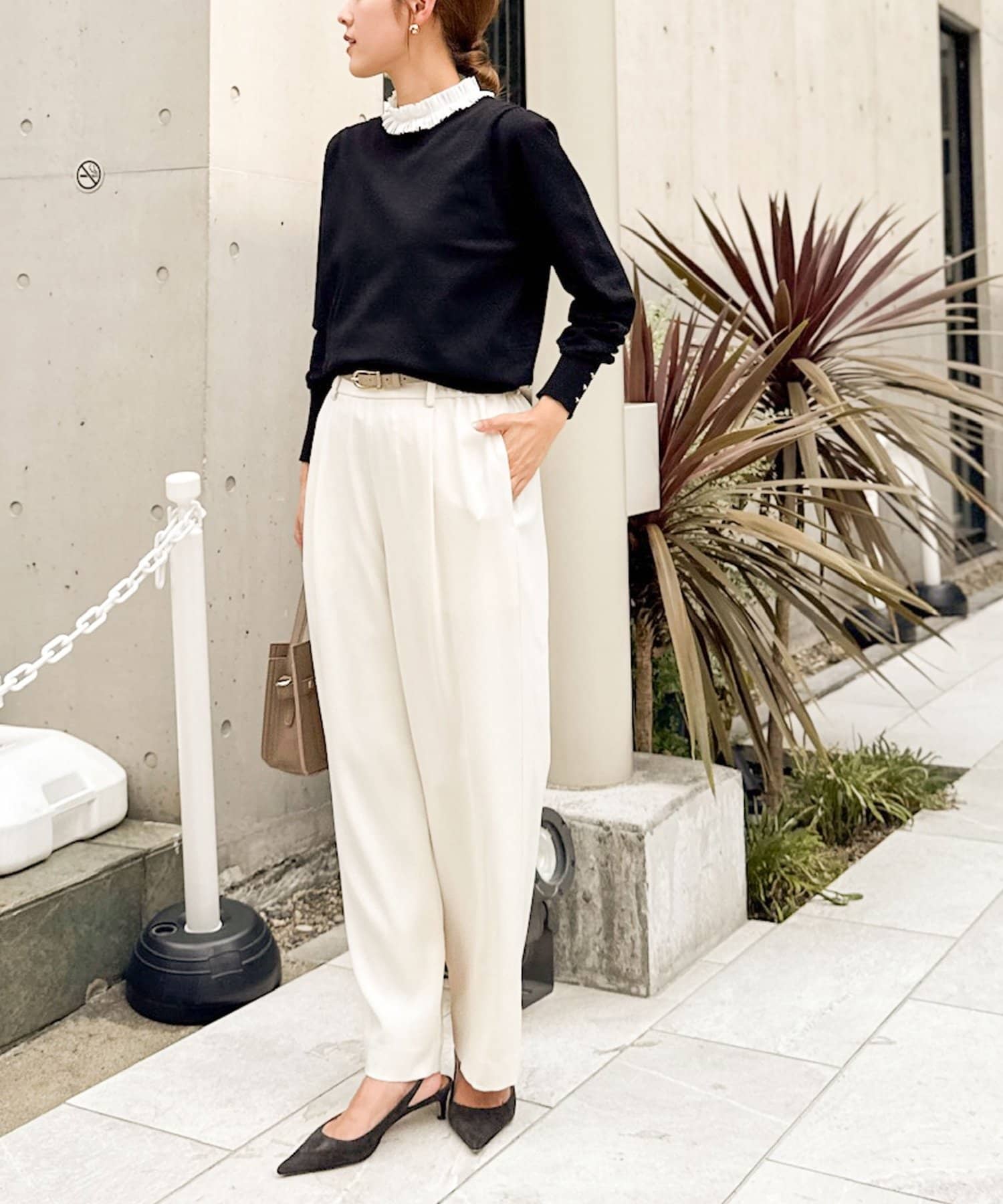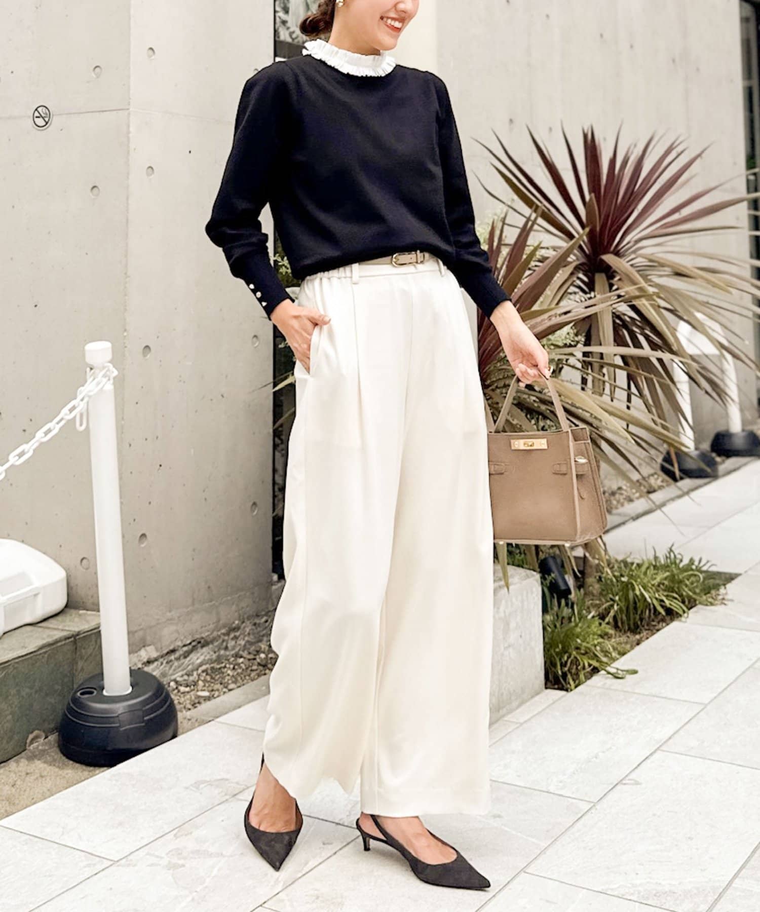 ・程よい肉感、膨らみがある上品なとろみイージーパンツ
