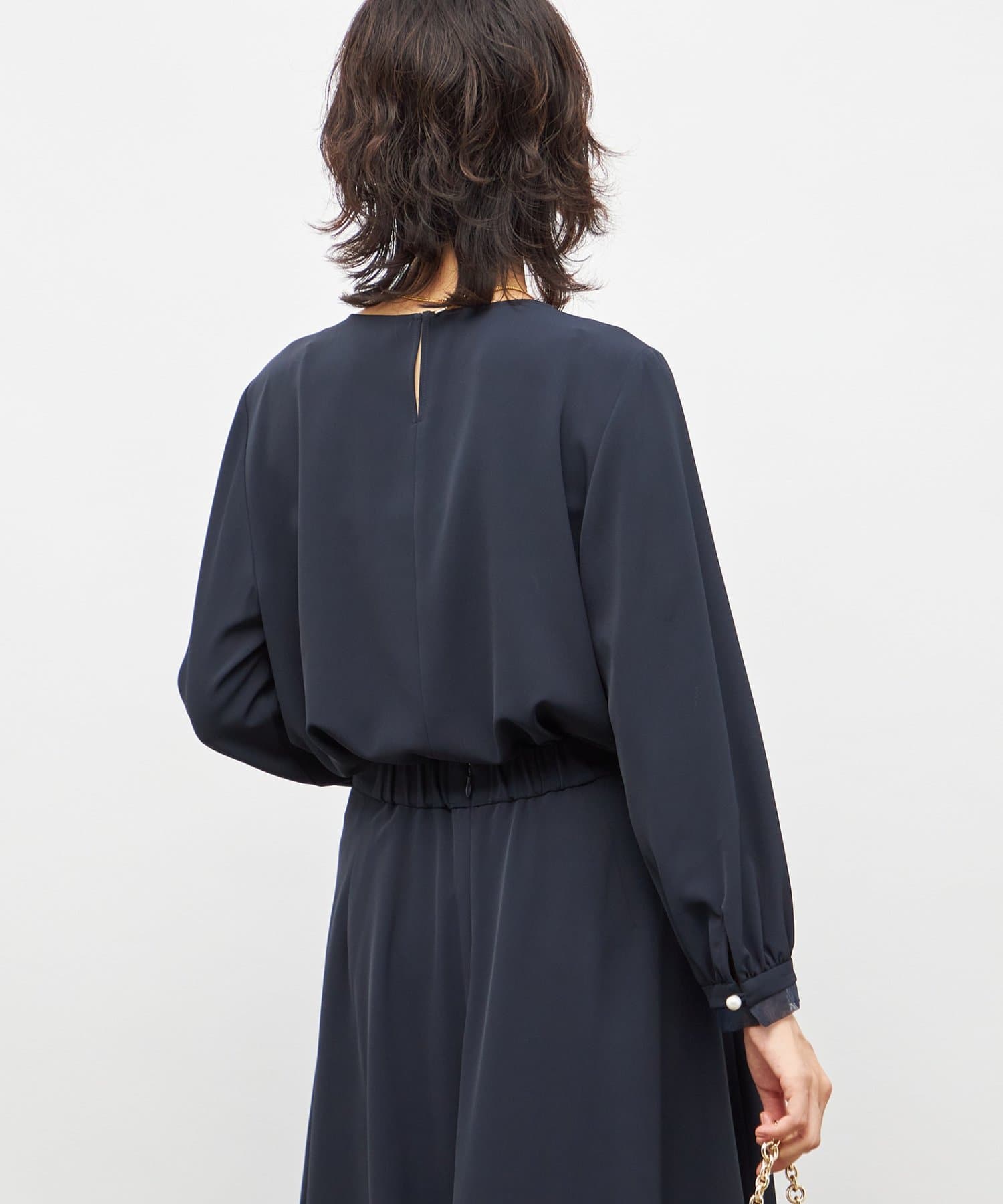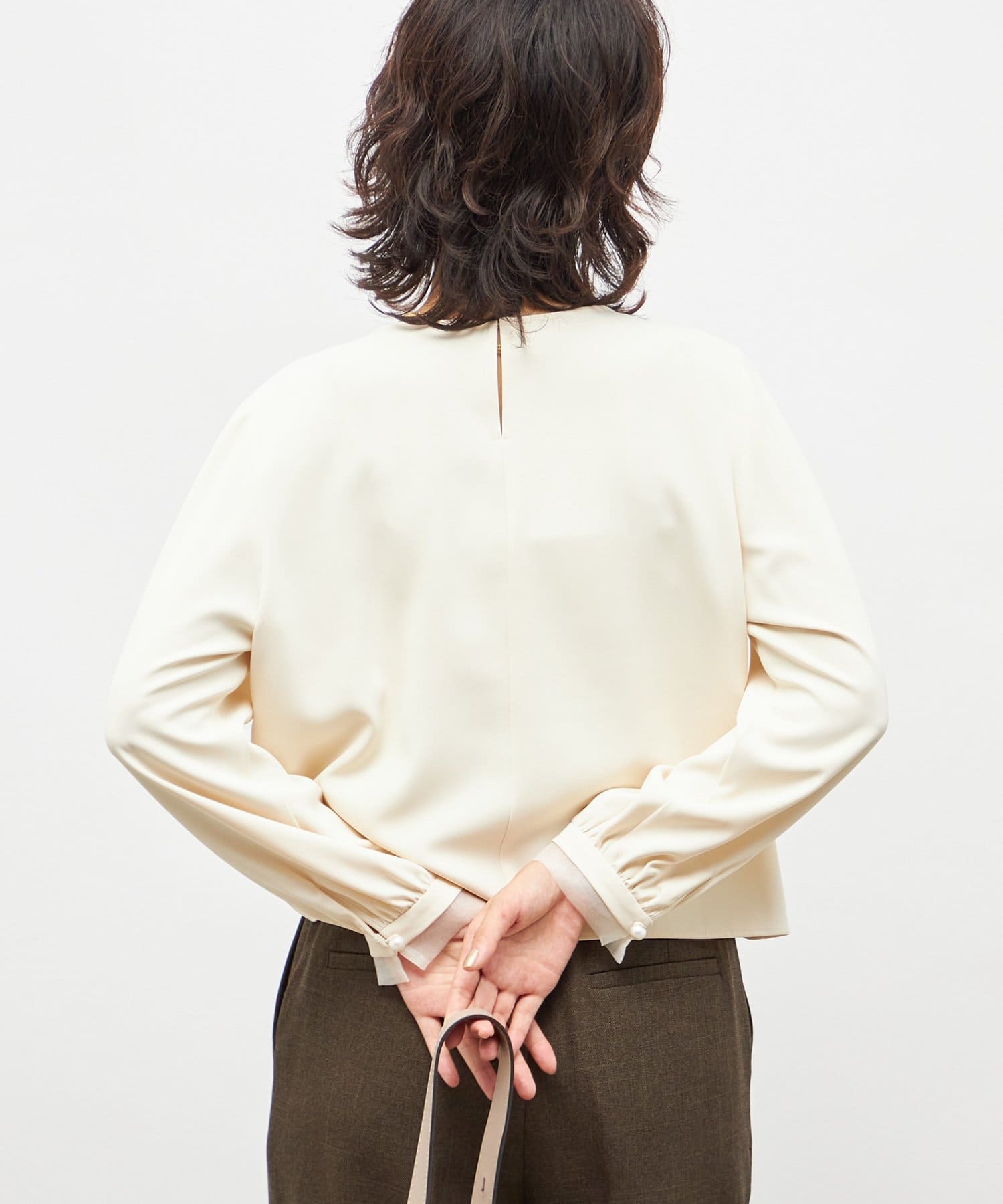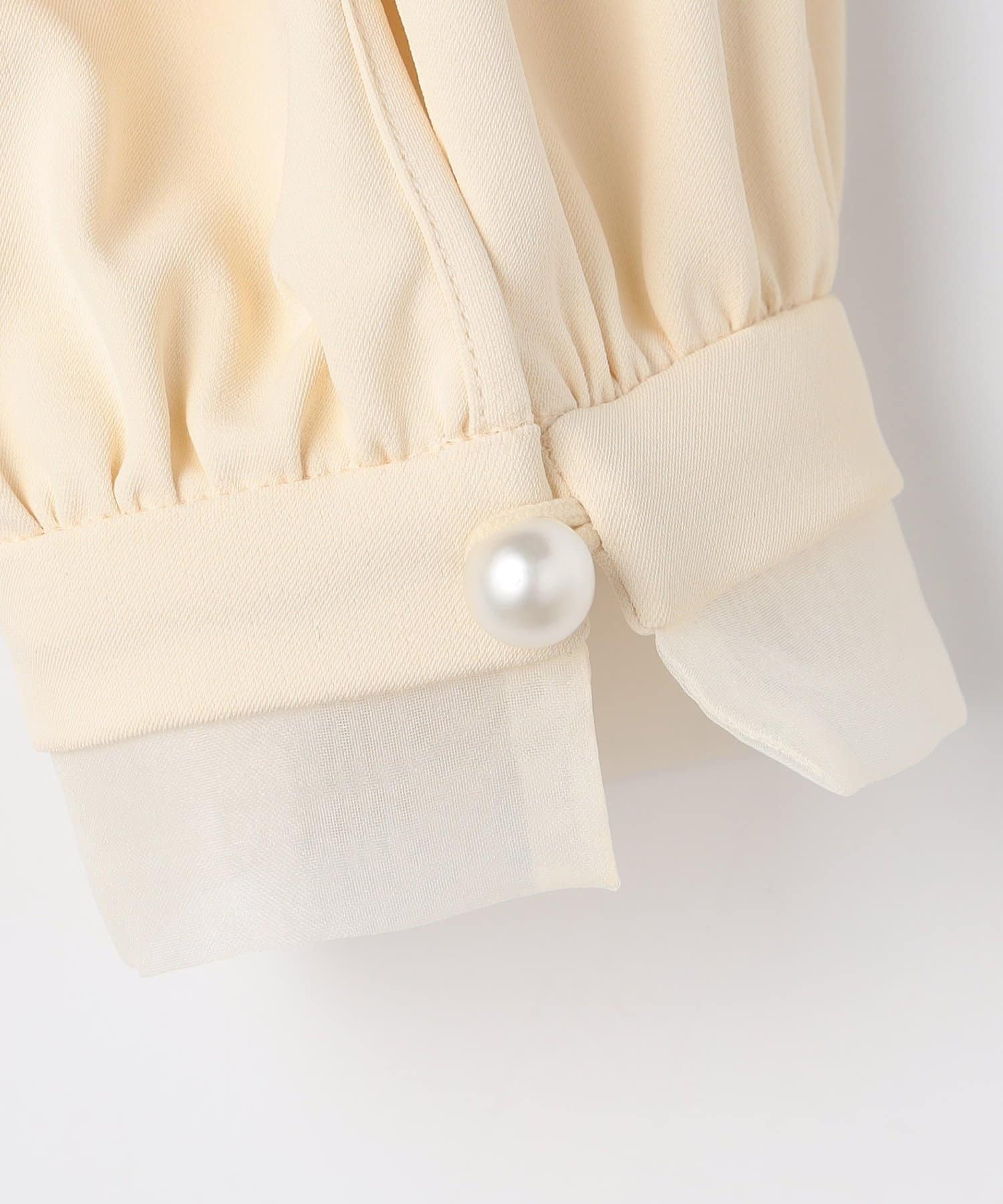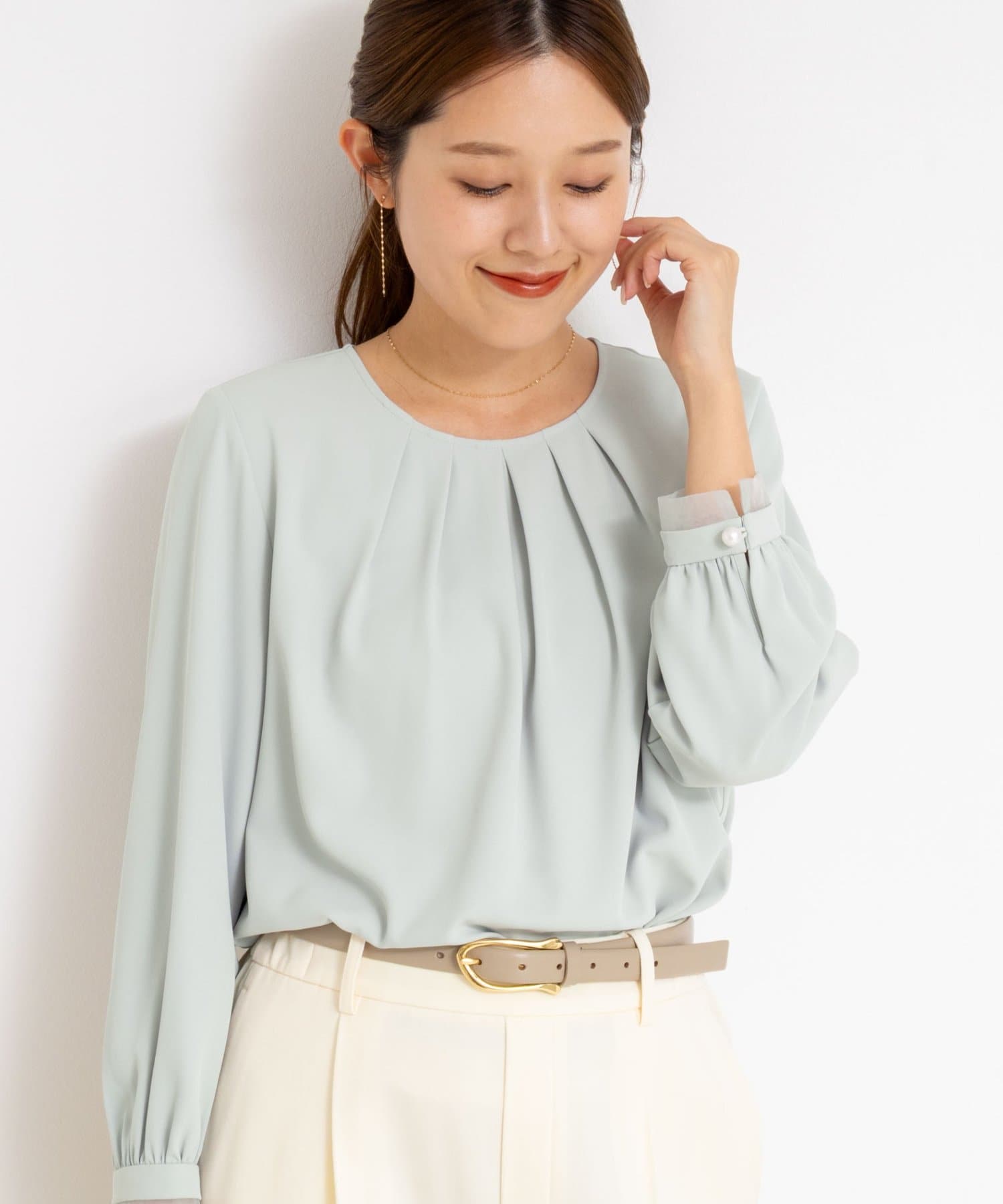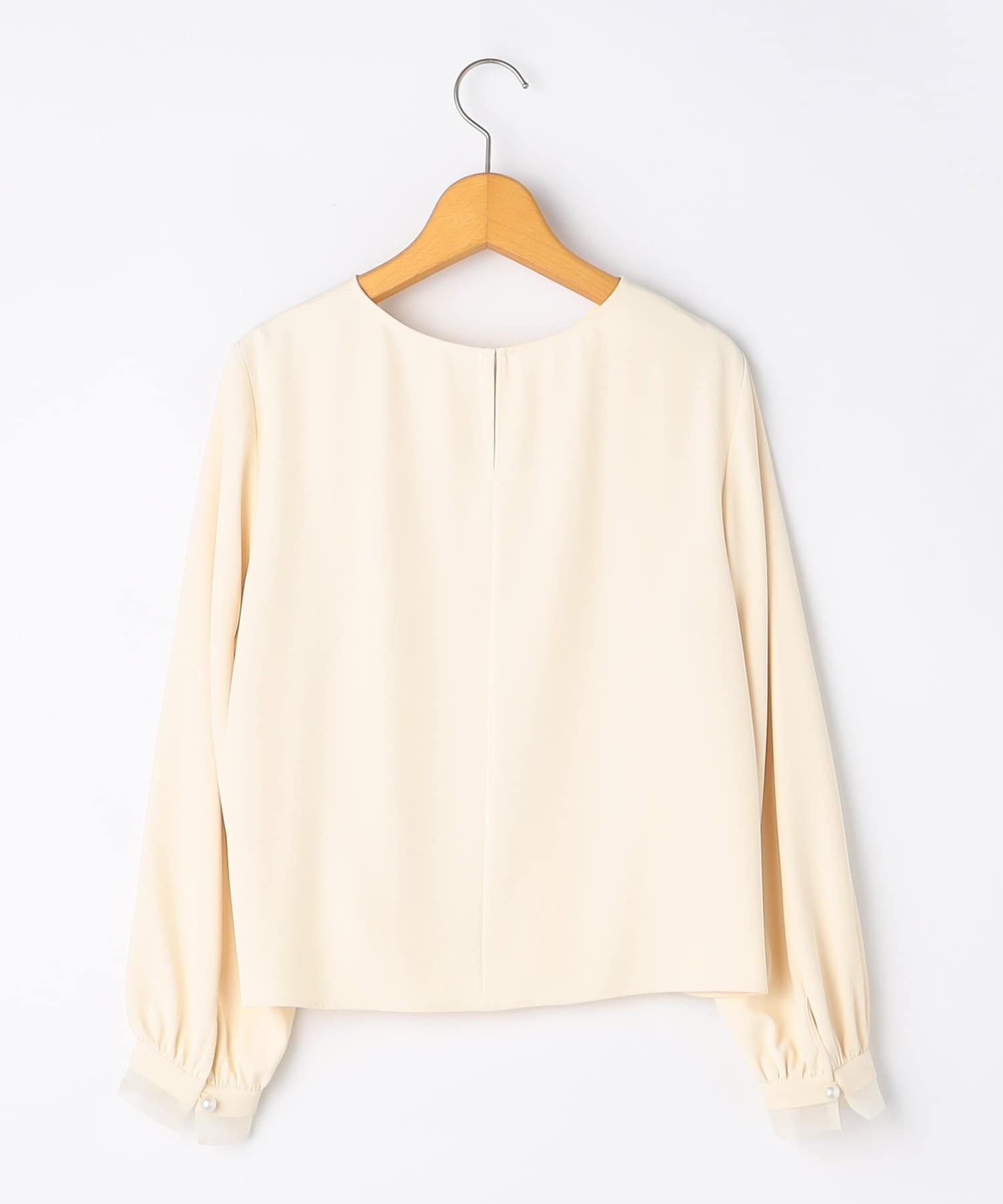 ・袖口のオーガンジーデザインとパール釦がポイントのきれいめブラウス