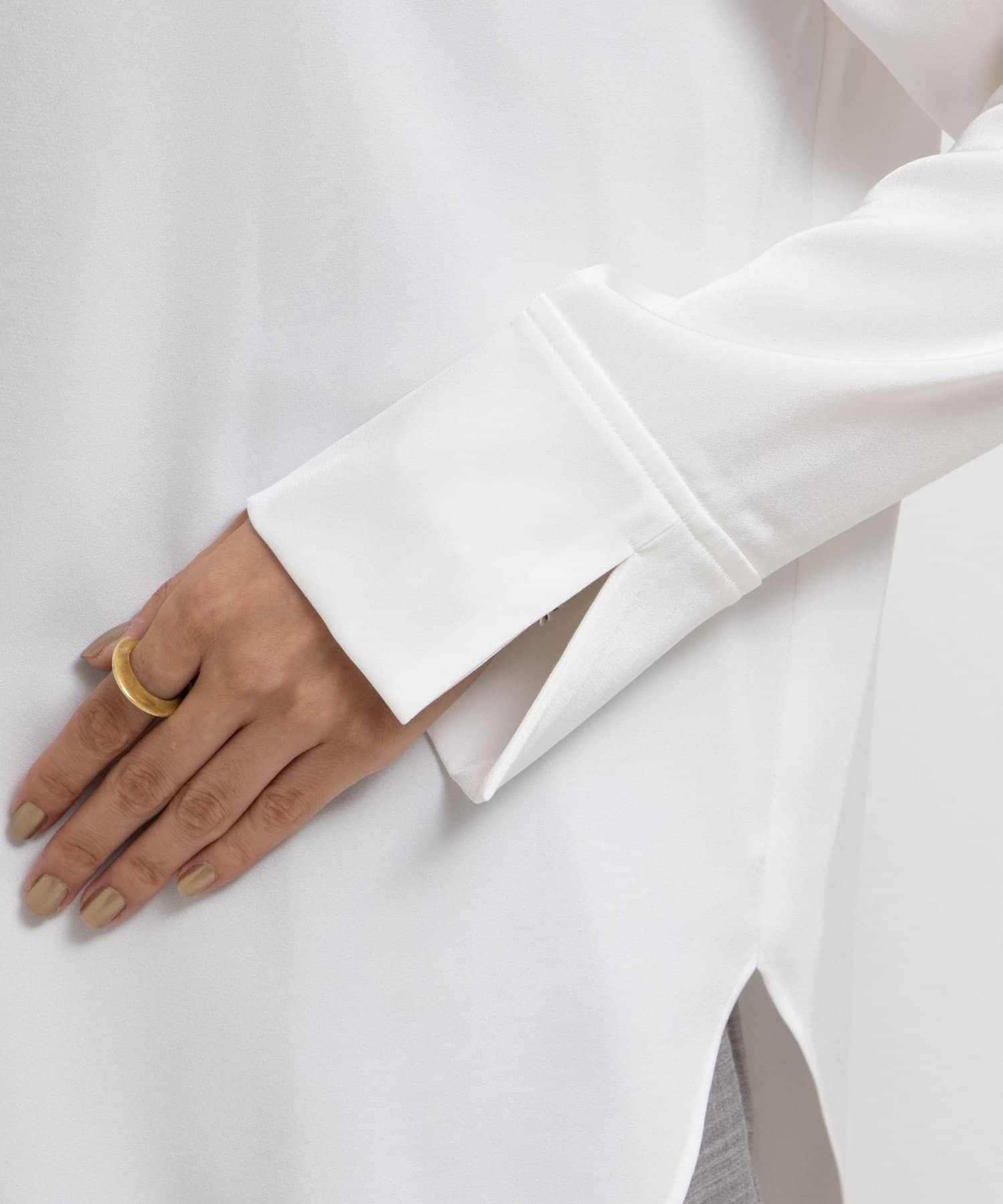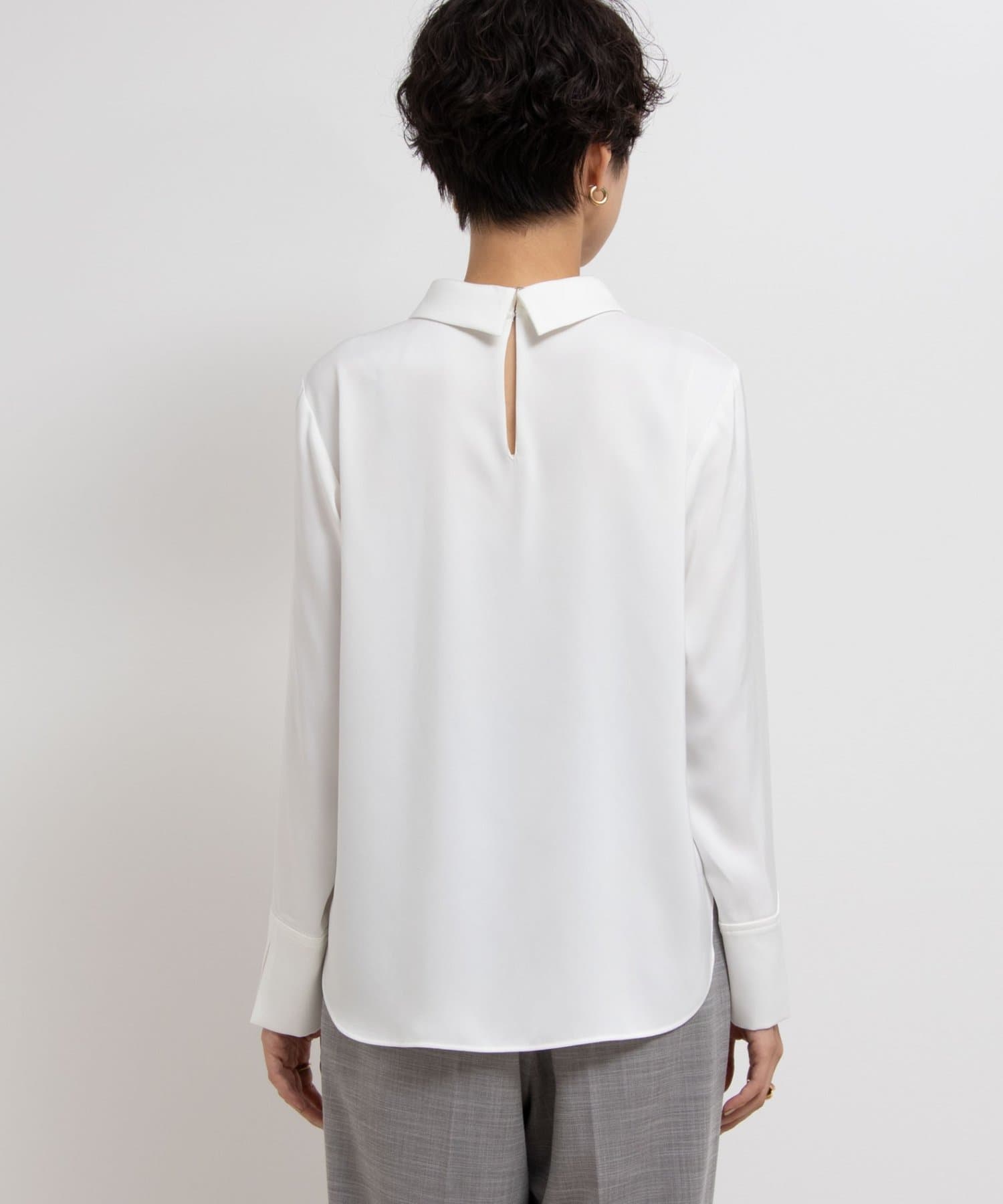 ◇【WEB限定】ウォッシャブルオトナサテン衿カフス付きTブラウス