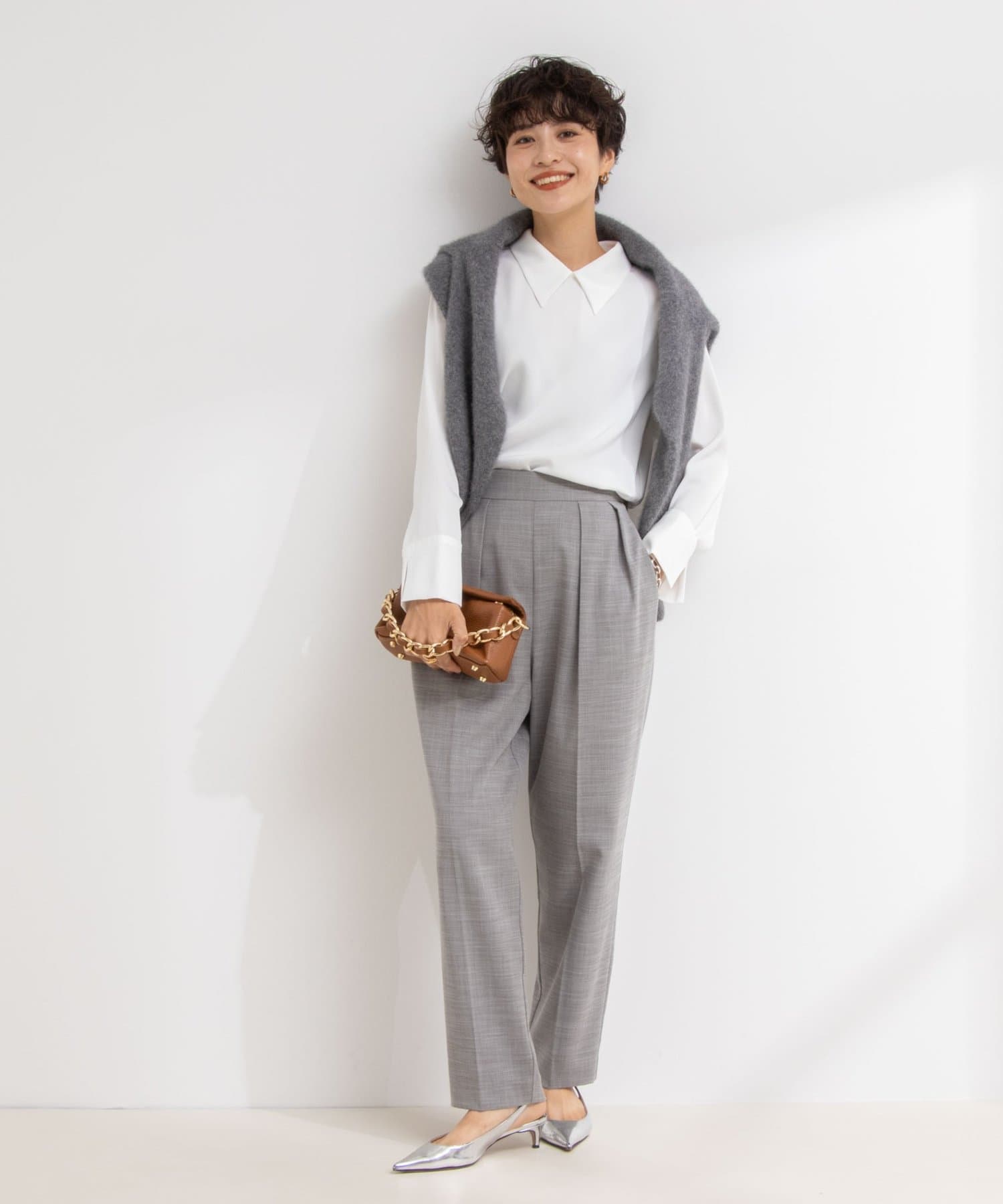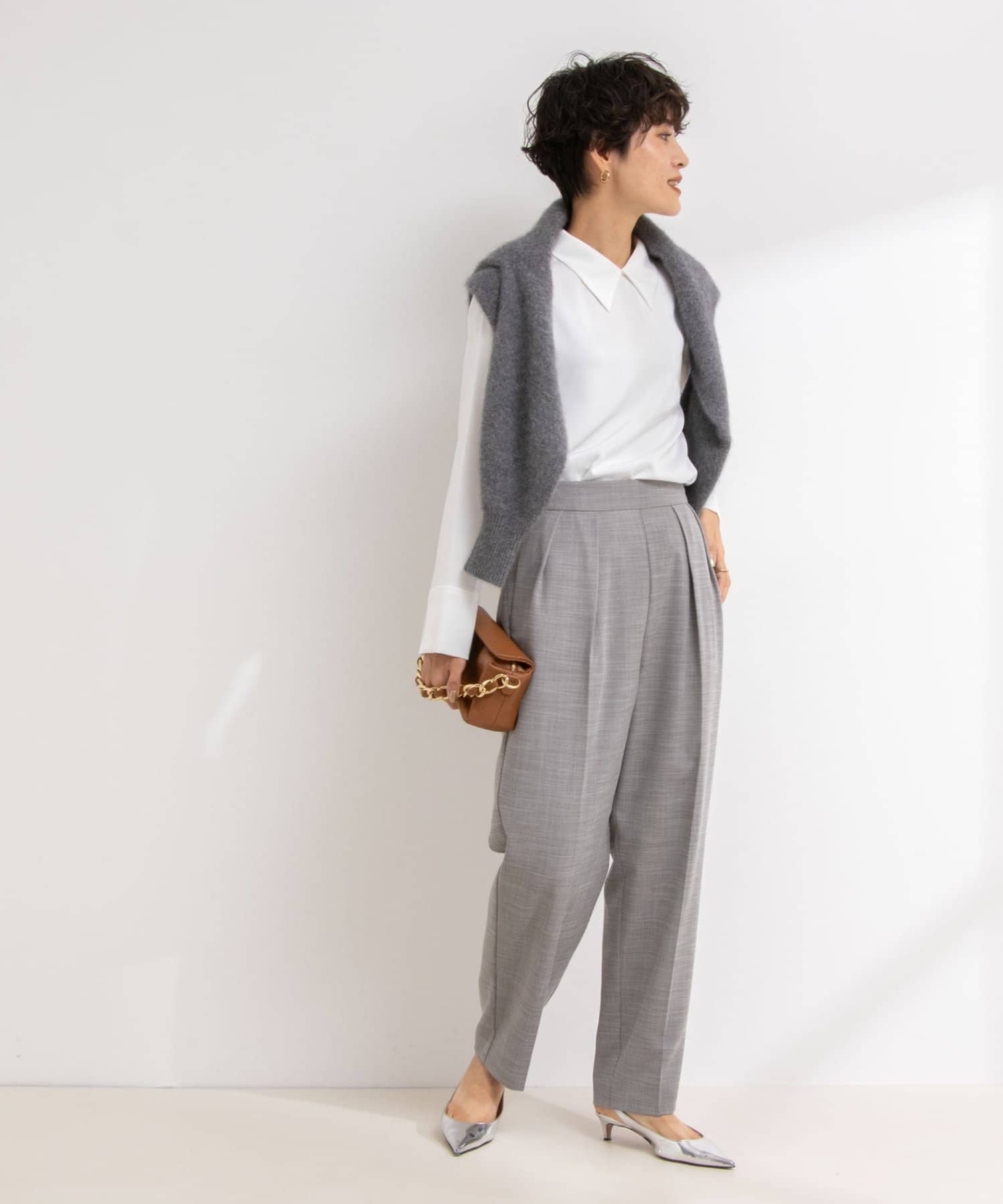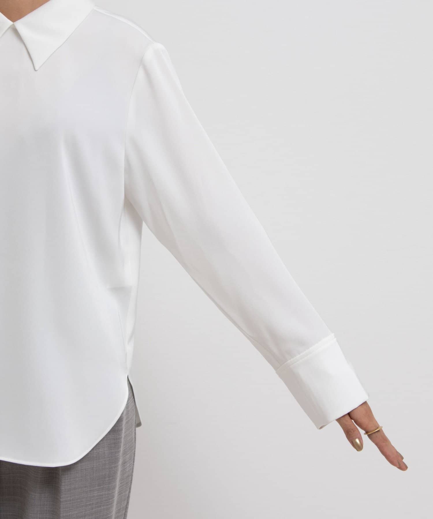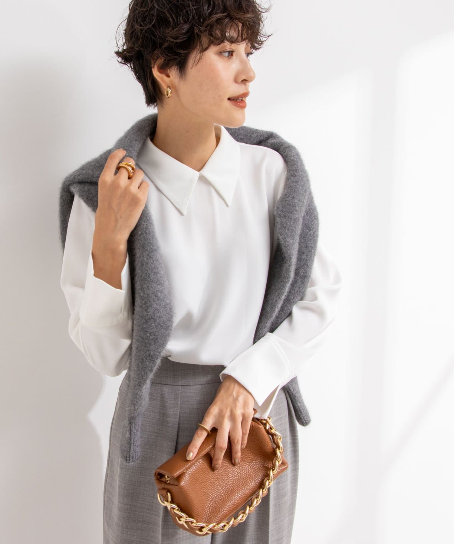 ・きちんと感がありつつも、ツヤととろみのある素材で気軽に着やすい1枚に