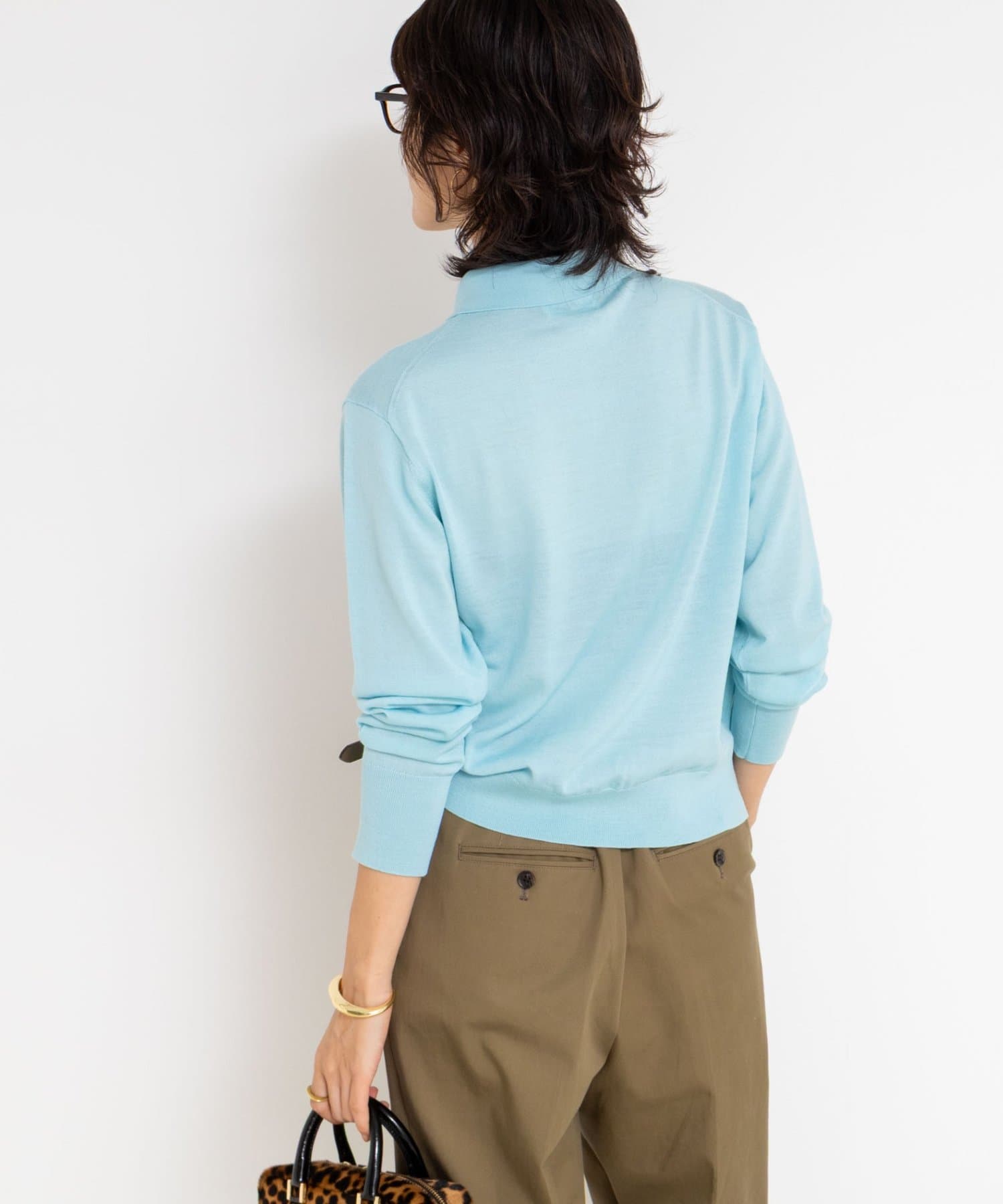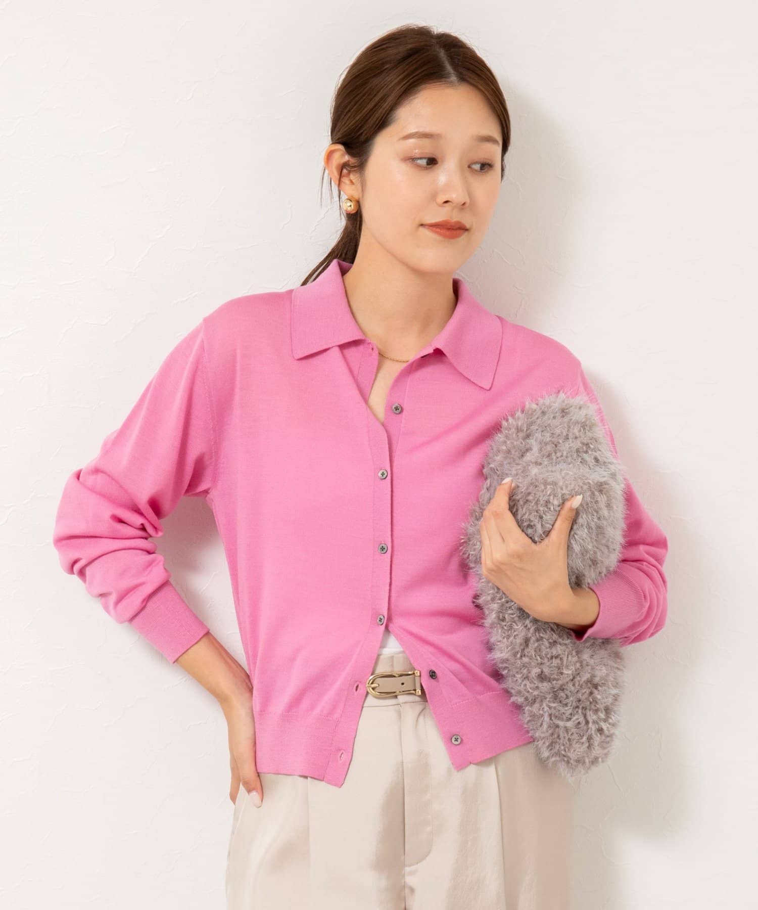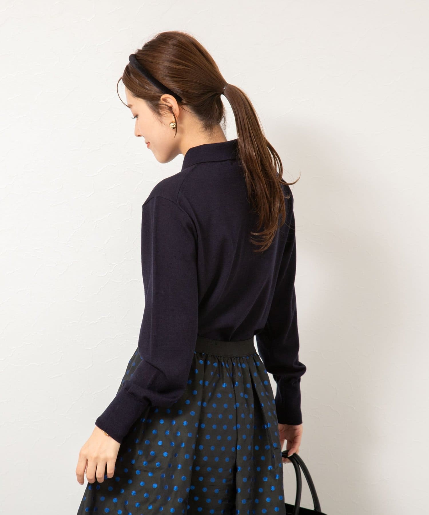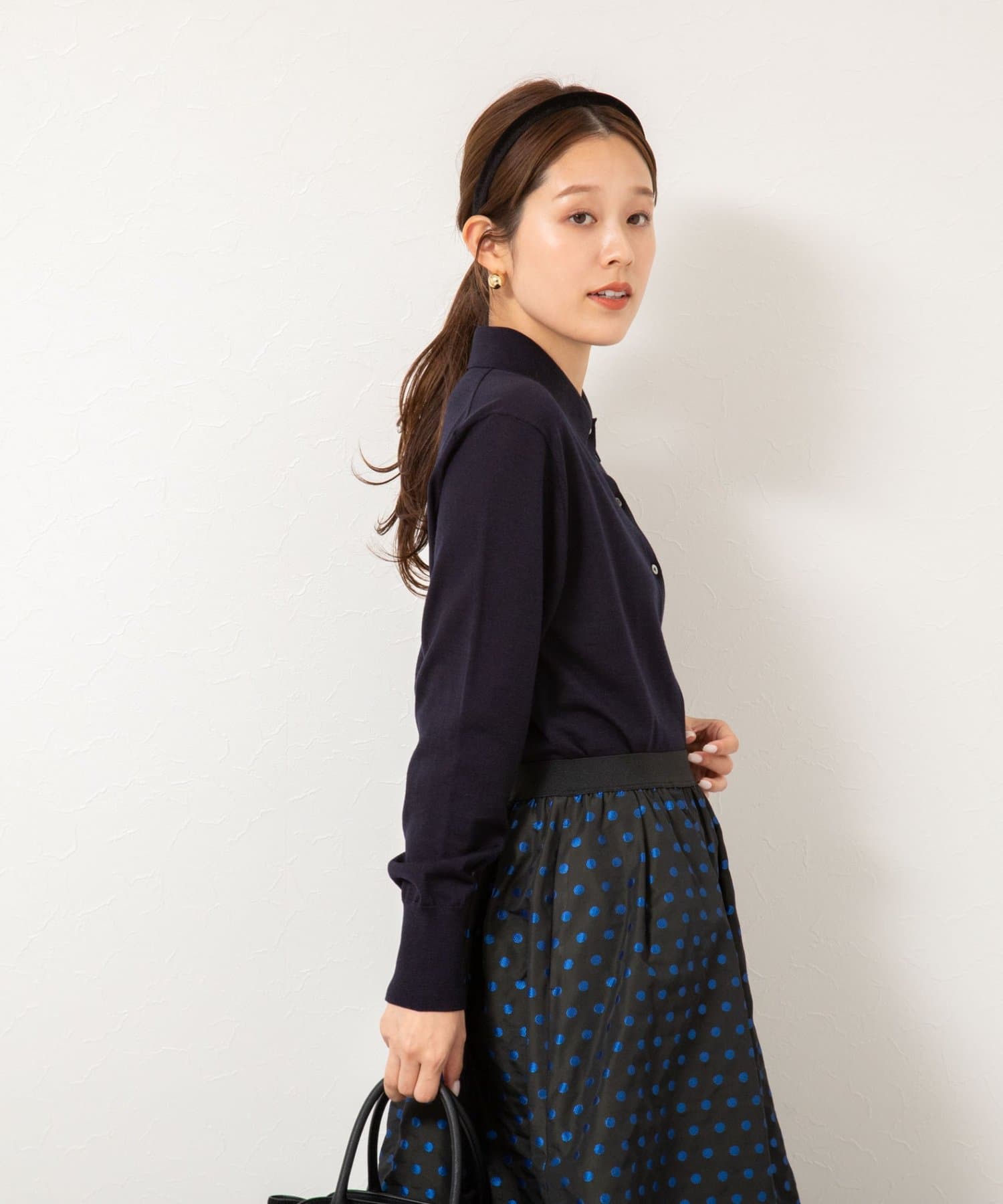 ・襟付きカーディガンは前を開けてはおりとしても、前を閉めてポロニット風の着用もおすすめ