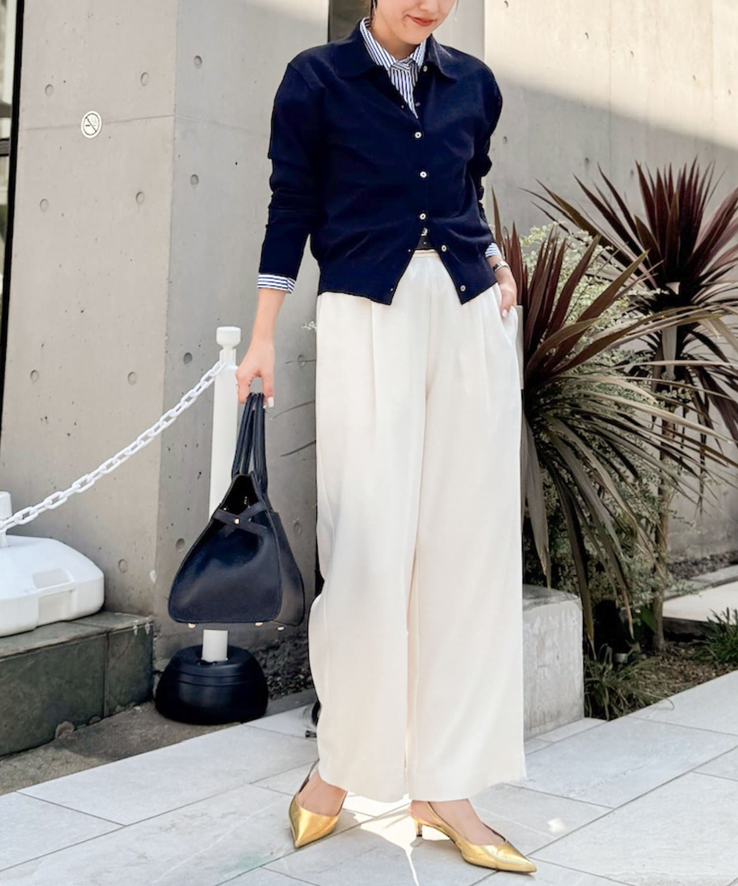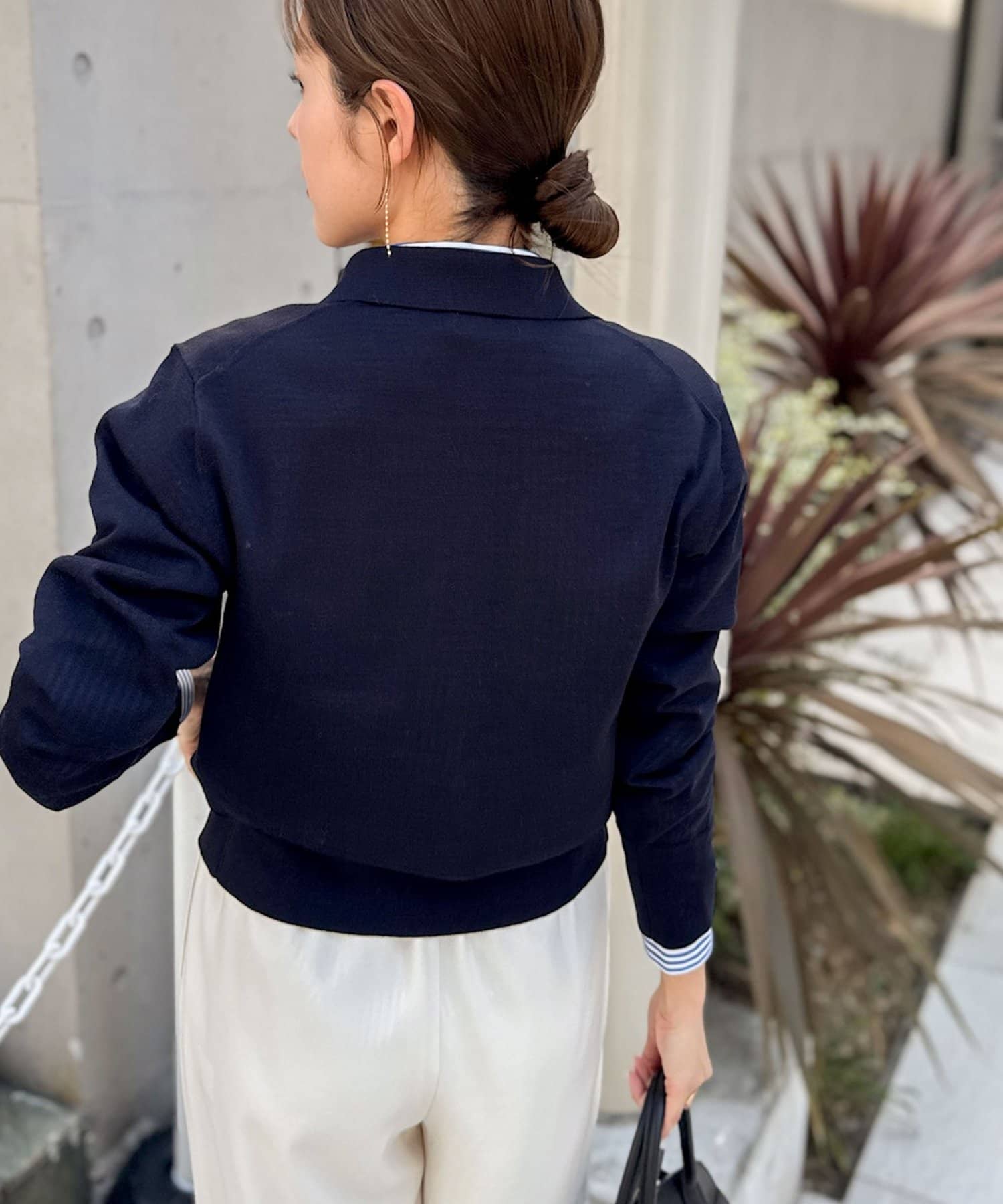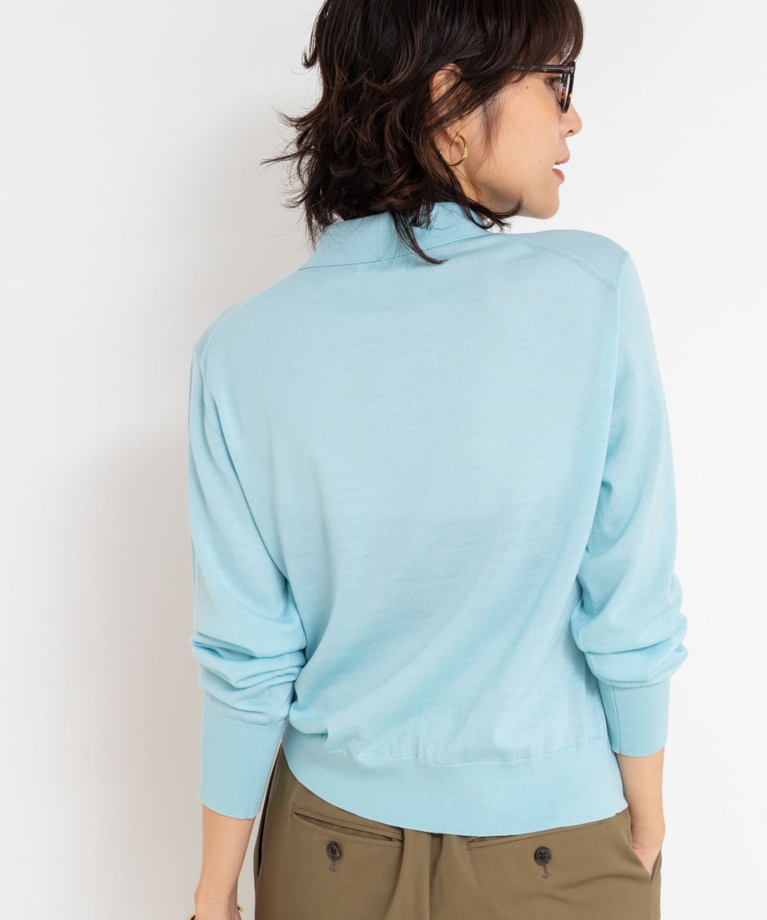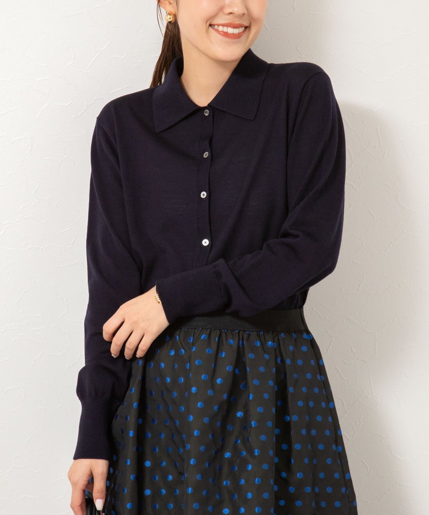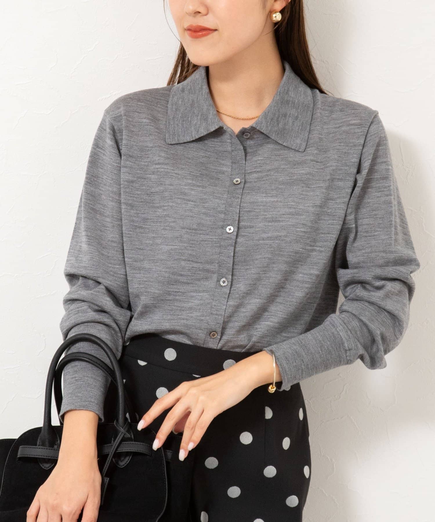 ・襟付きカーディガンは前を開けてはおりとしても、前を閉めてポロニット風の着用もおすすめ