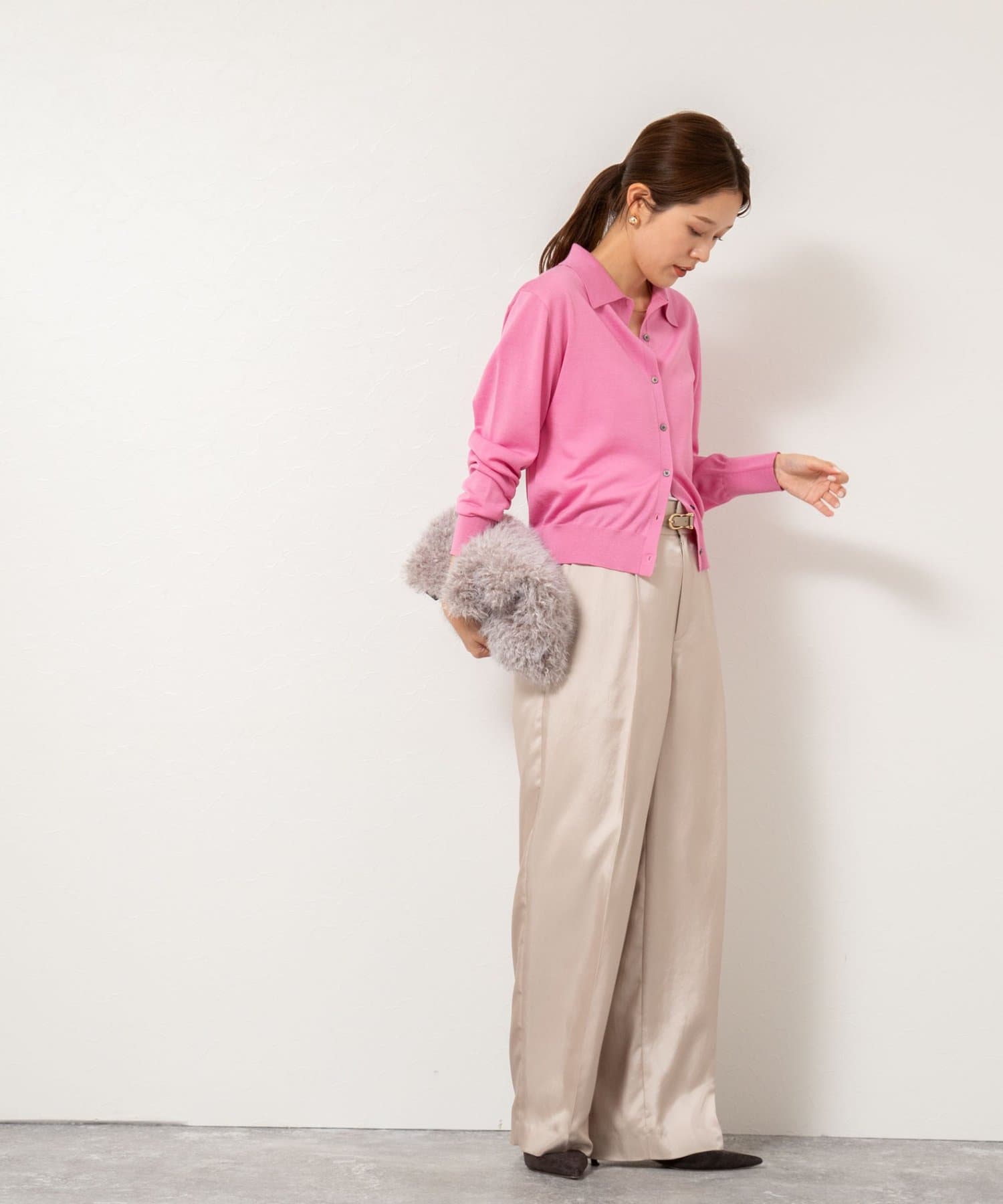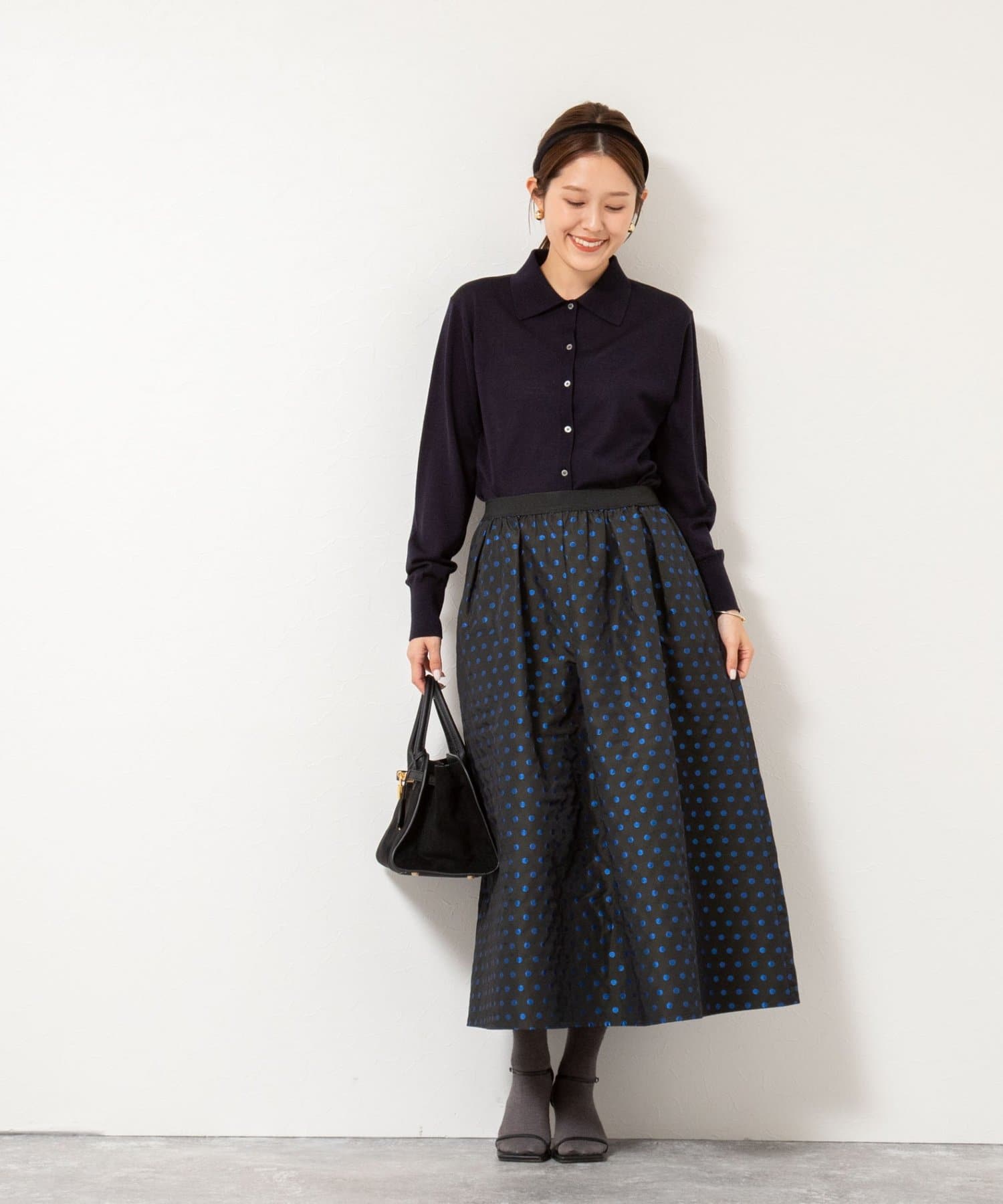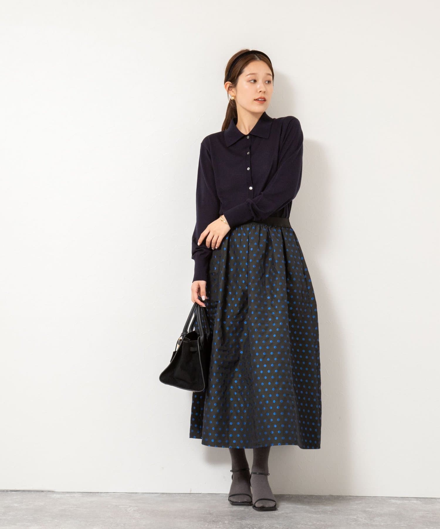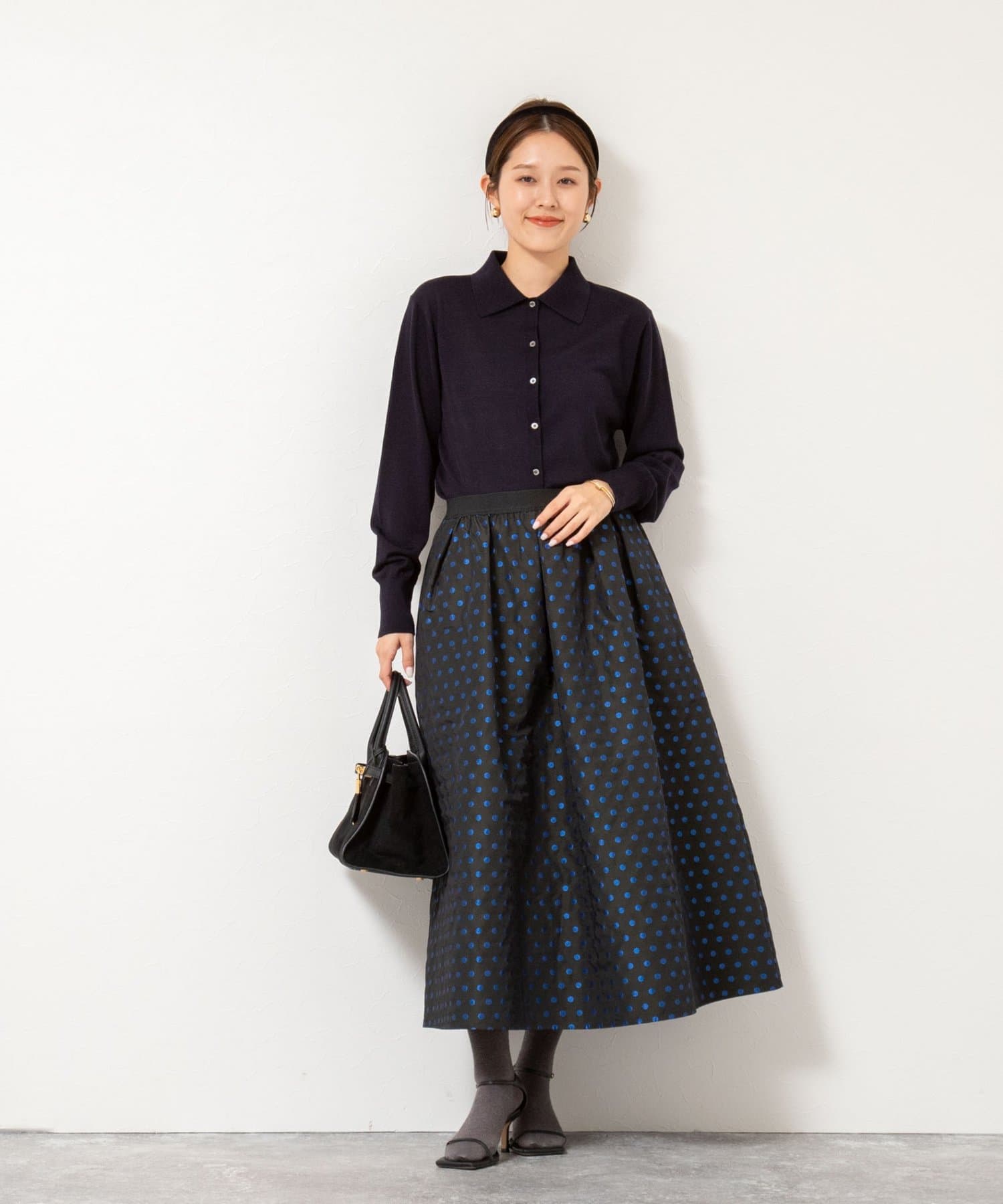 ・襟付きカーディガンは前を開けてはおりとしても、前を閉めてポロニット風の着用もおすすめ