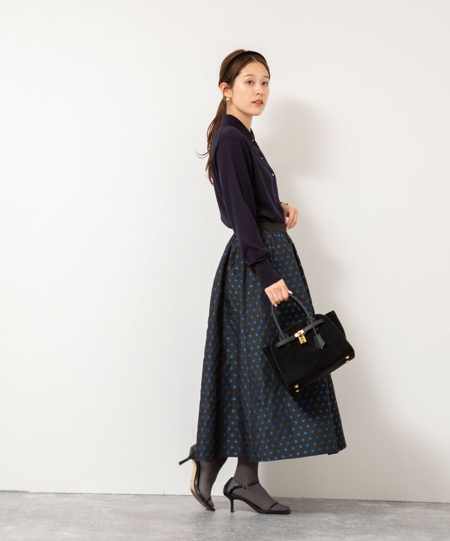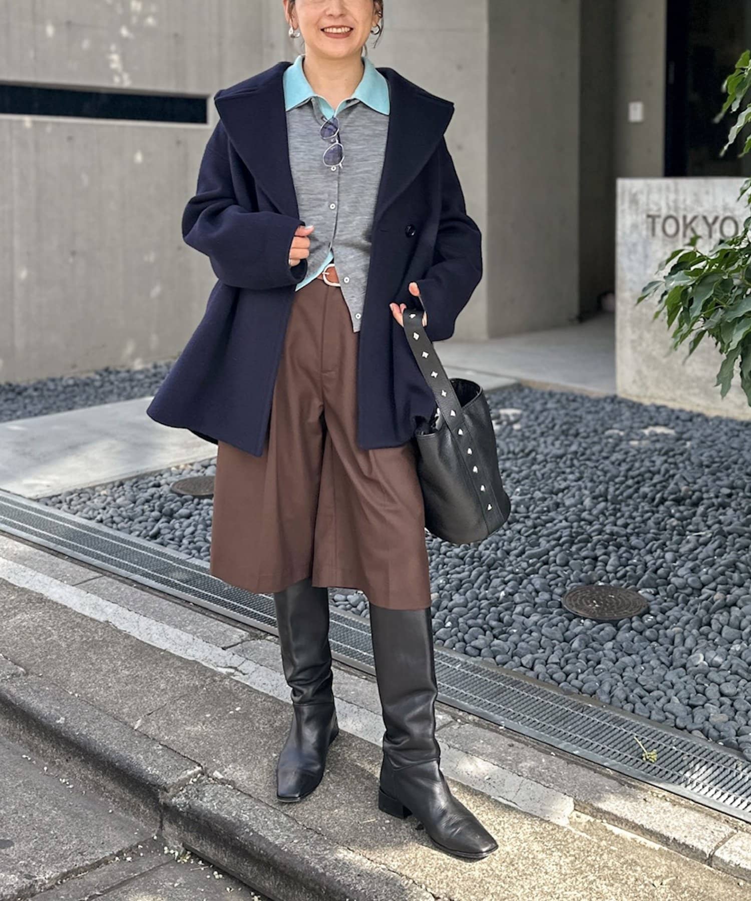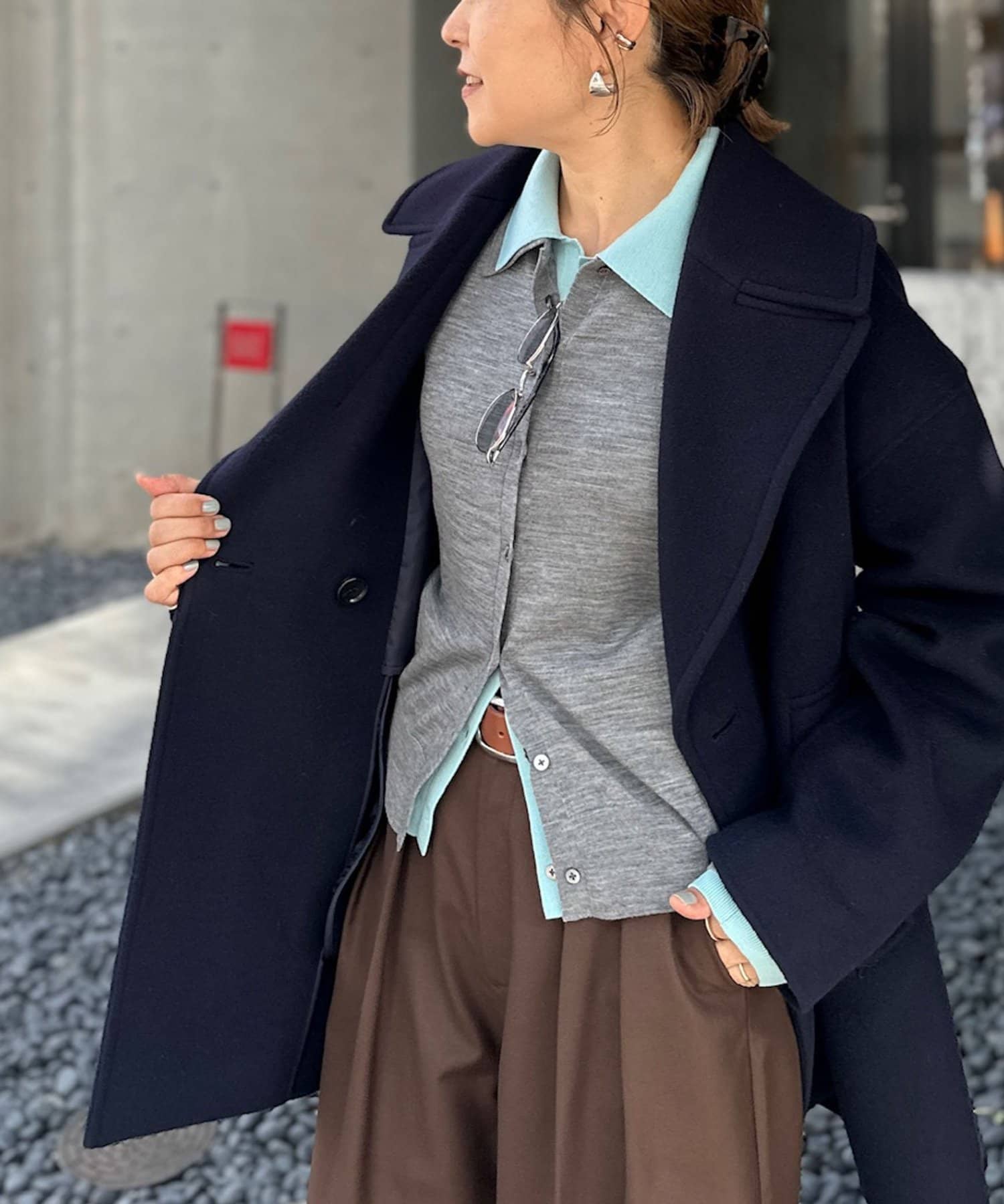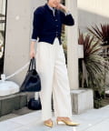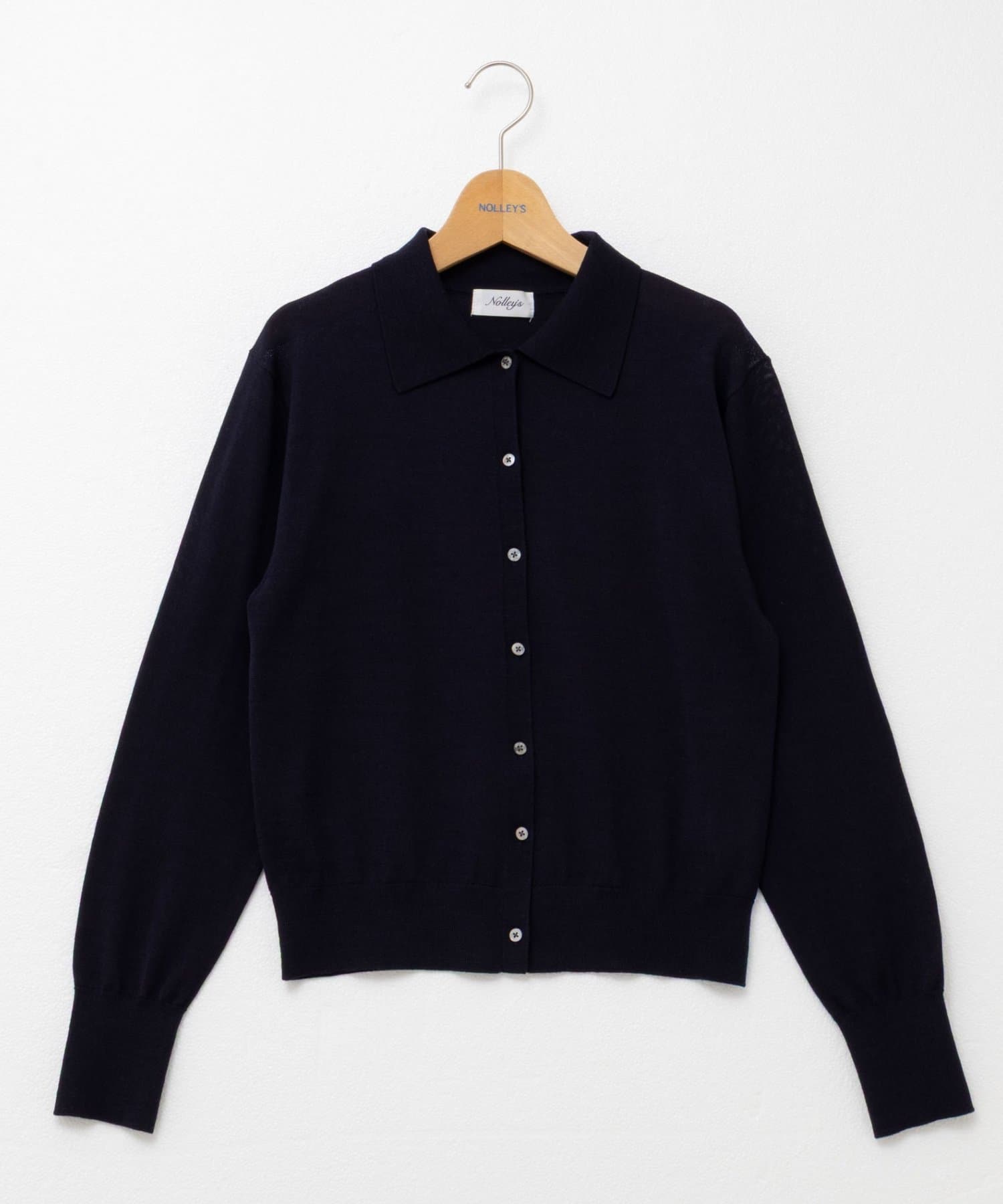 ・襟付きカーディガンは前を開けてはおりとしても、前を閉めてポロニット風の着用もおすすめ