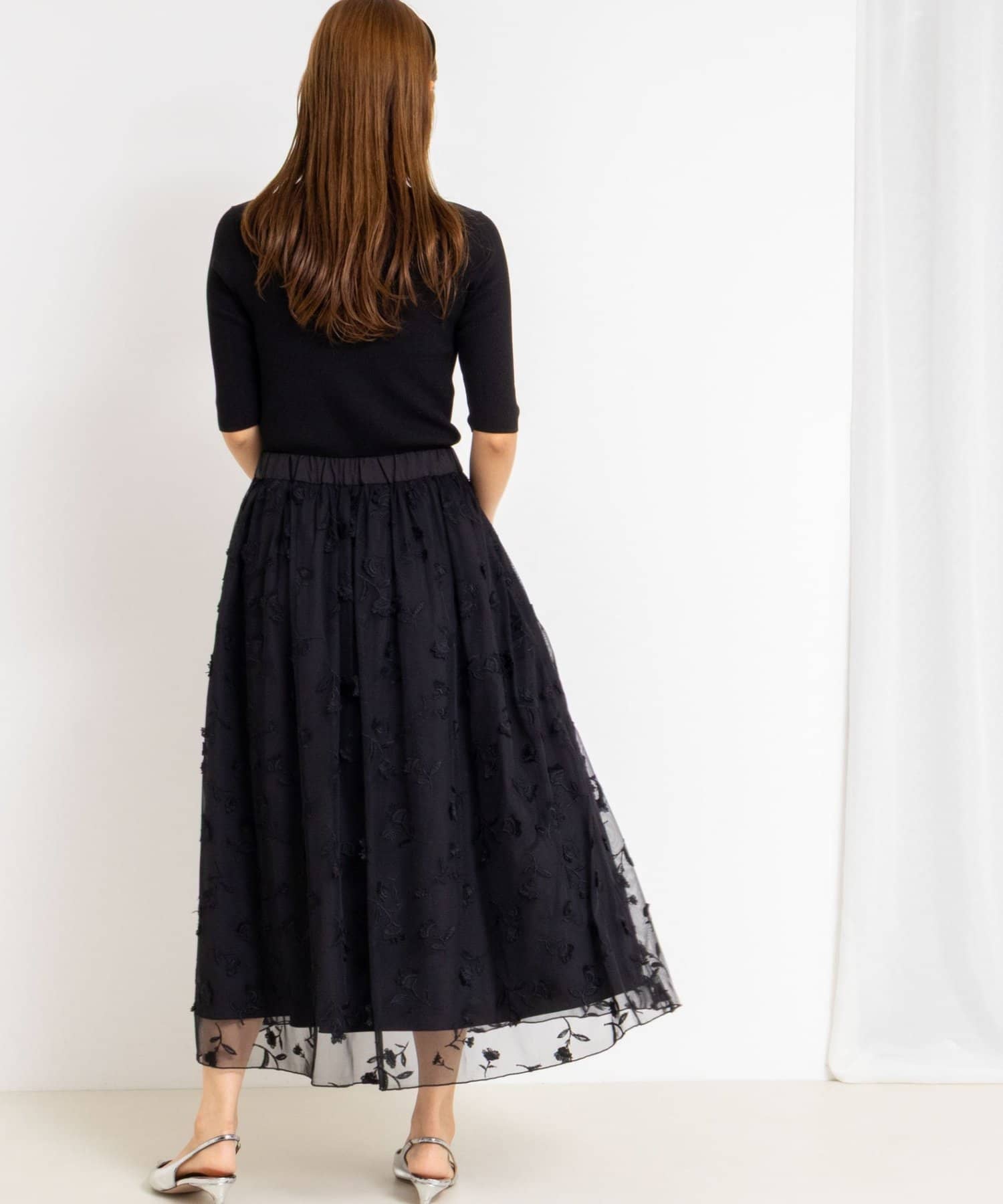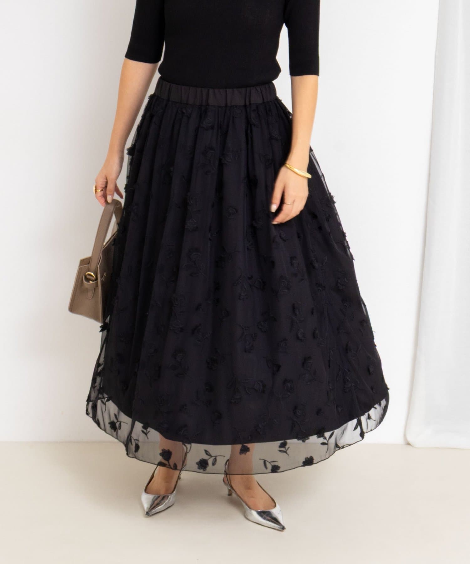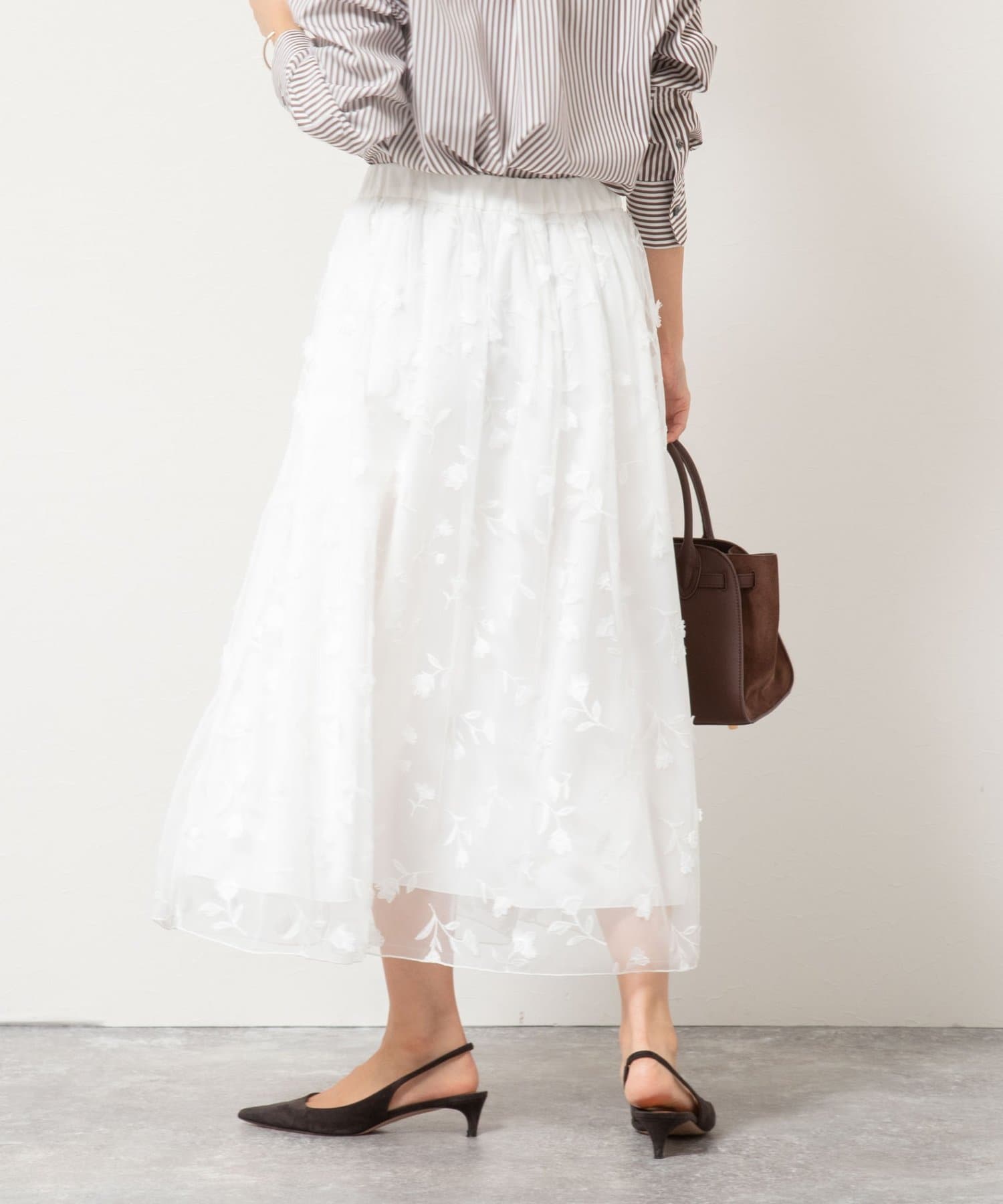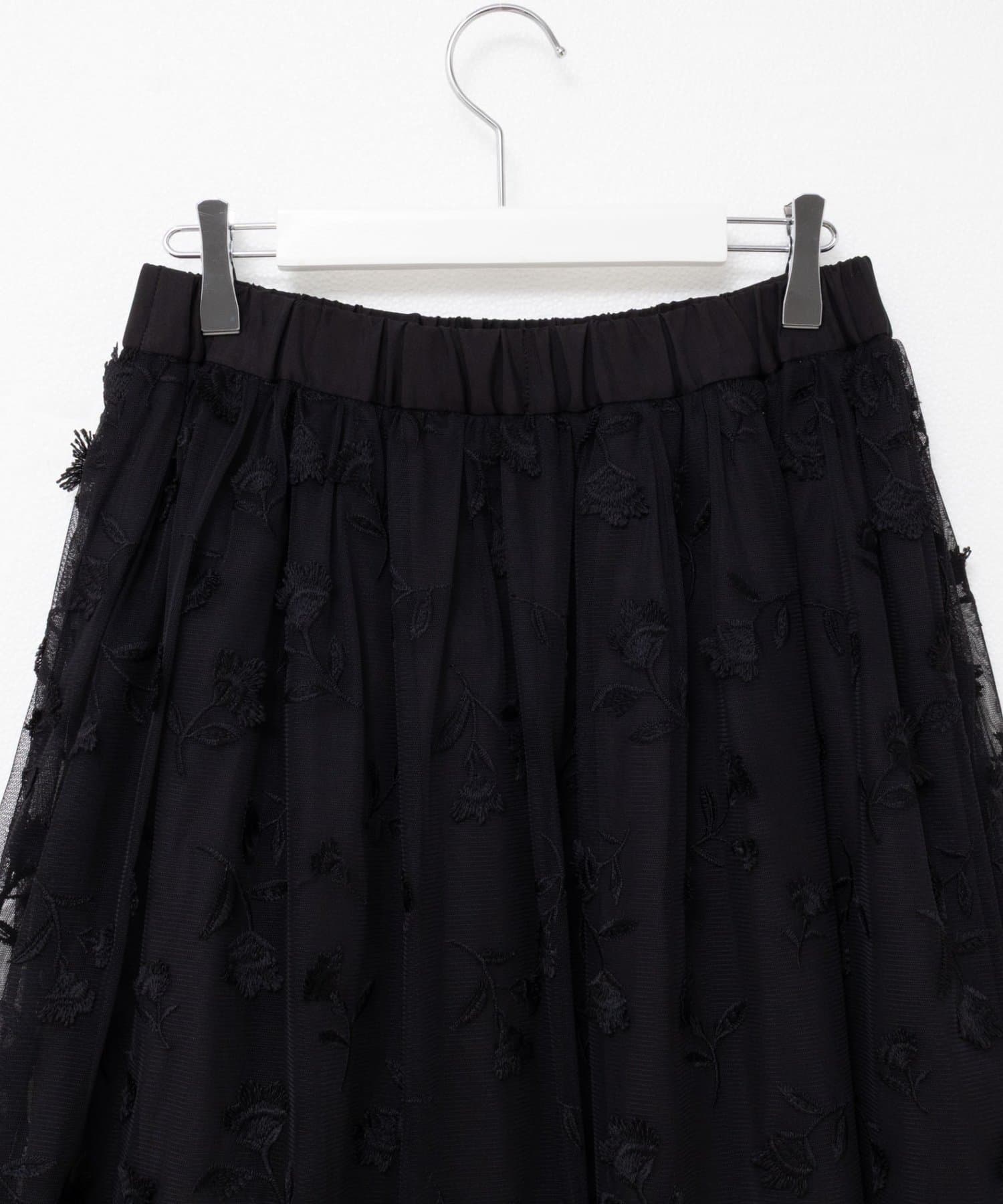 ・立体的な刺繍が目を引く、華やかなギャザースカート