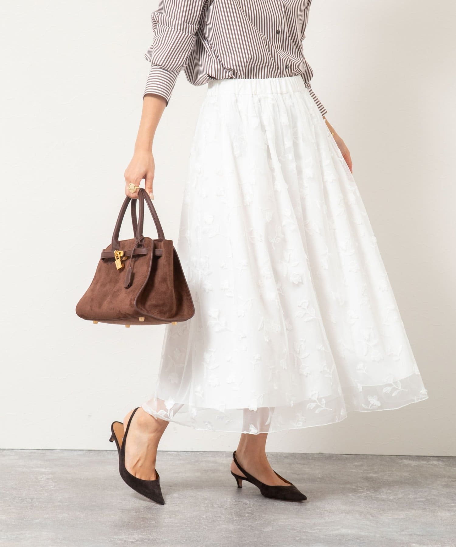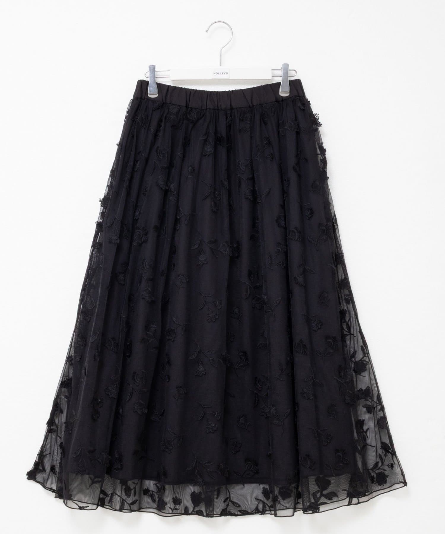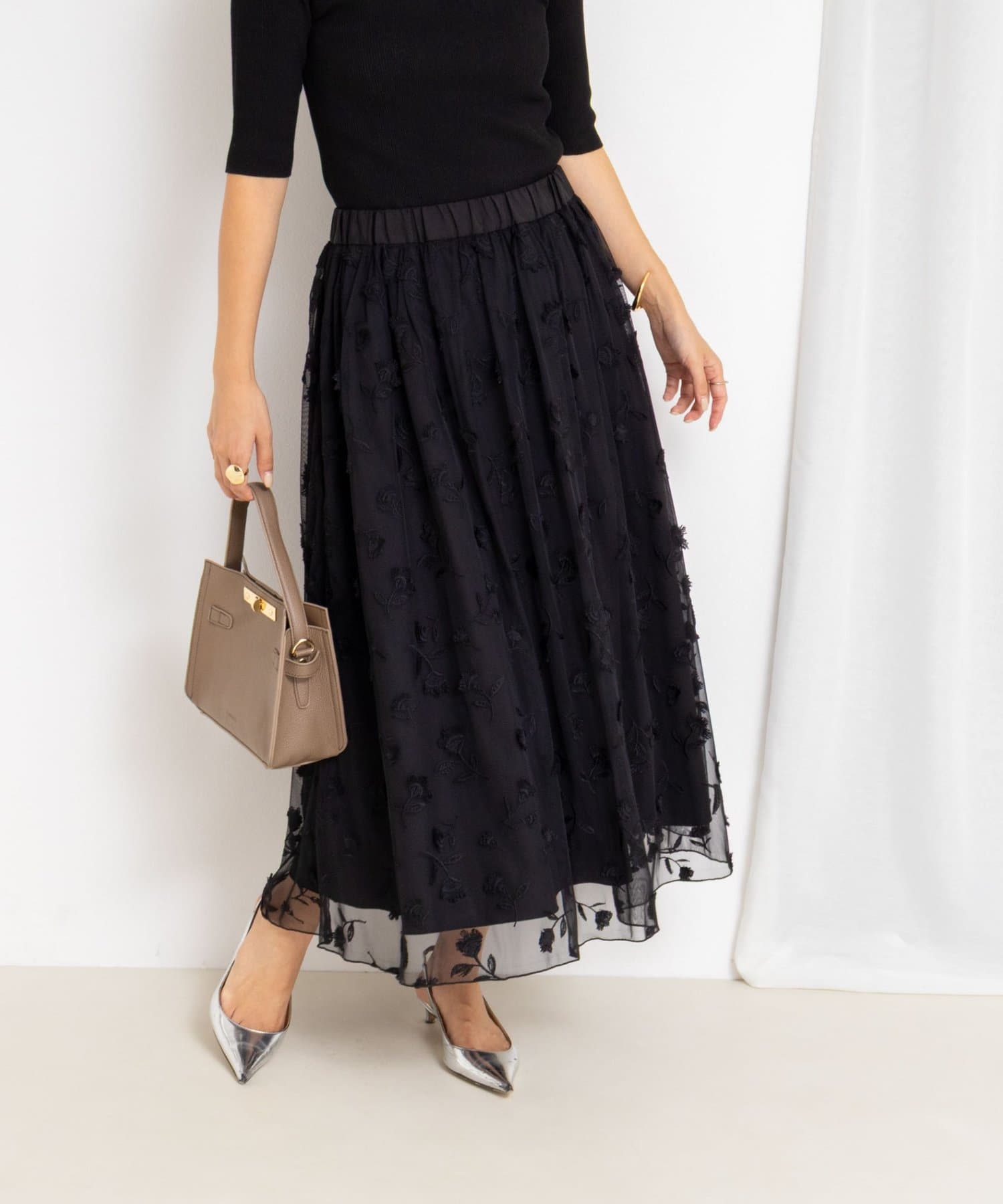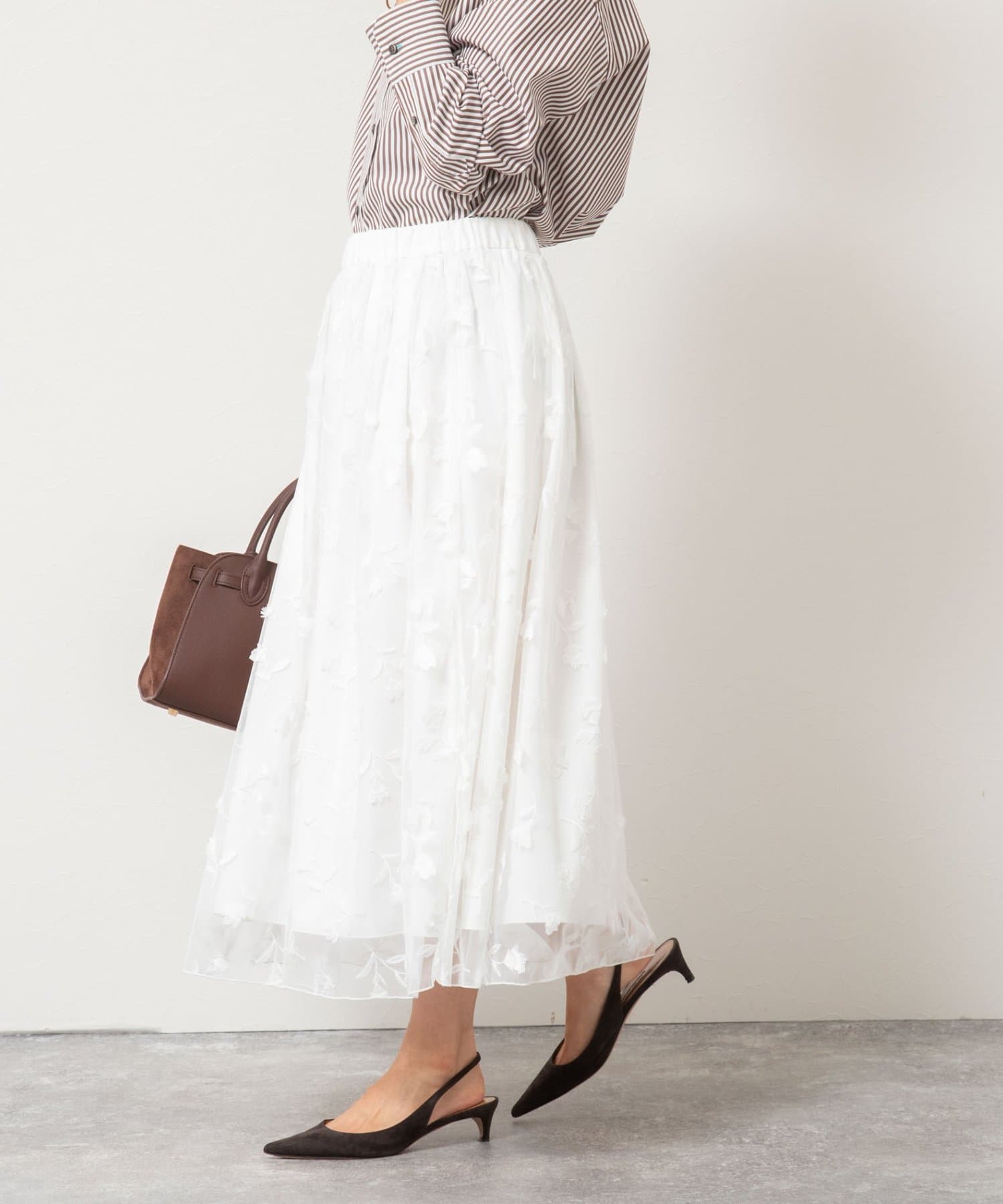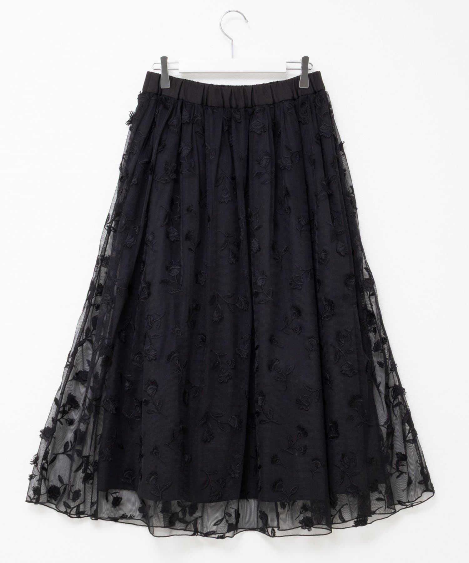 ・立体的な刺繍が目を引く、華やかなギャザースカート