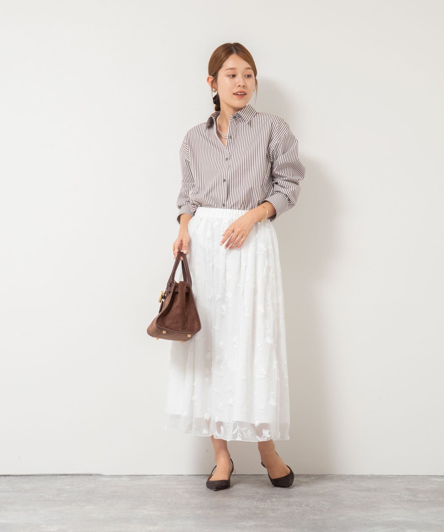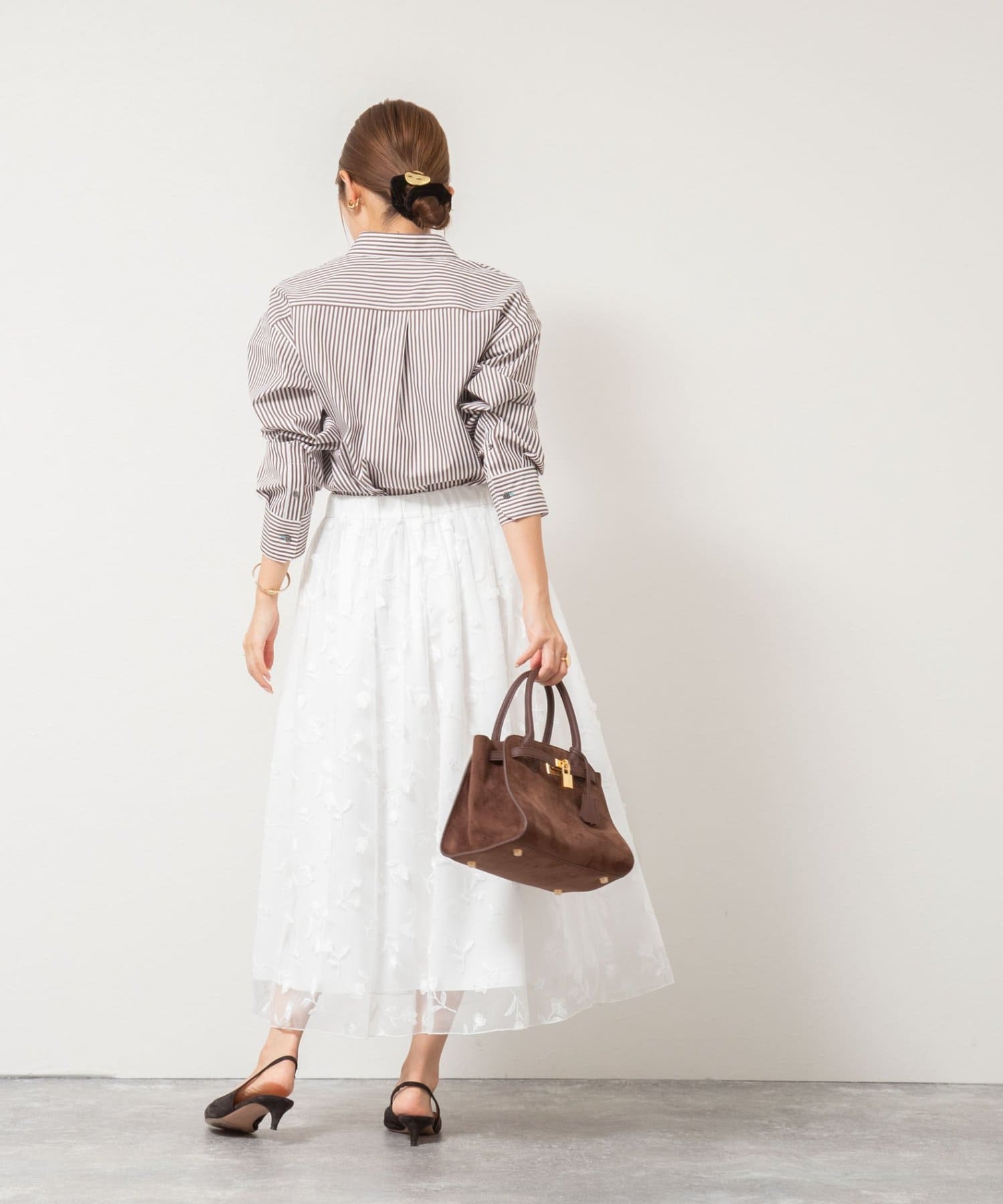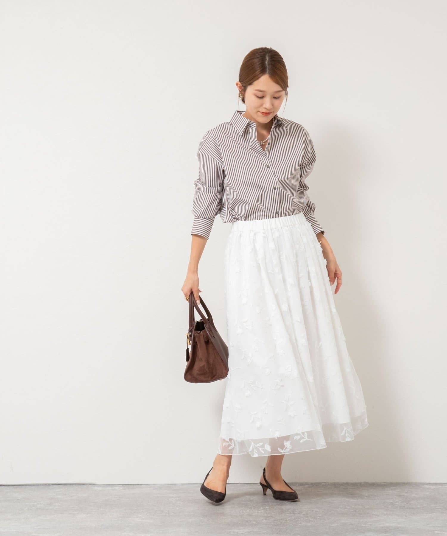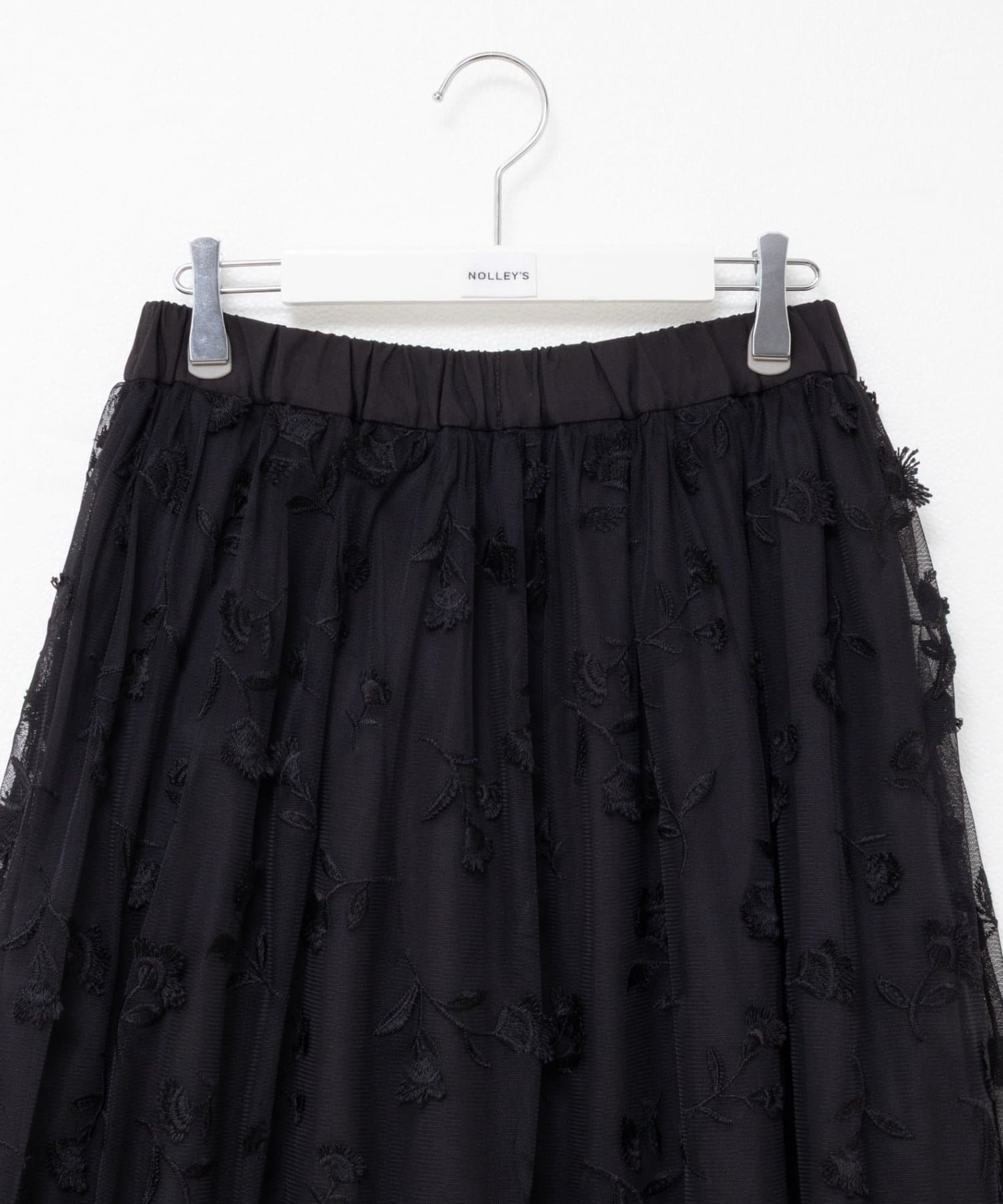 ・立体的な刺繍が目を引く、華やかなギャザースカート