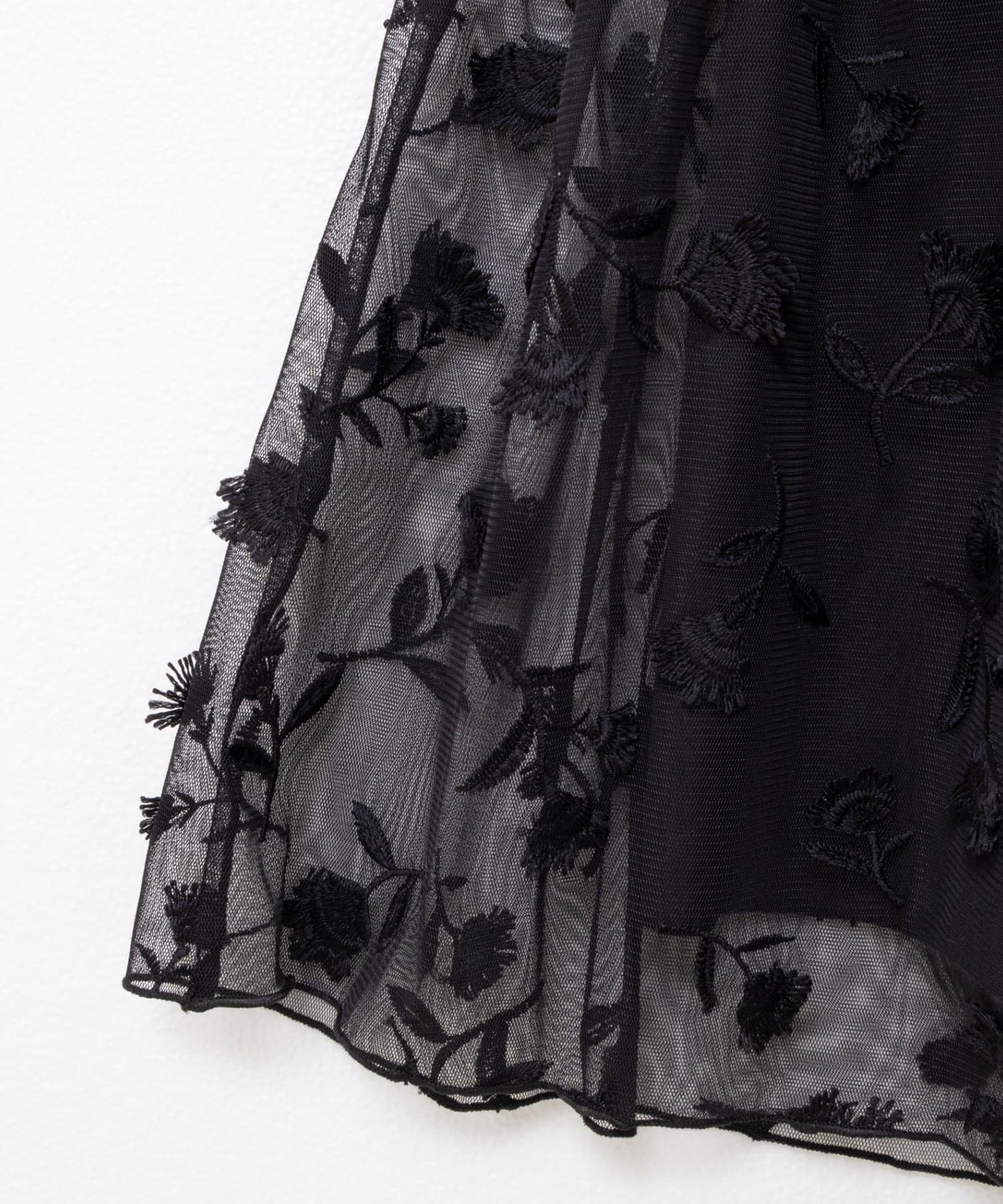 ウォッシャブルチュール刺繍リバーシブルギャザースカート