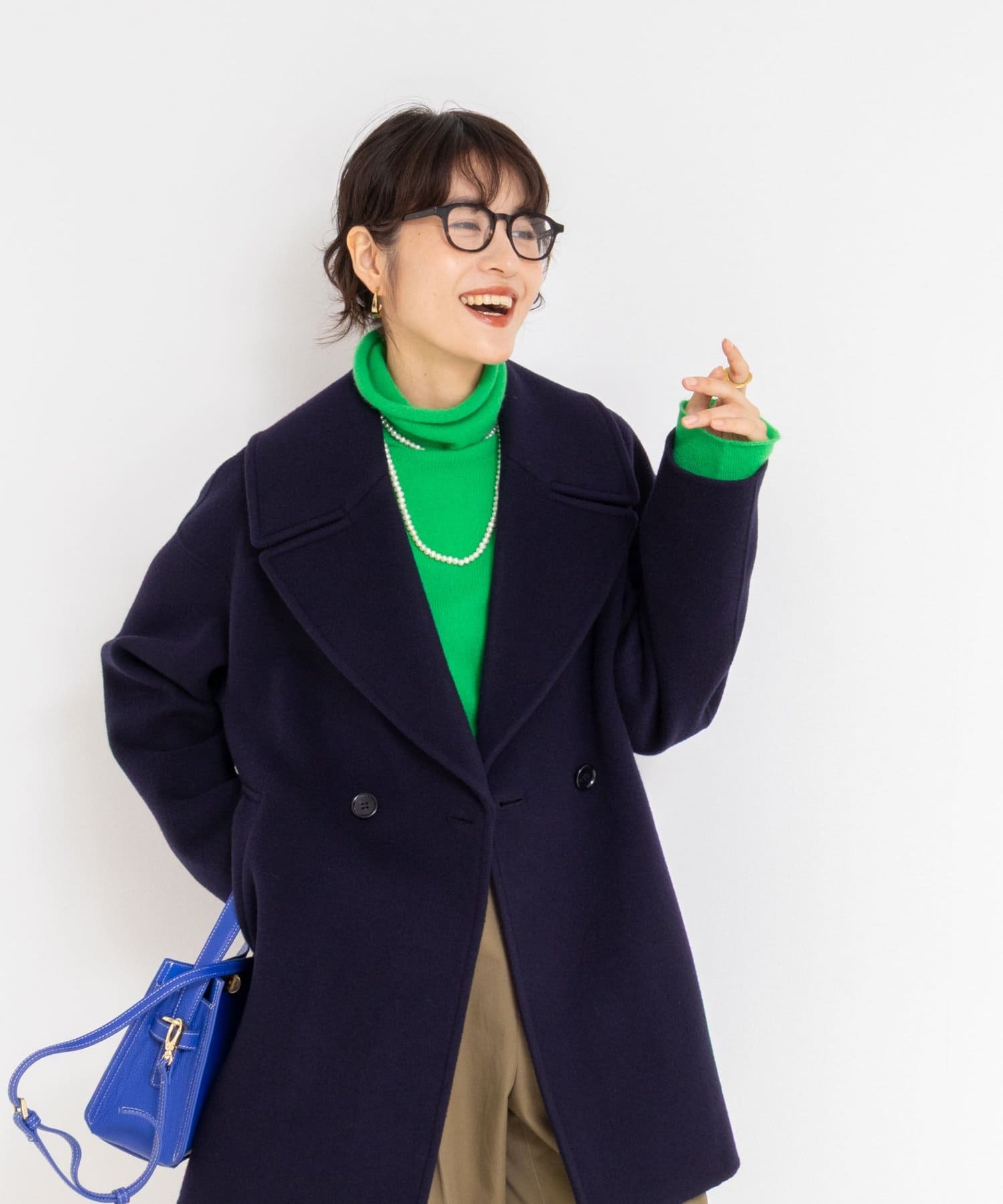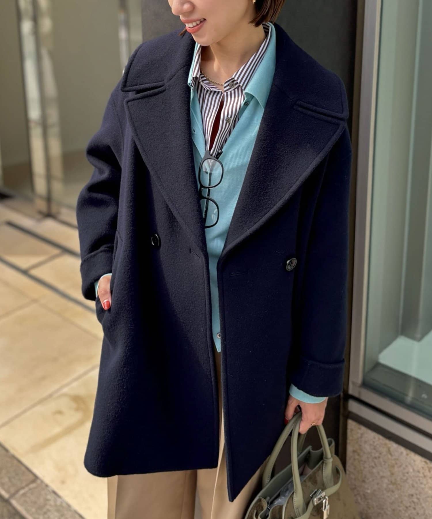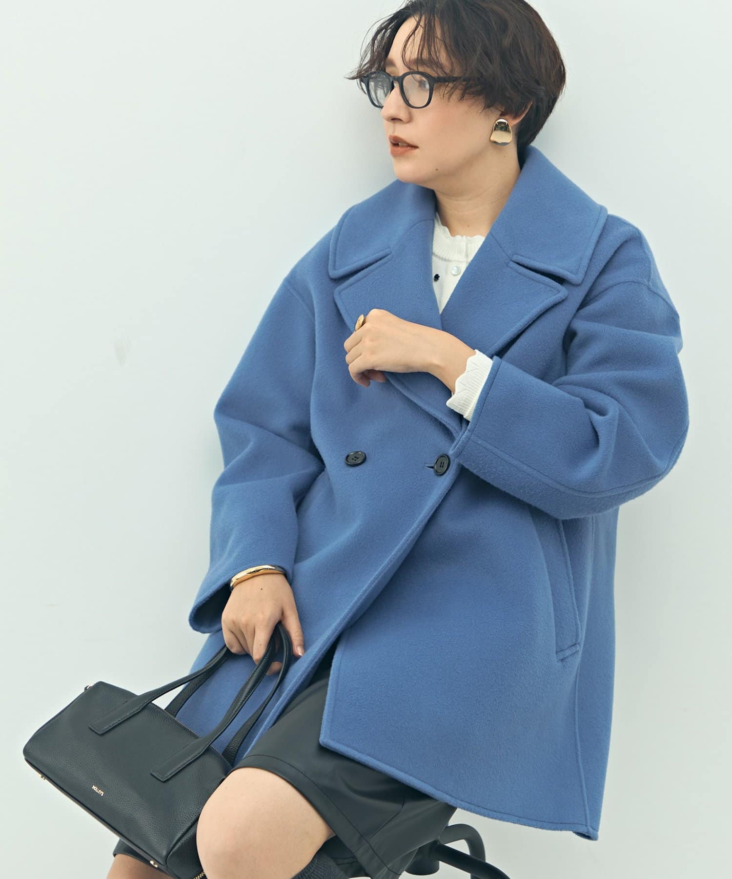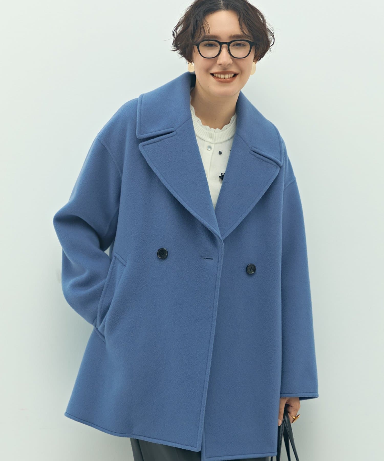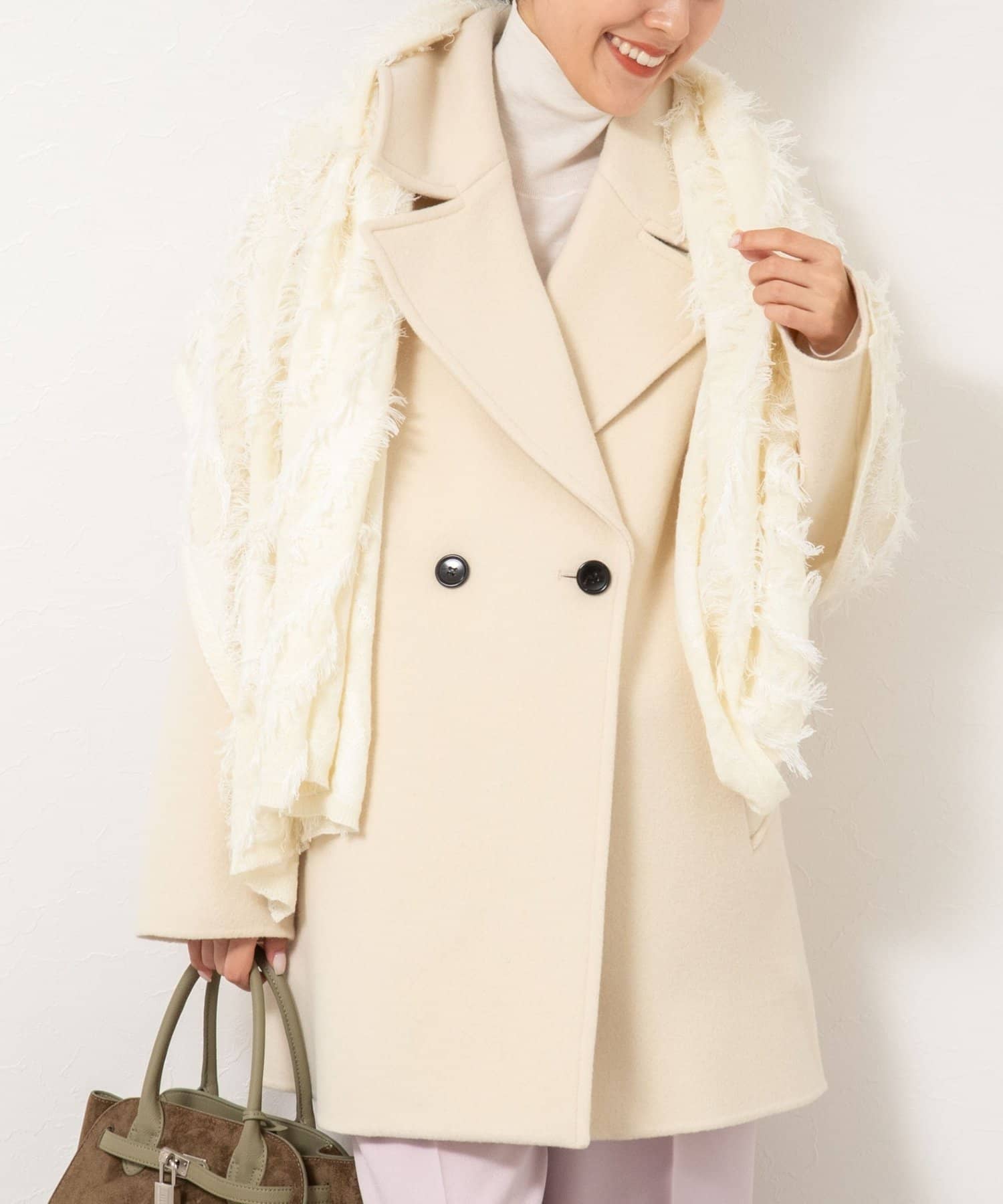 ・大き目の衿で顔周りにアクセントをつけて、小顔効果も◎