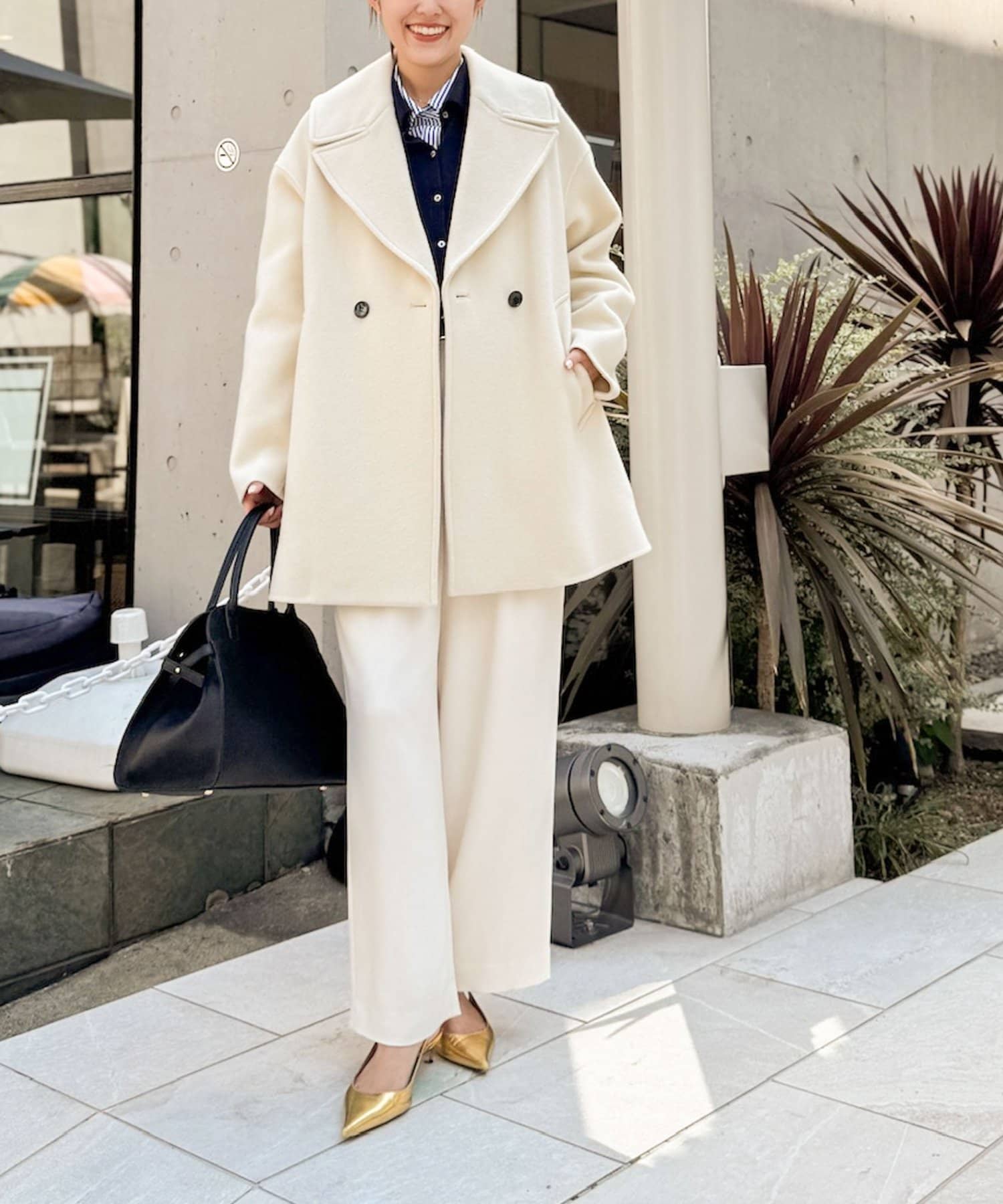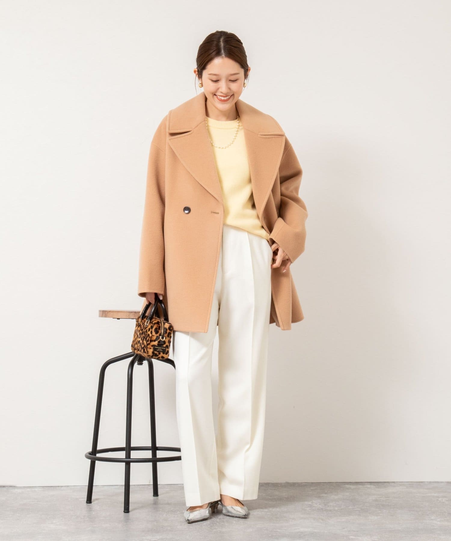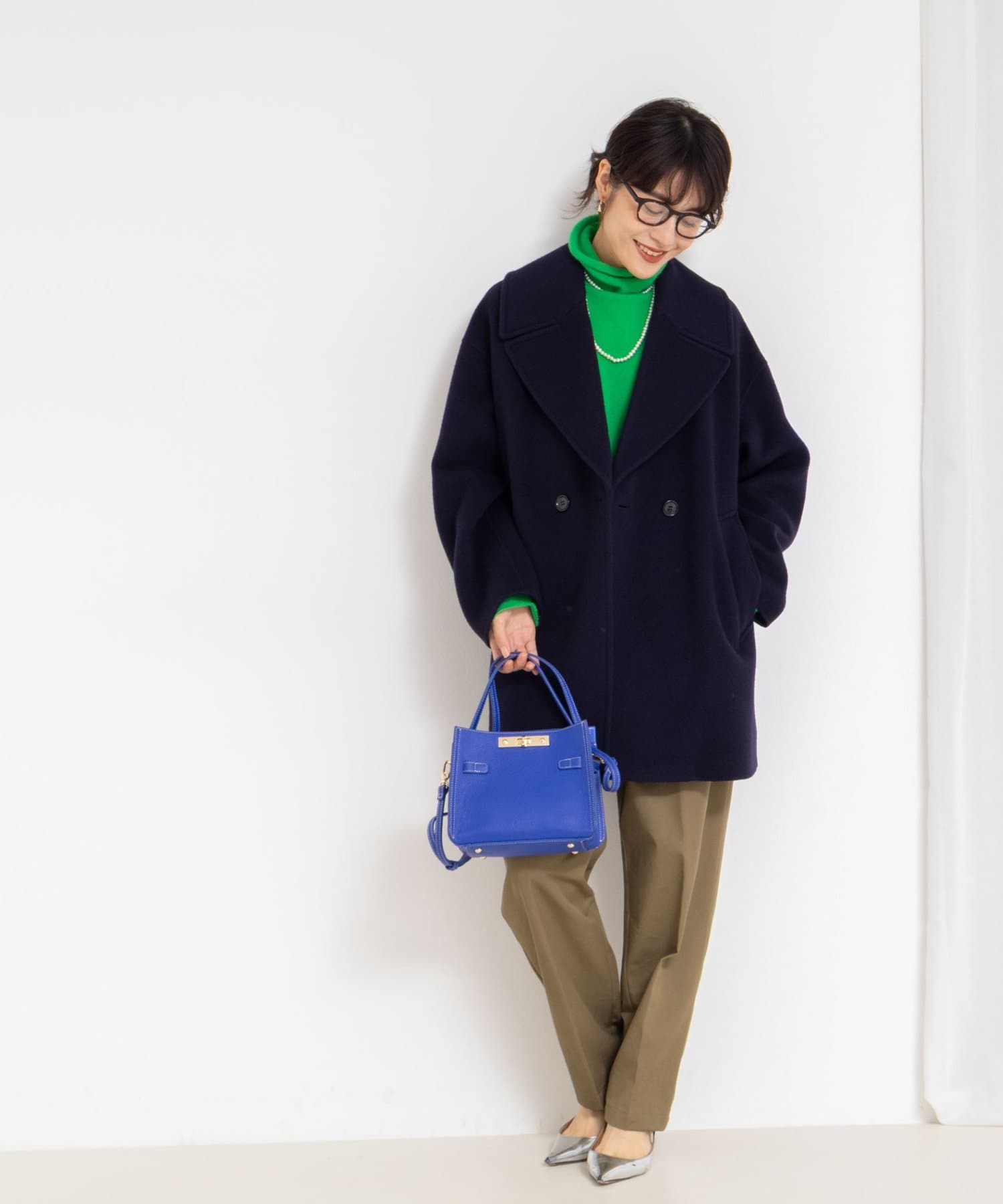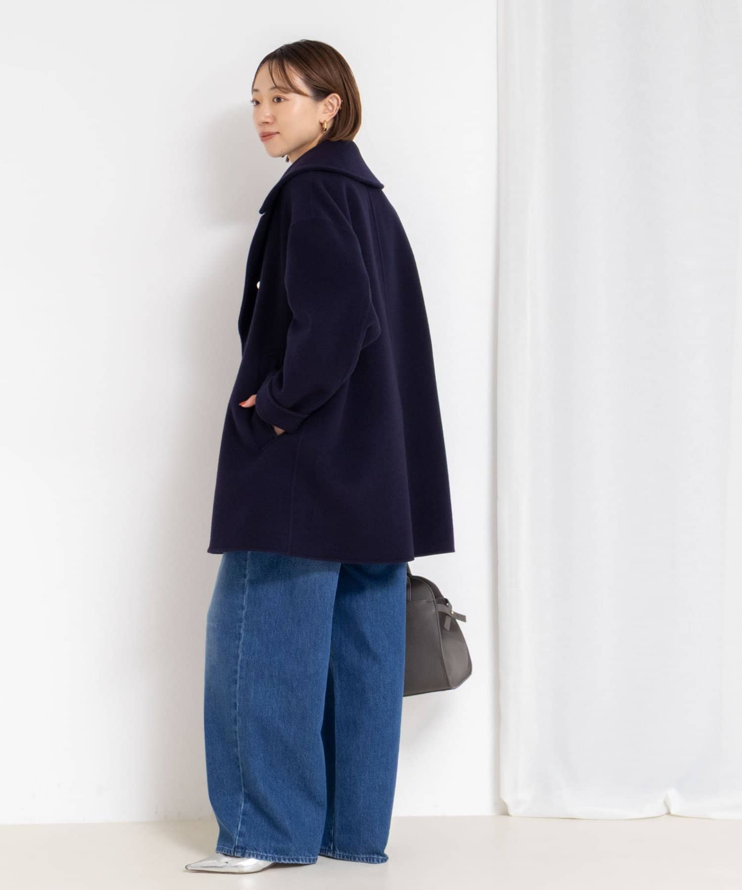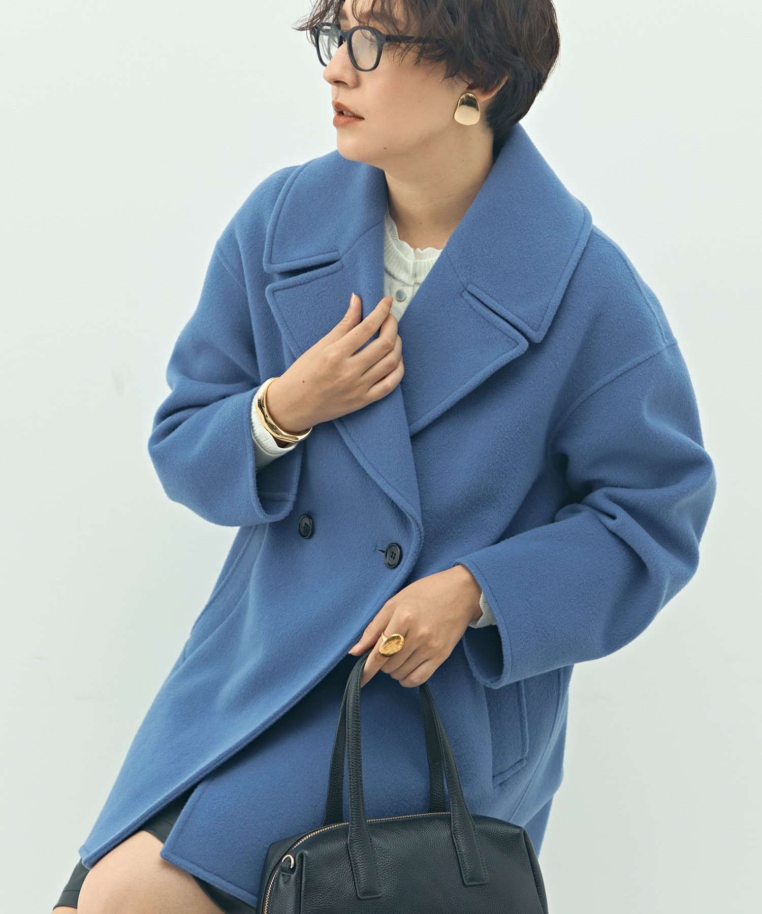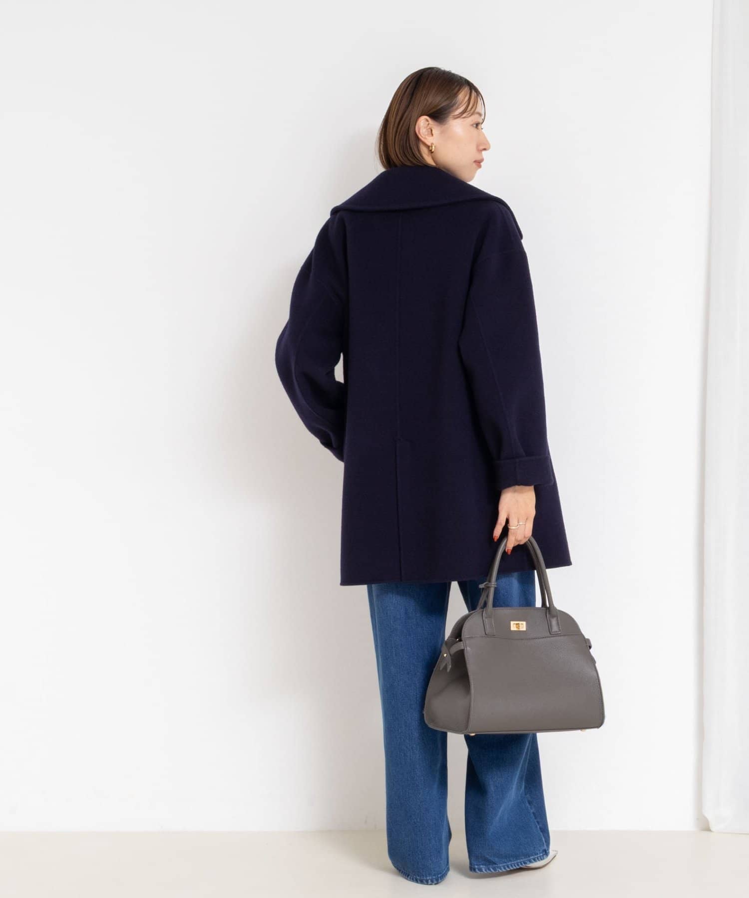 ・大き目の衿で顔周りにアクセントをつけて、小顔効果も◎