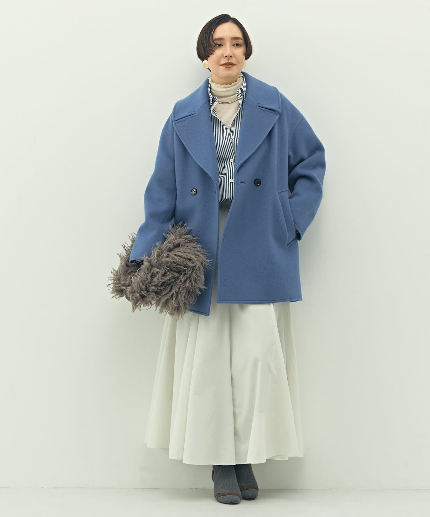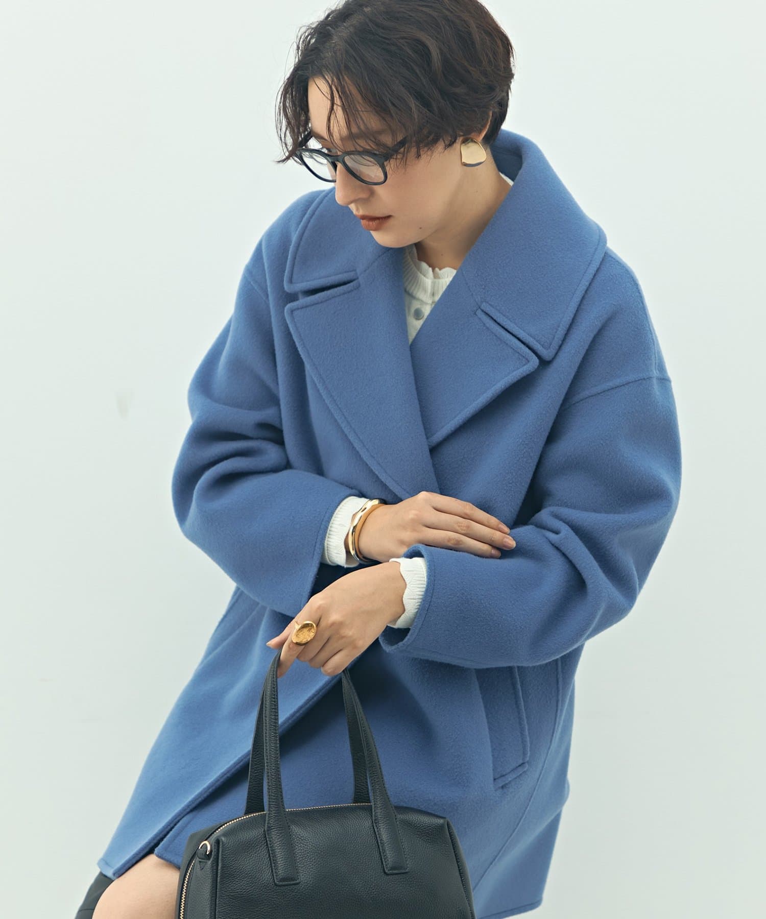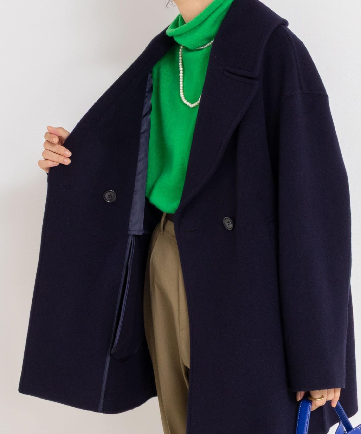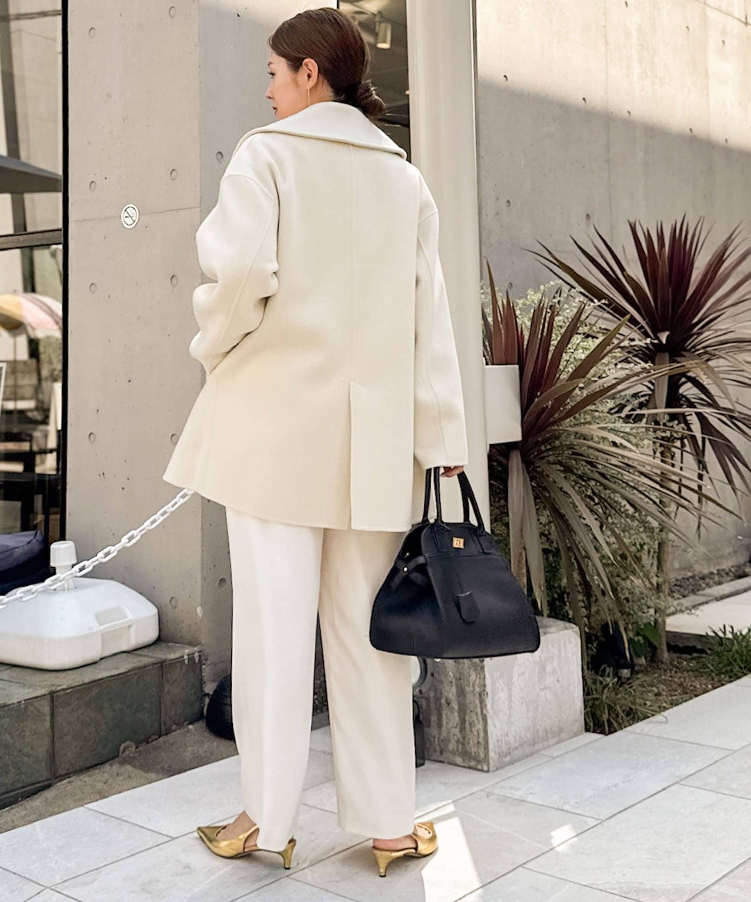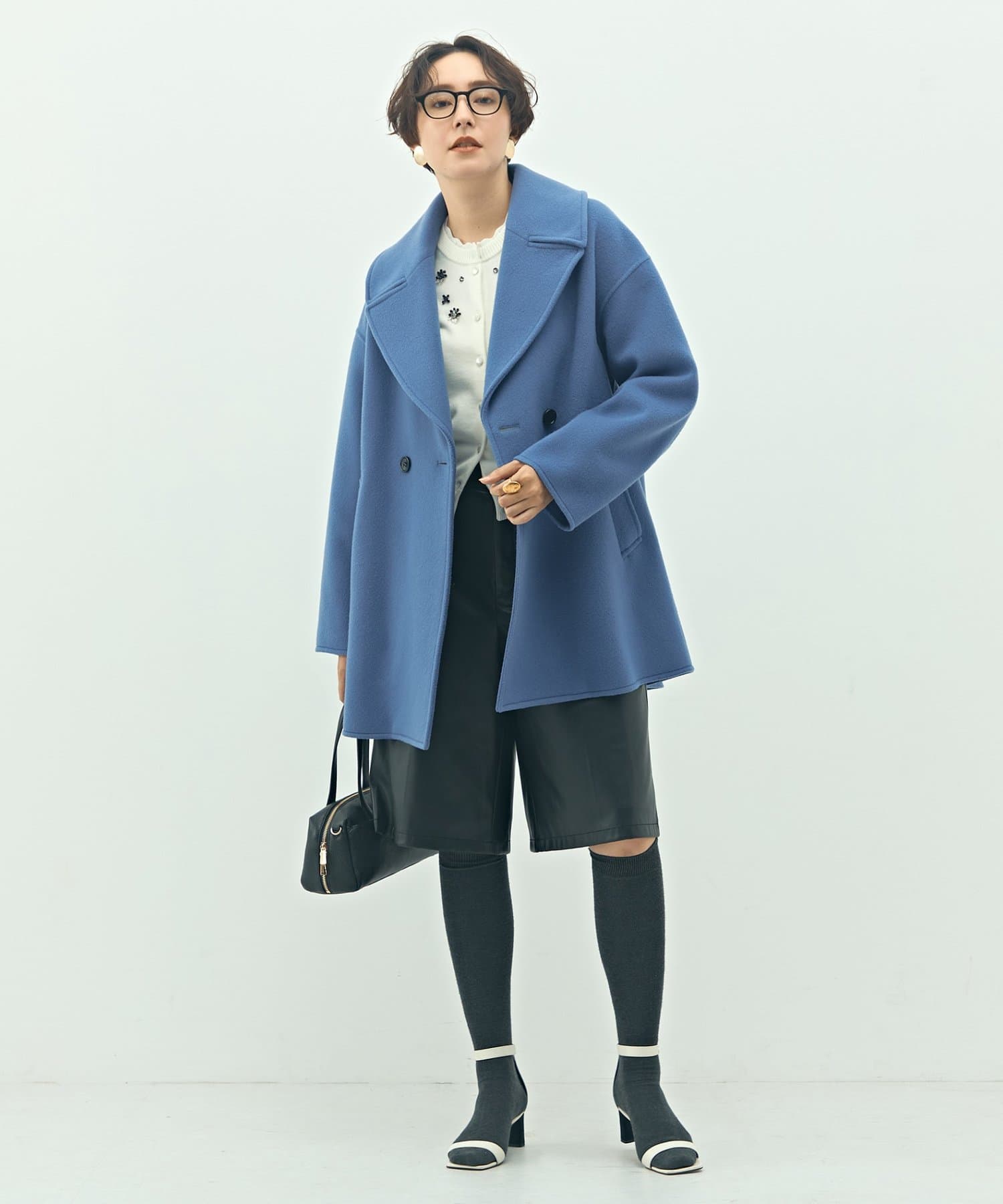 ・大き目の衿で顔周りにアクセントをつけて、小顔効果も◎
