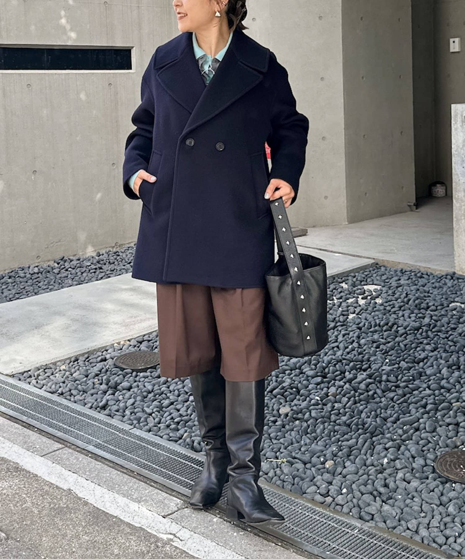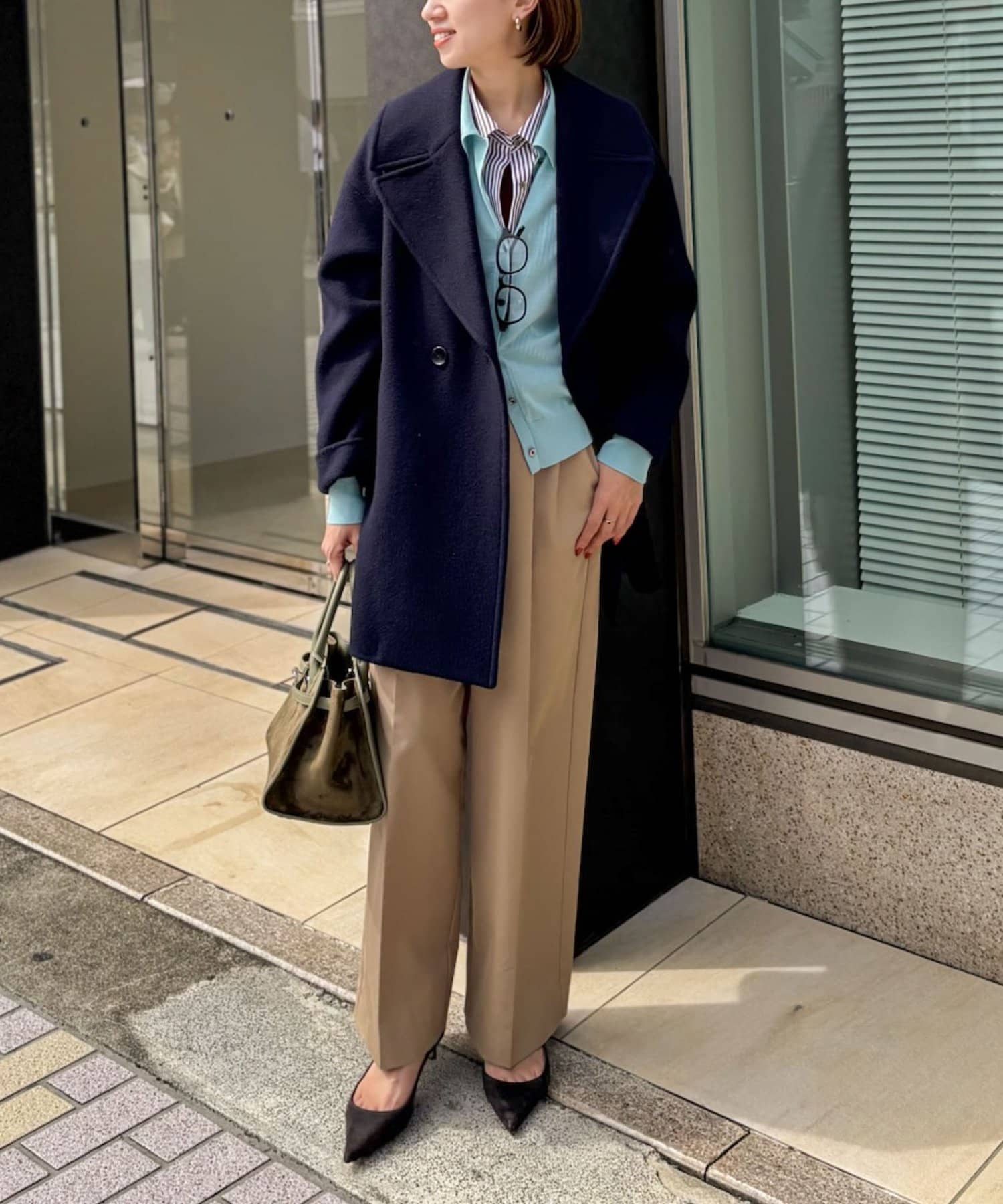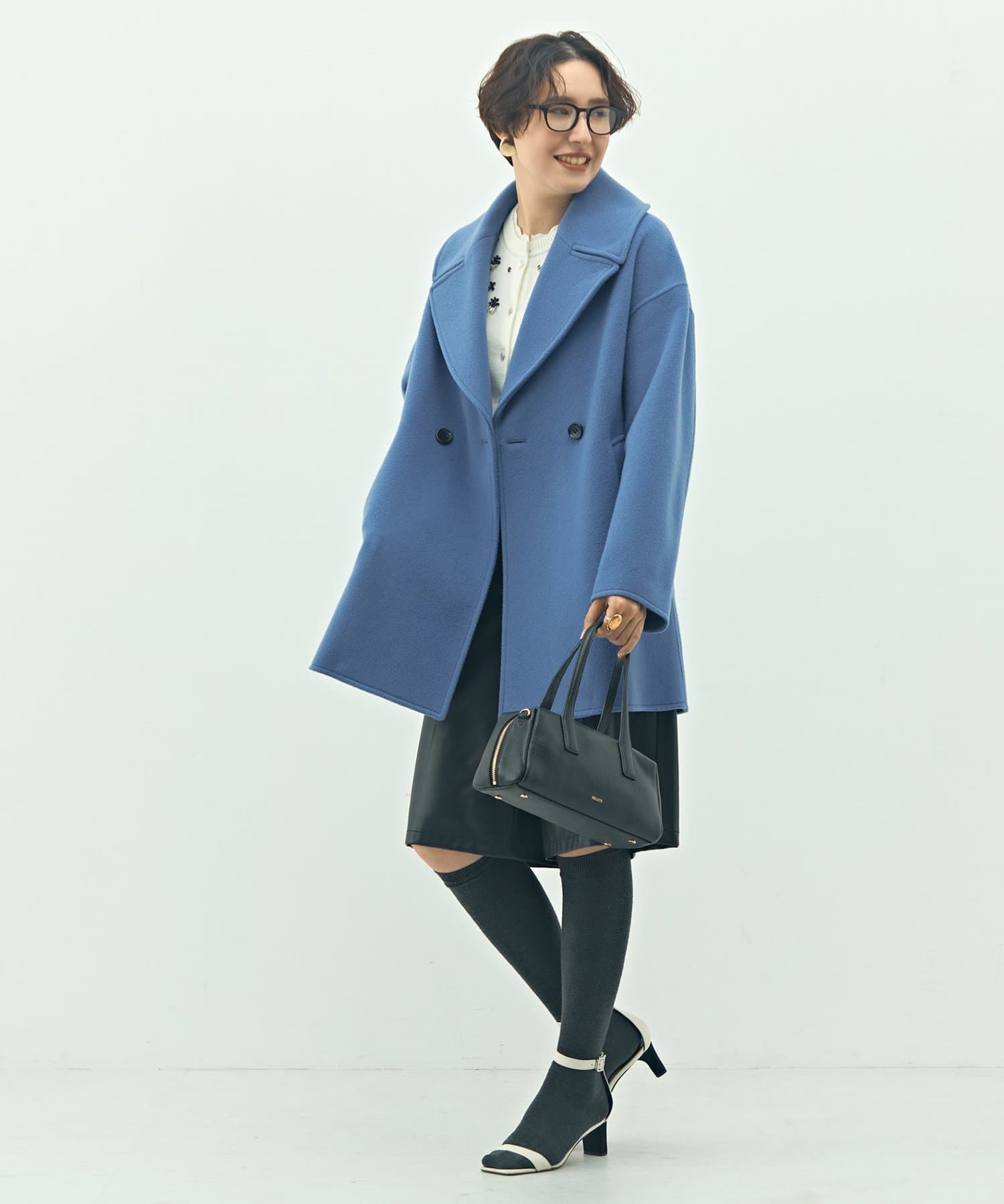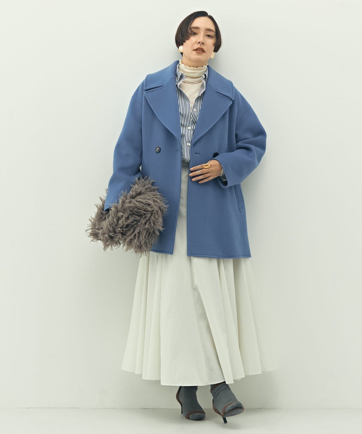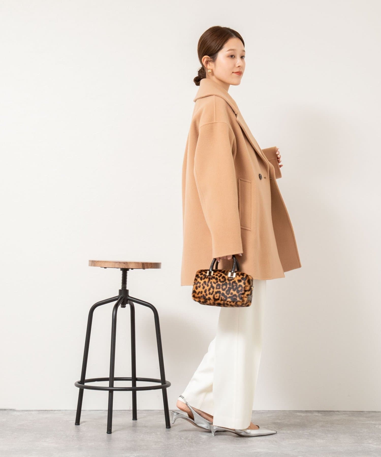 ・大き目の衿で顔周りにアクセントをつけて、小顔効果も◎