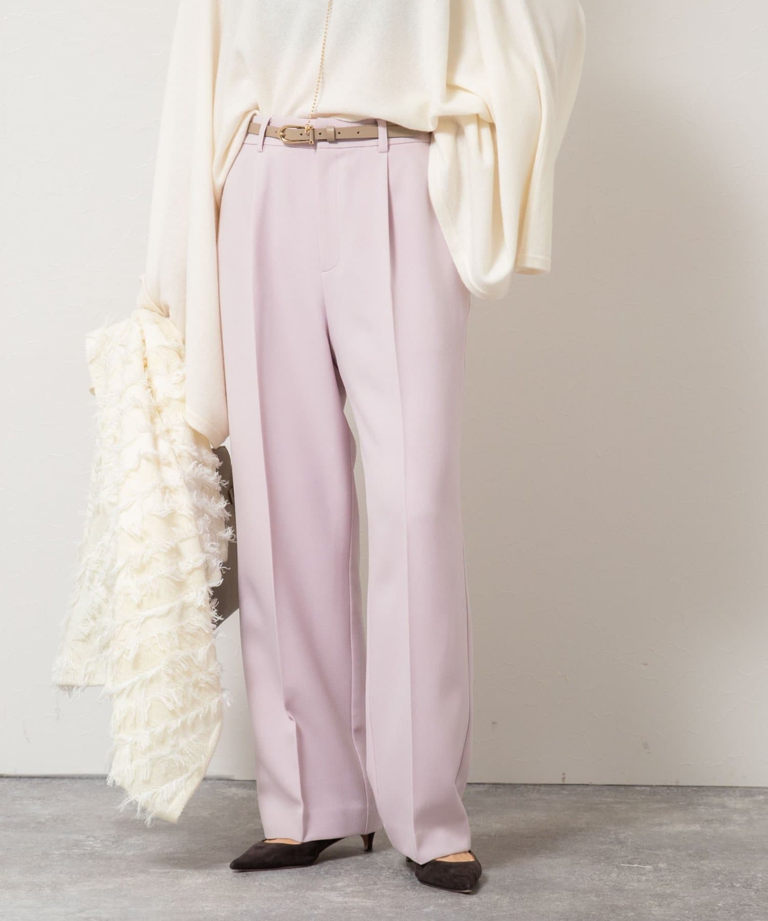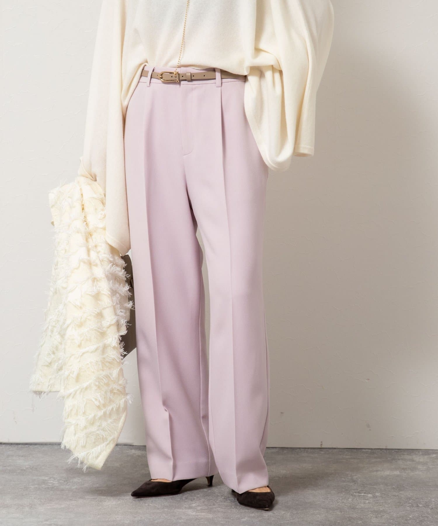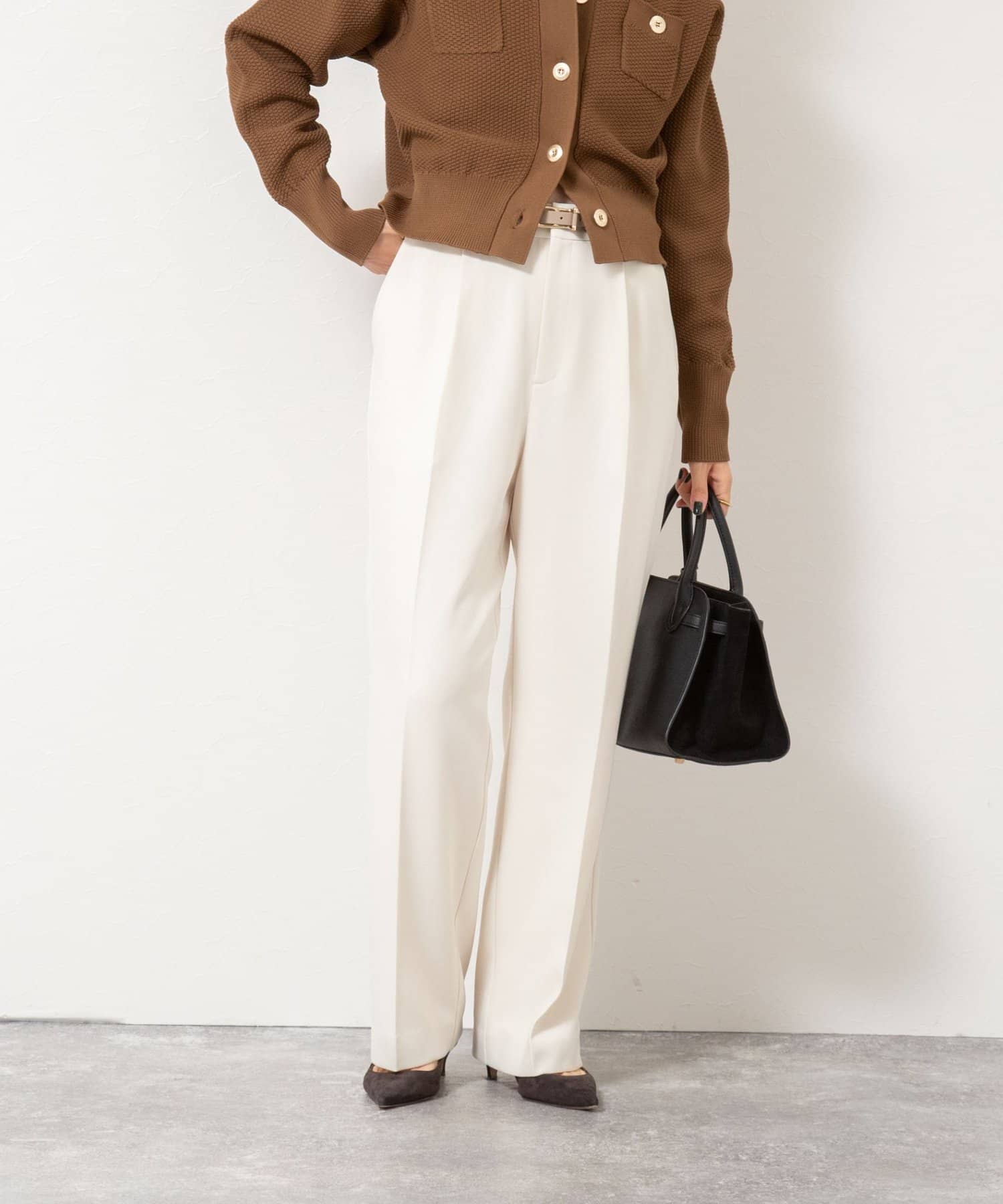 ・太すぎないシルエットで、オンオフ問わず着回しやすいワイドパンツ