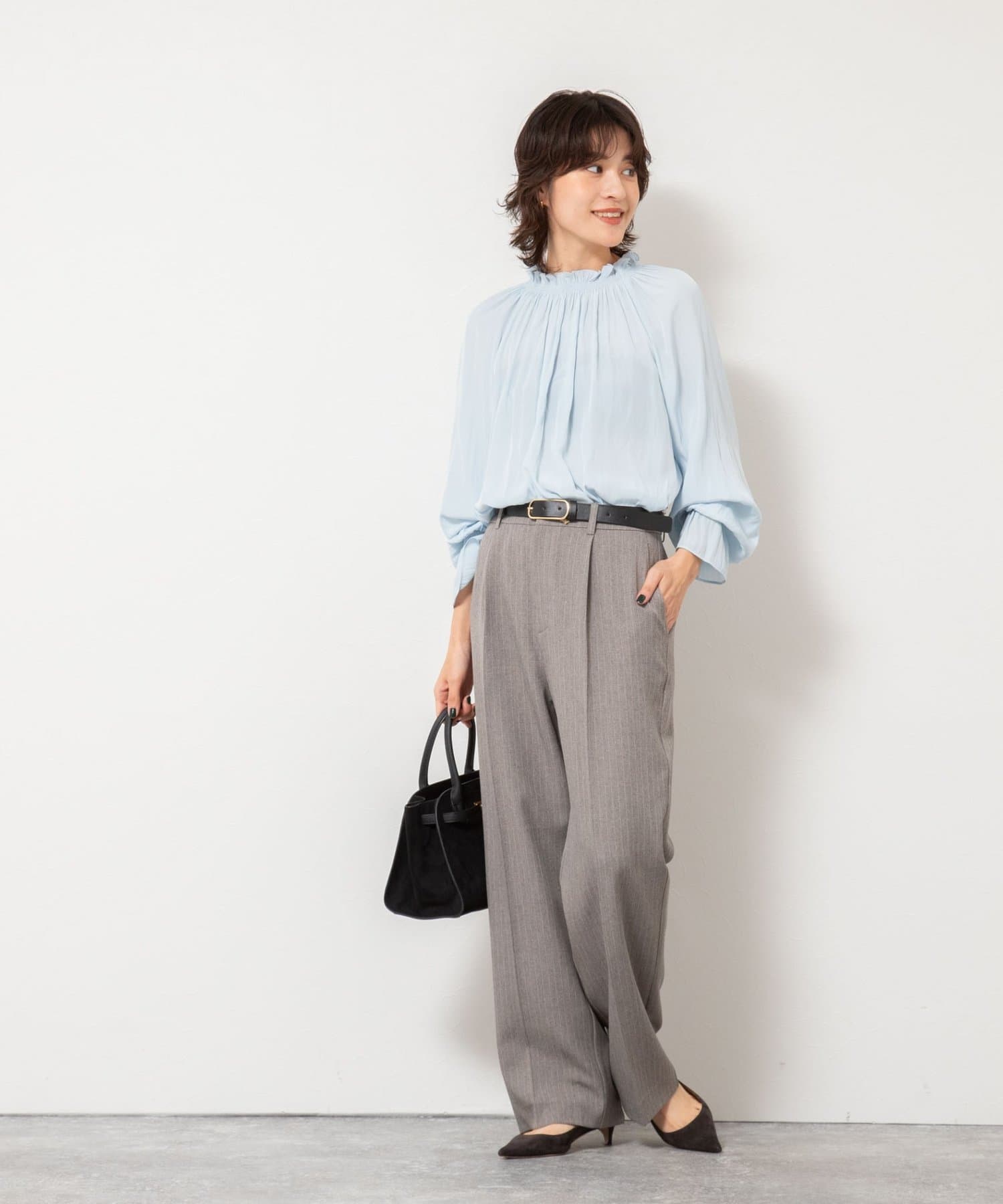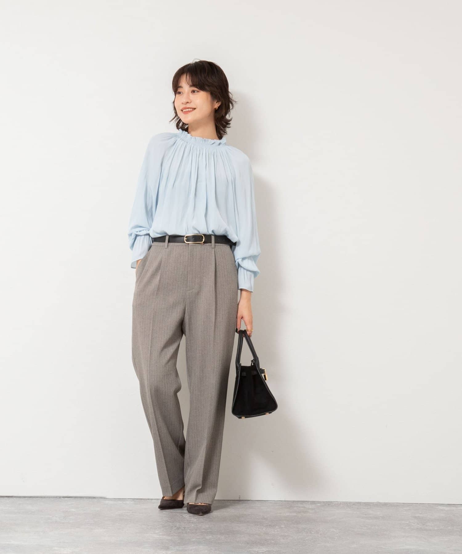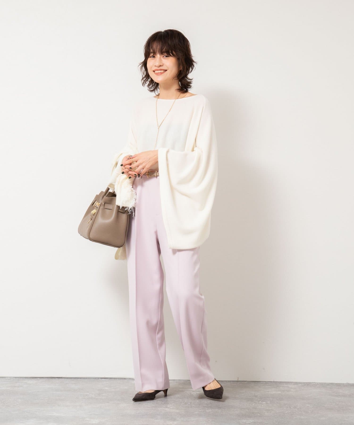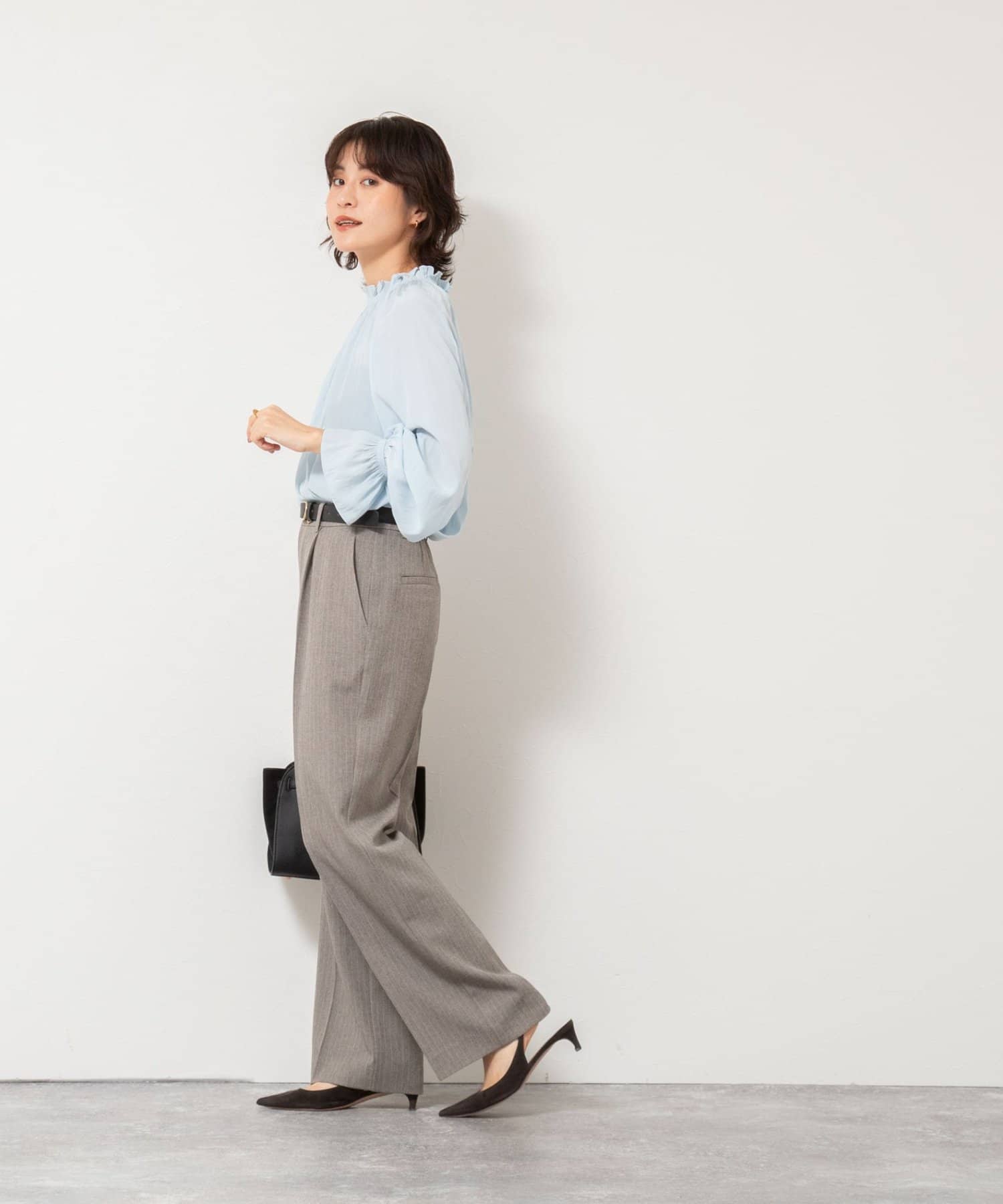 ・太すぎないシルエットで、オンオフ問わず着回しやすいワイドパンツ