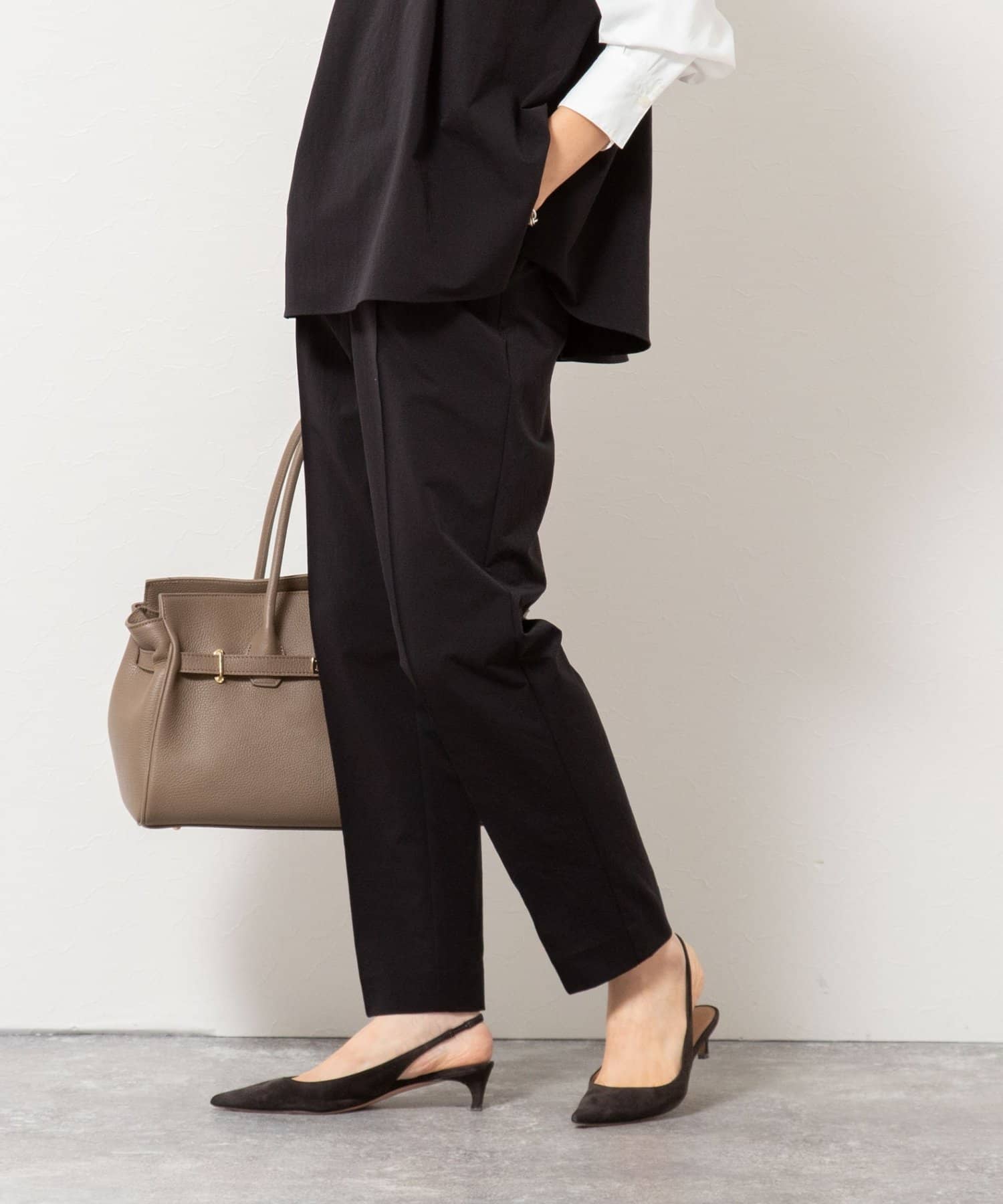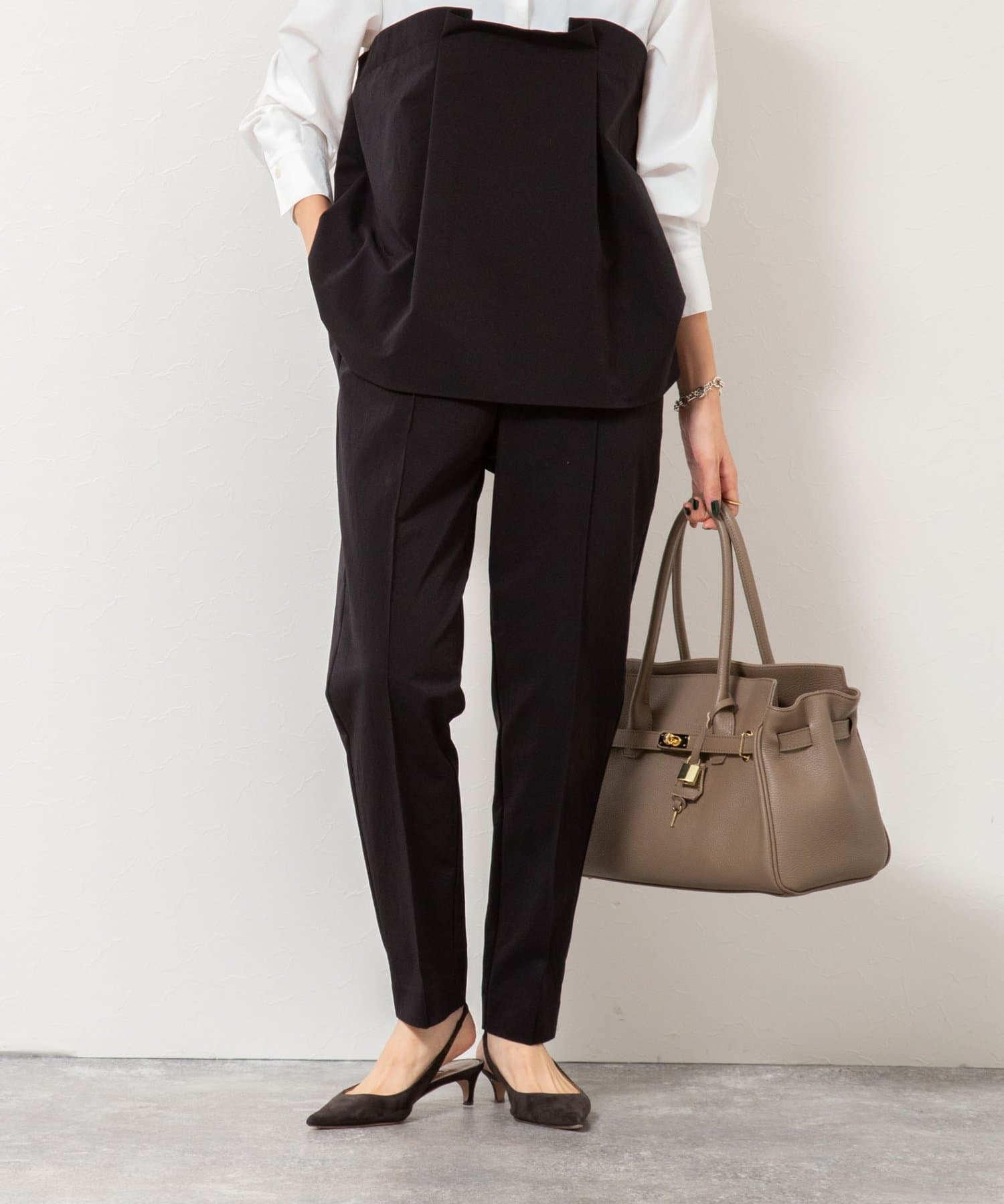・ウエスト周りをスッキリとさせたシンプルなスリムパンツ