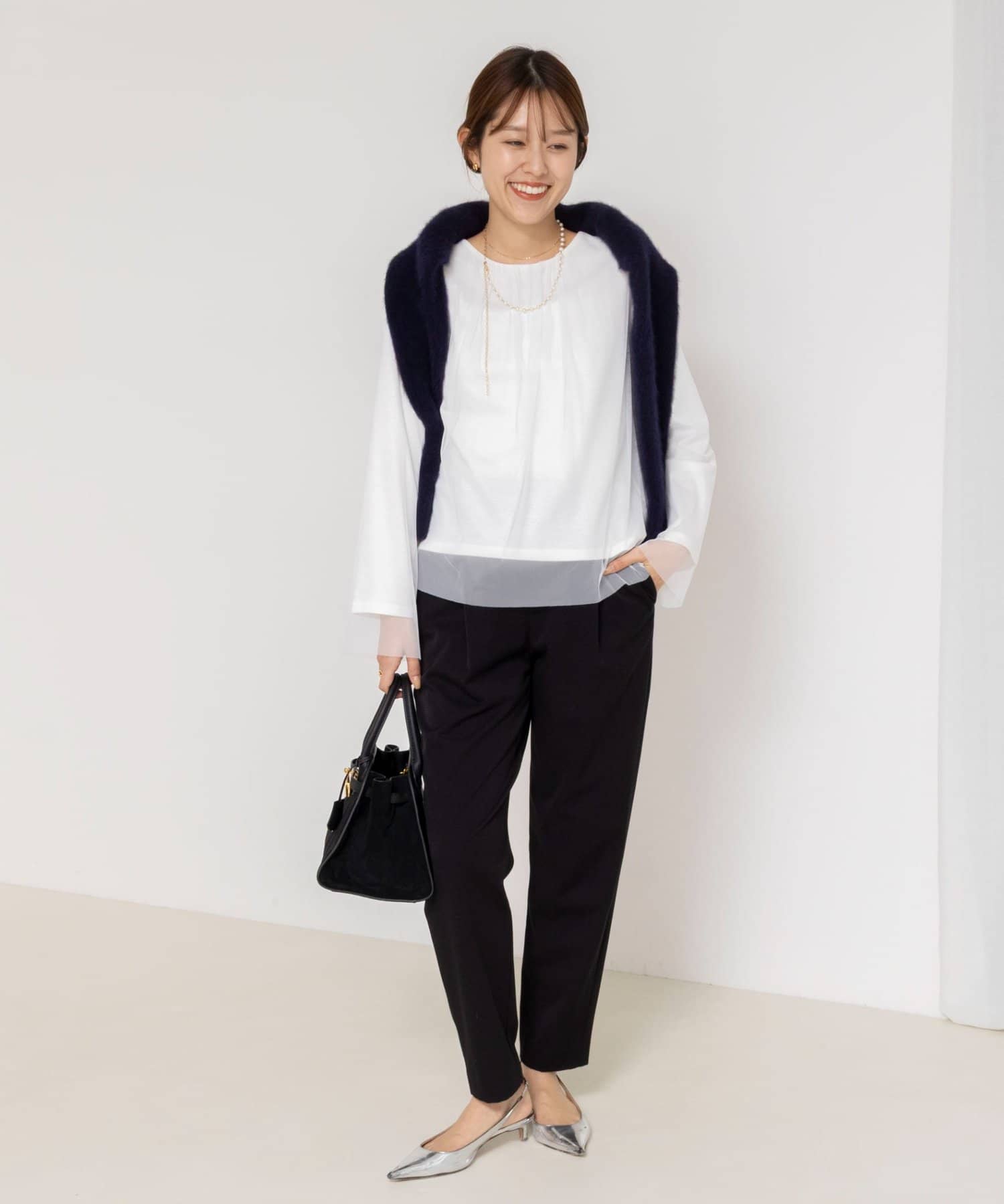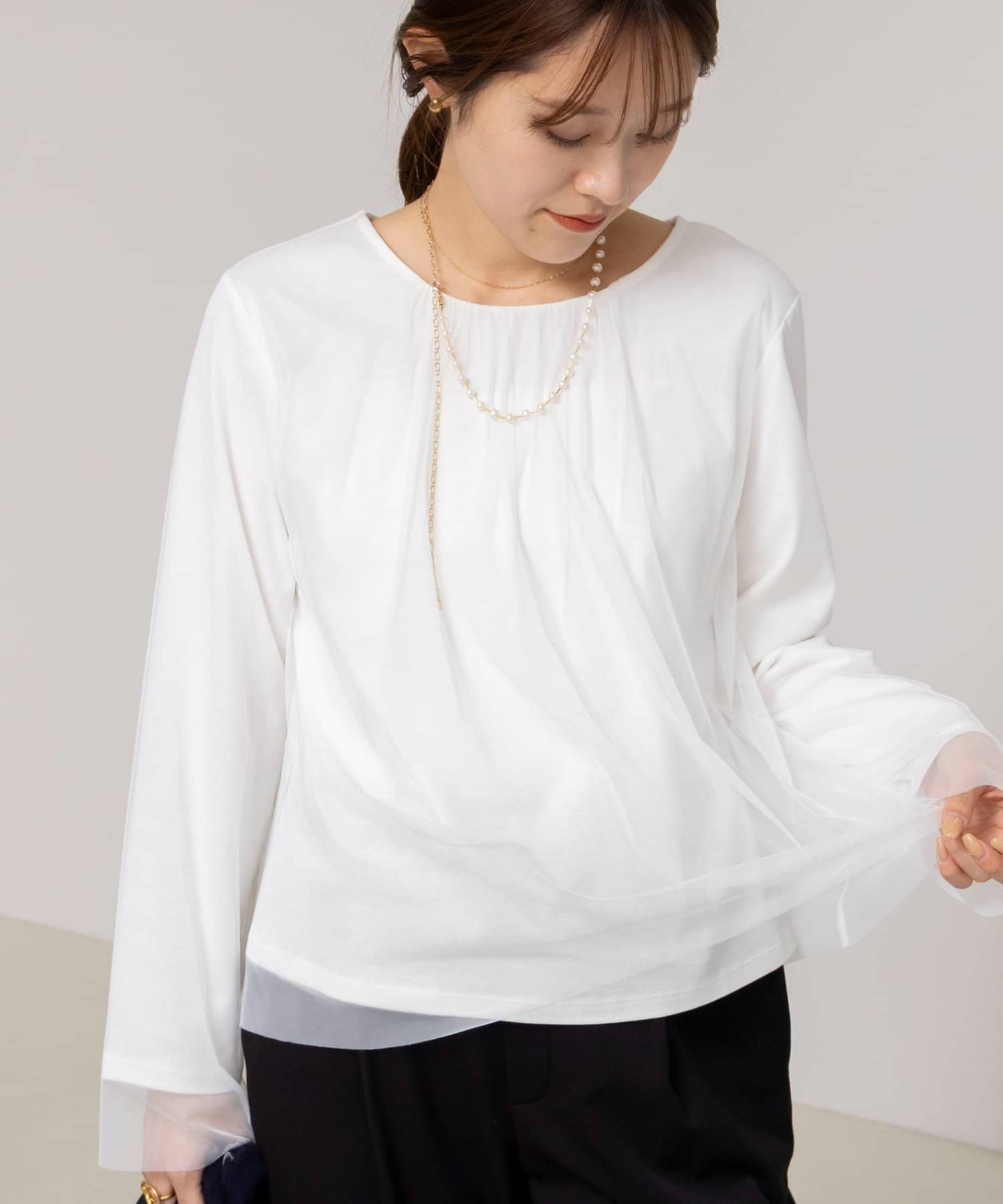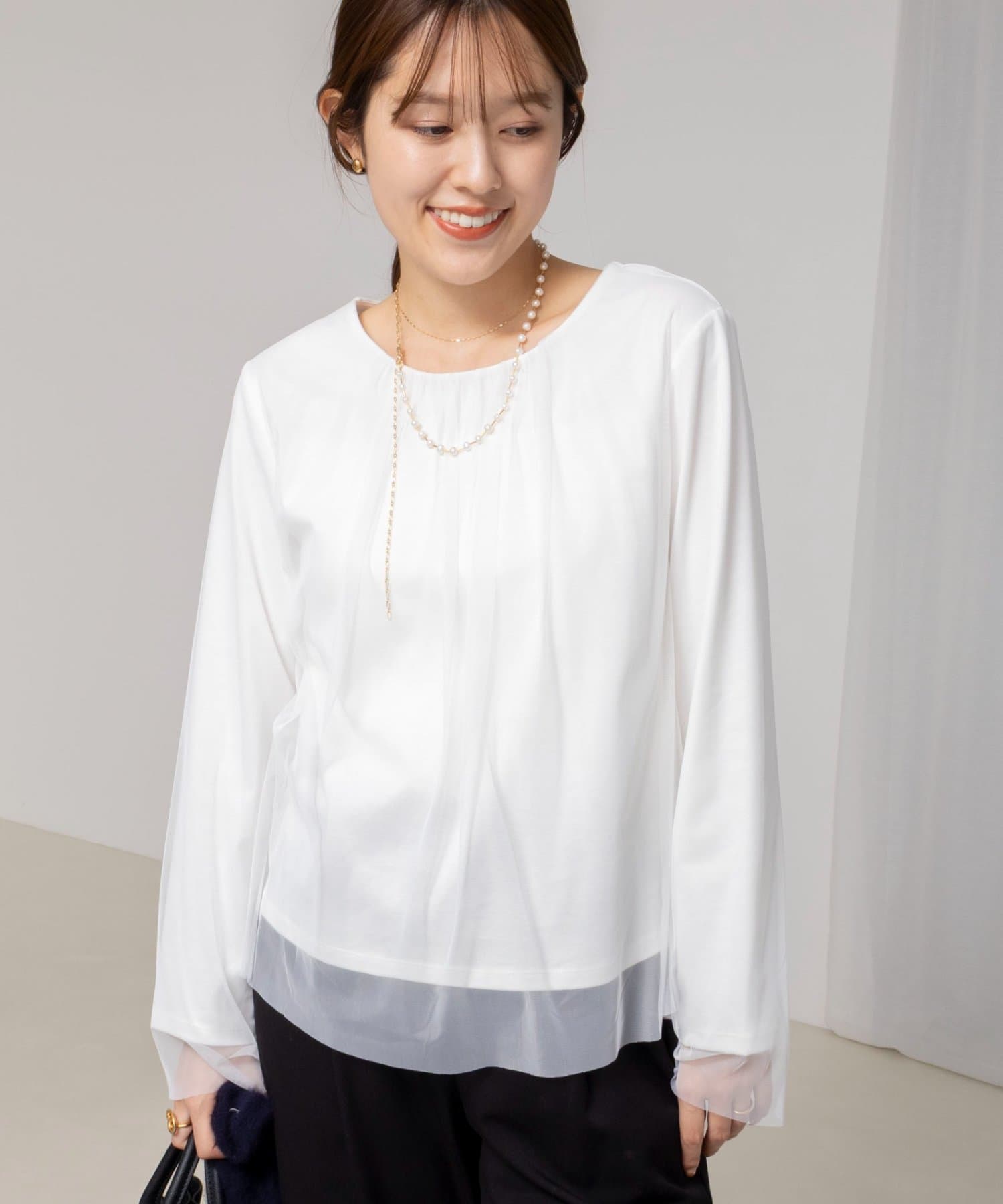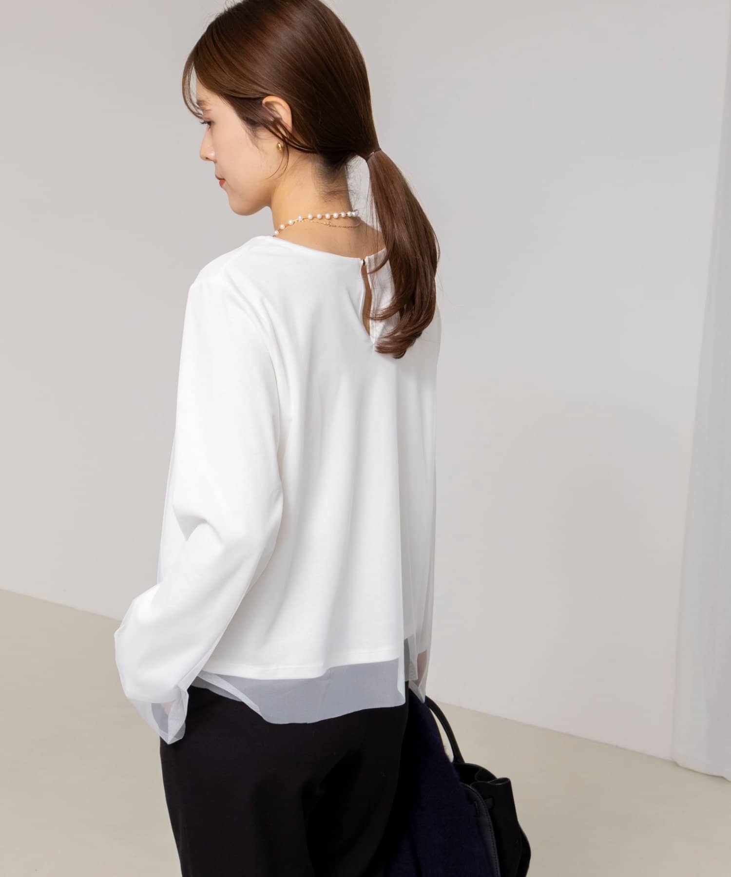 ウォッシャブルチュールレイヤード2WAYブラウス