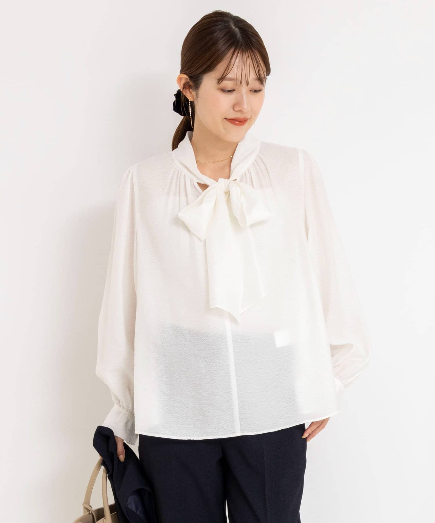 ウォッシャブルシアーボウタイ2WAYブラウス