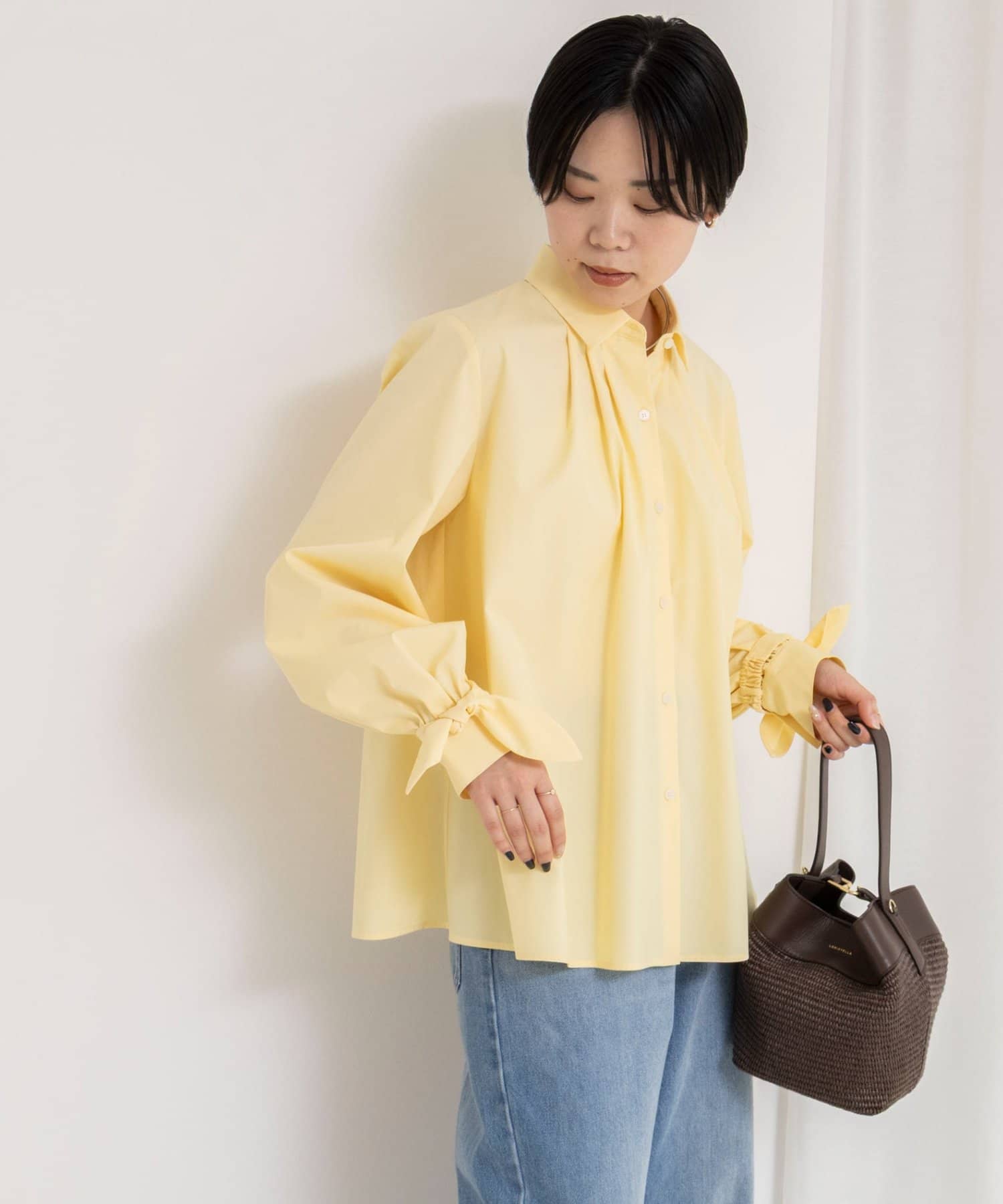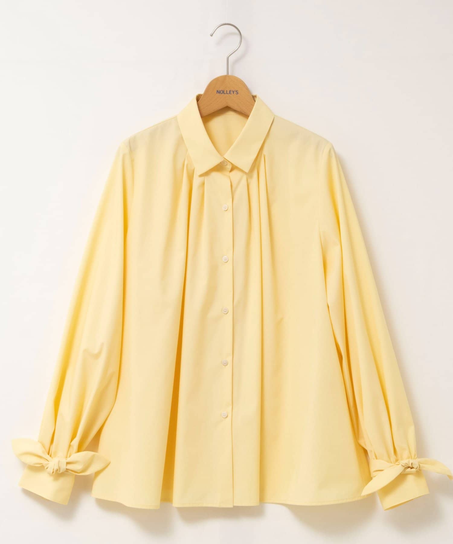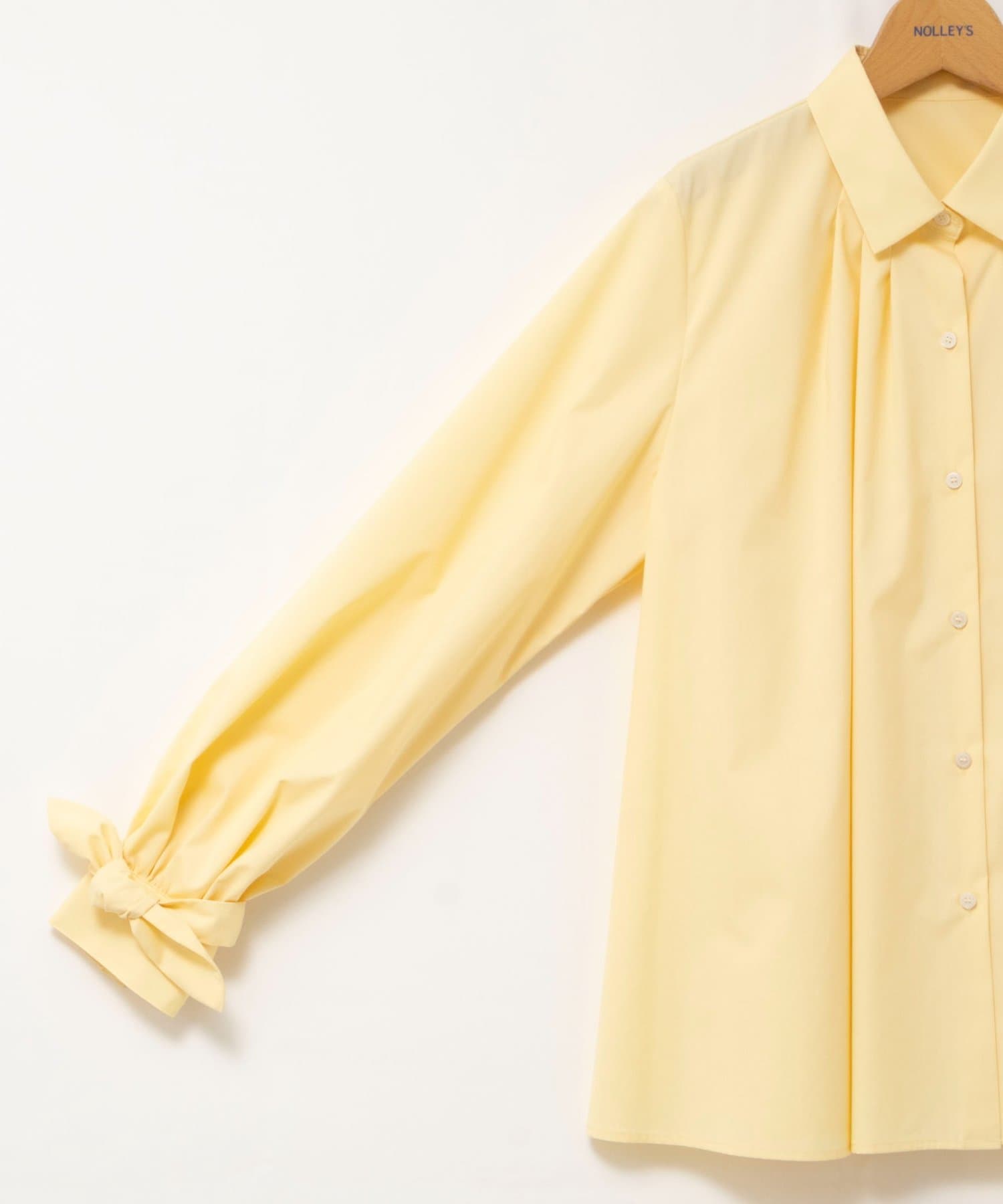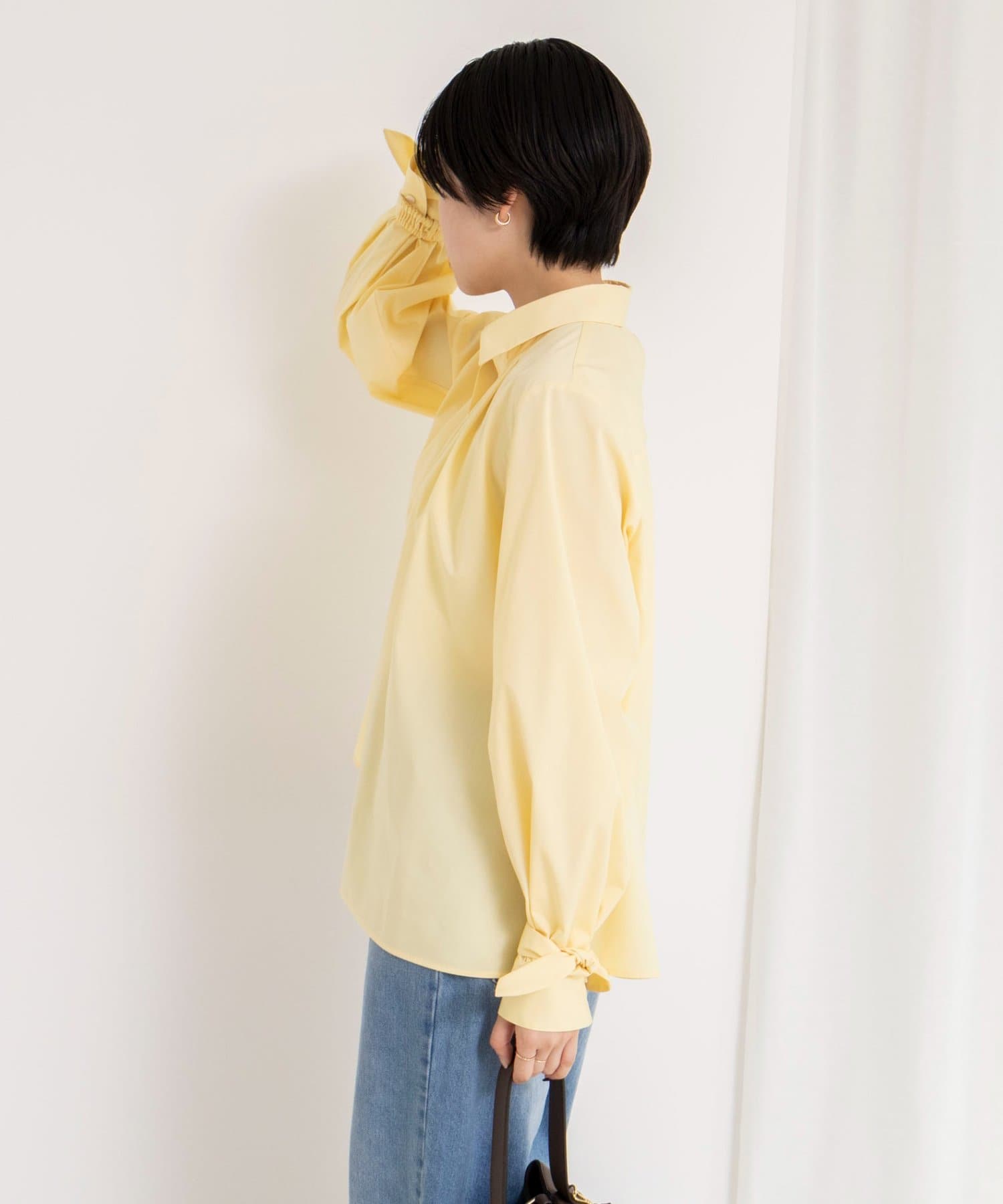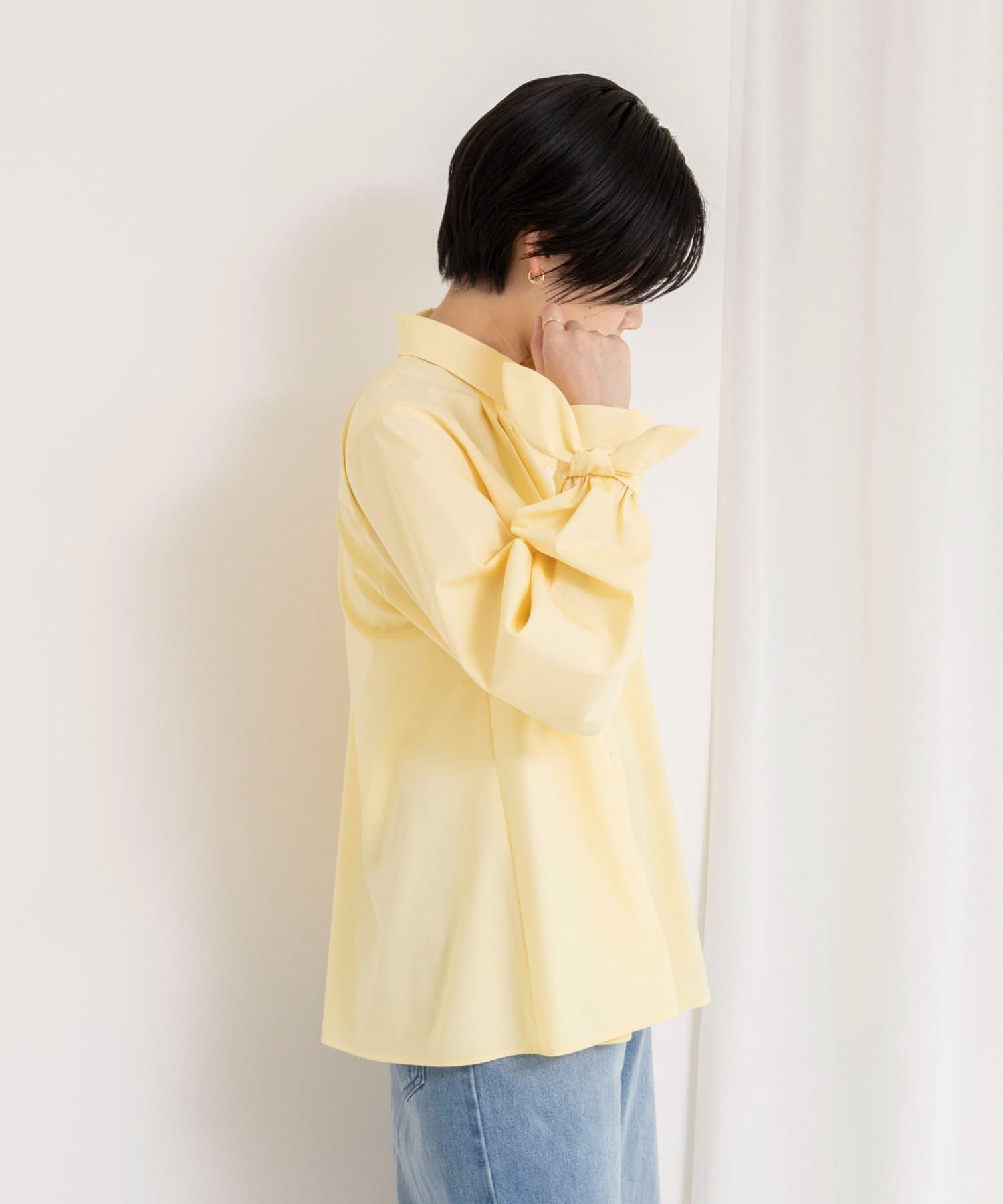 ウォッシャブル袖リボン付きボリュームシャツ