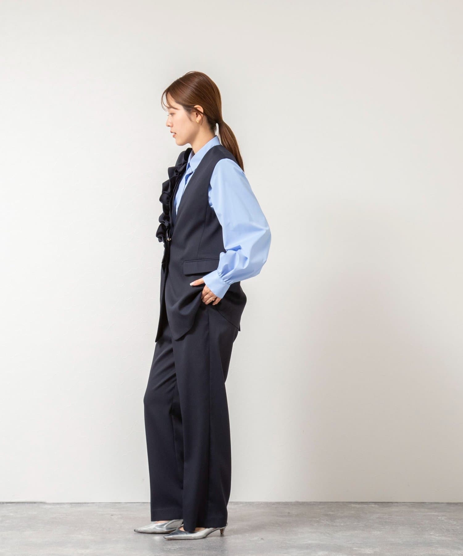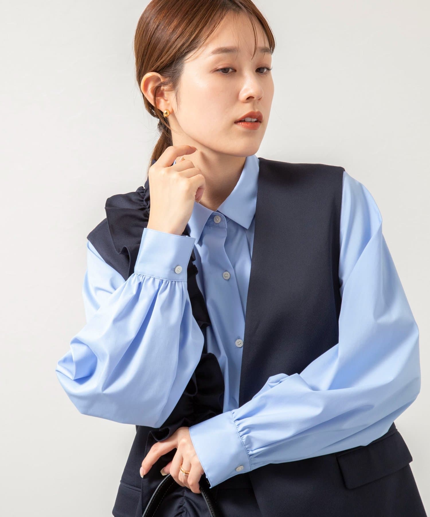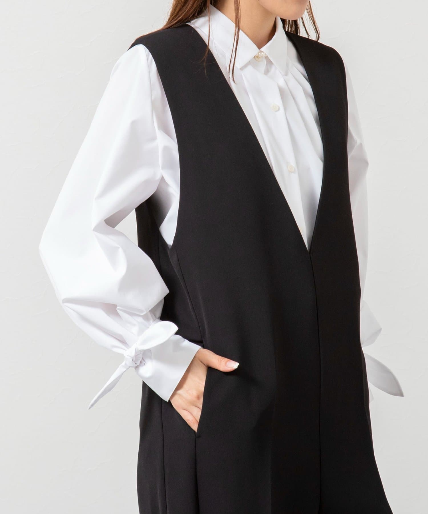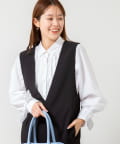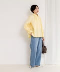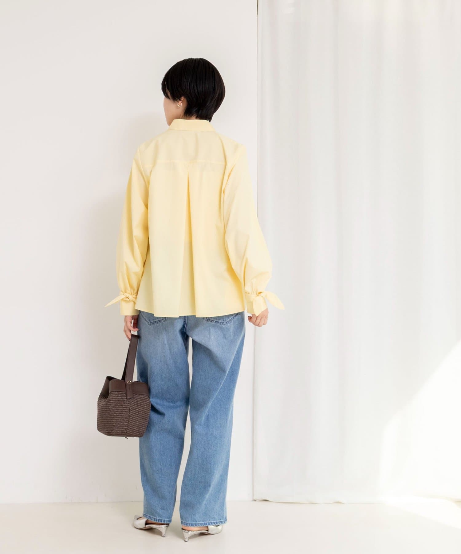 ウォッシャブル袖リボン付きボリュームシャツ