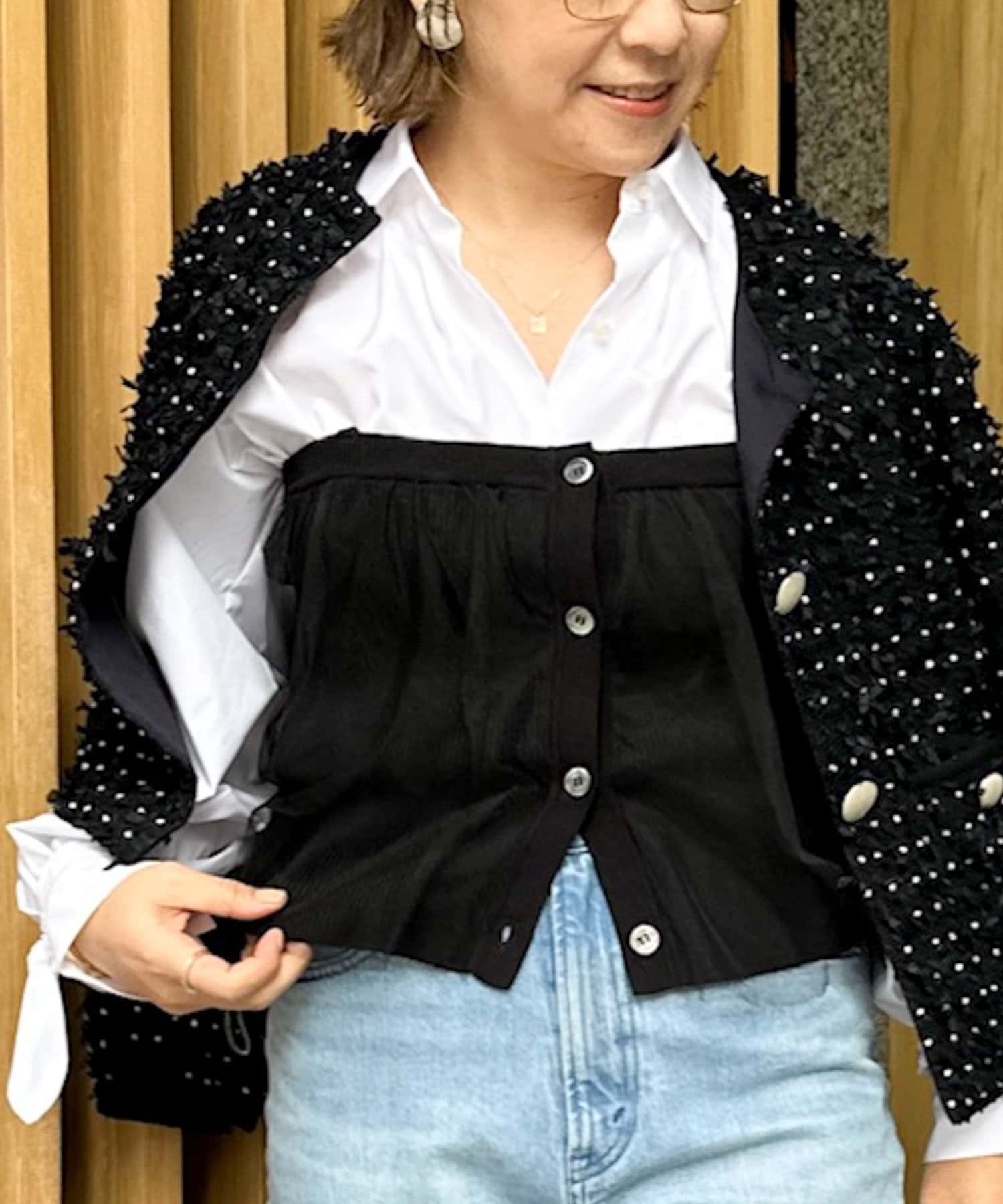・ショート丈トップスやビスチェなどを合わせたレイヤードコーデもおすすめ