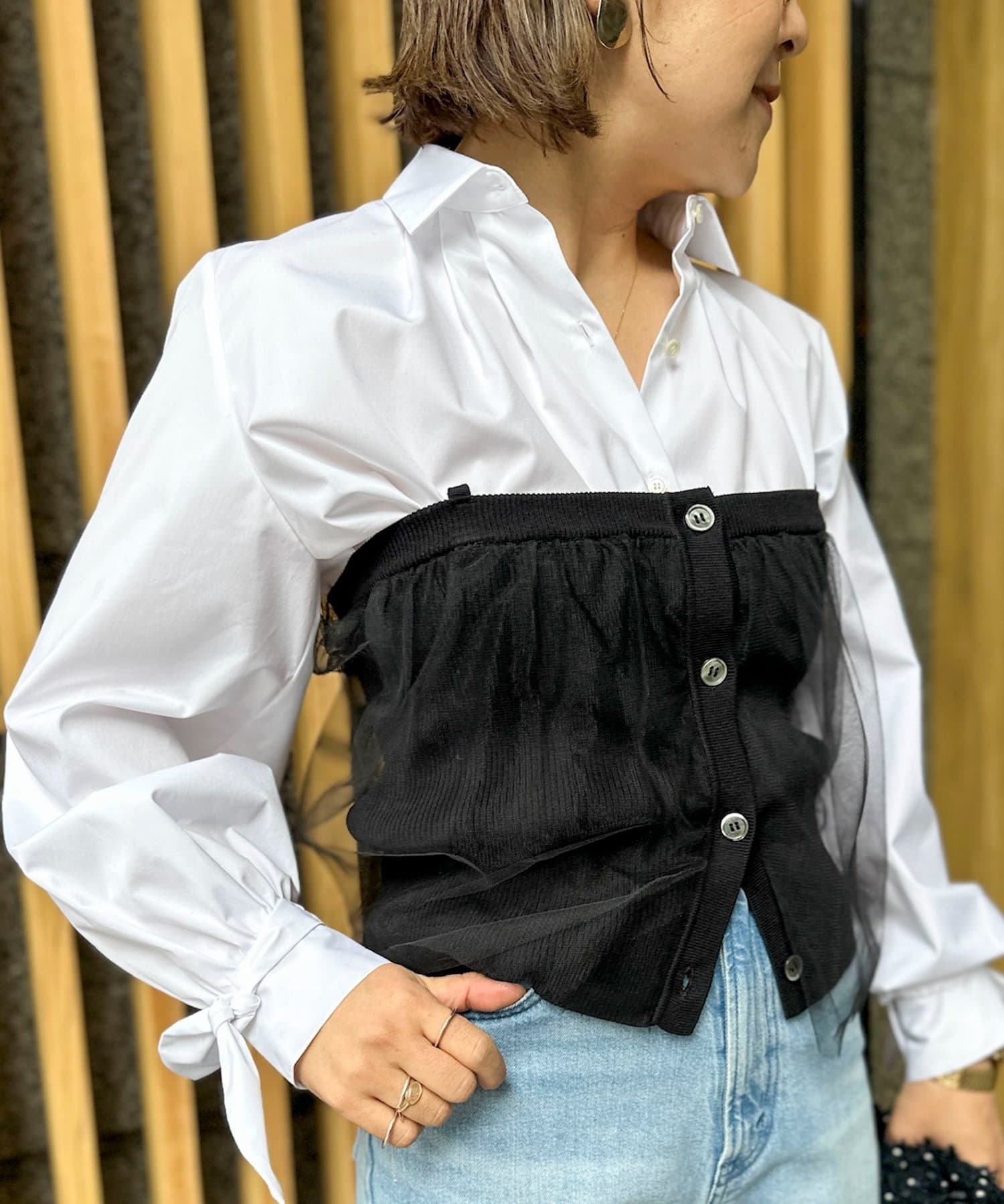 ・袖に取り外しの出来るリボンがついたシャツ
