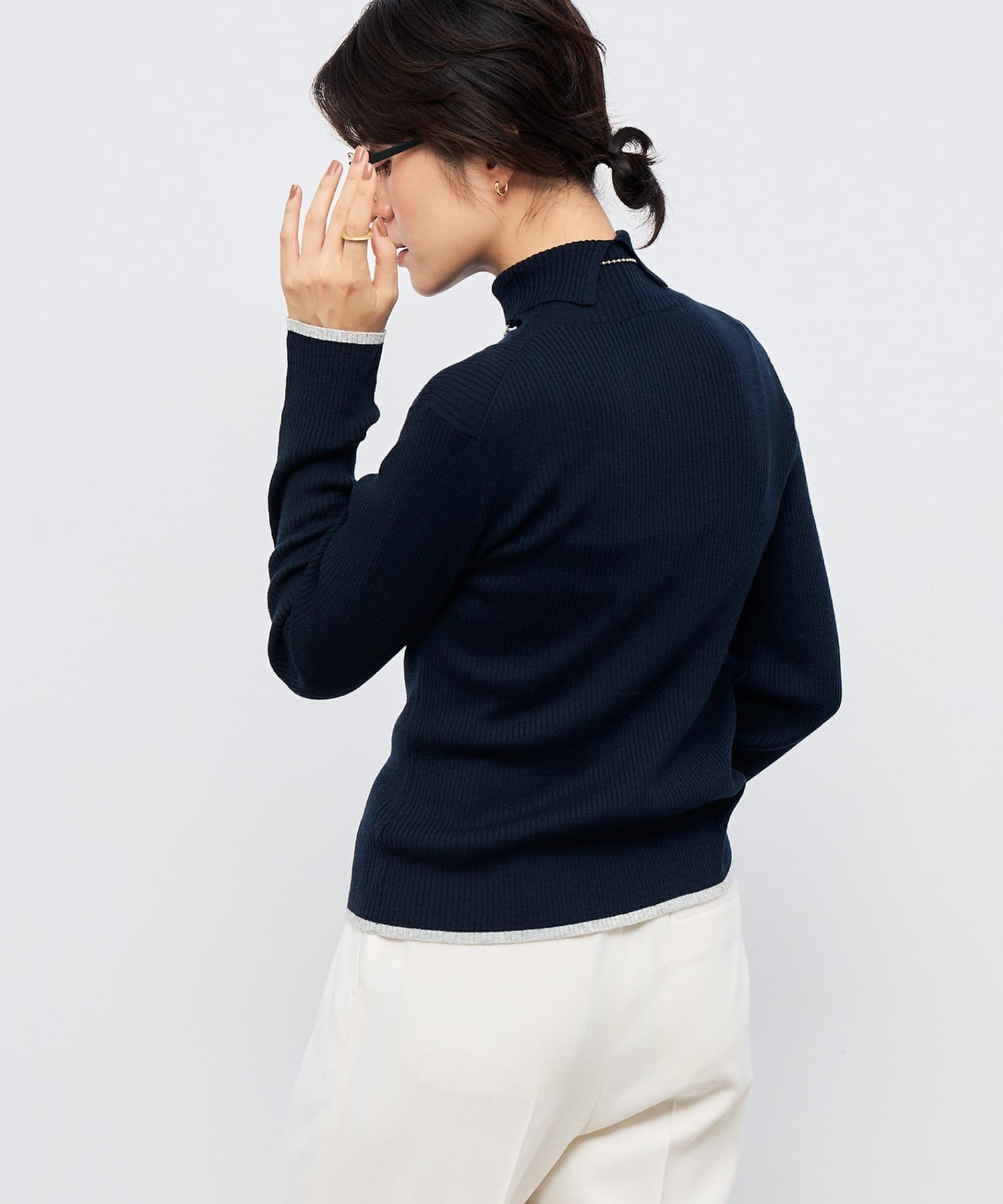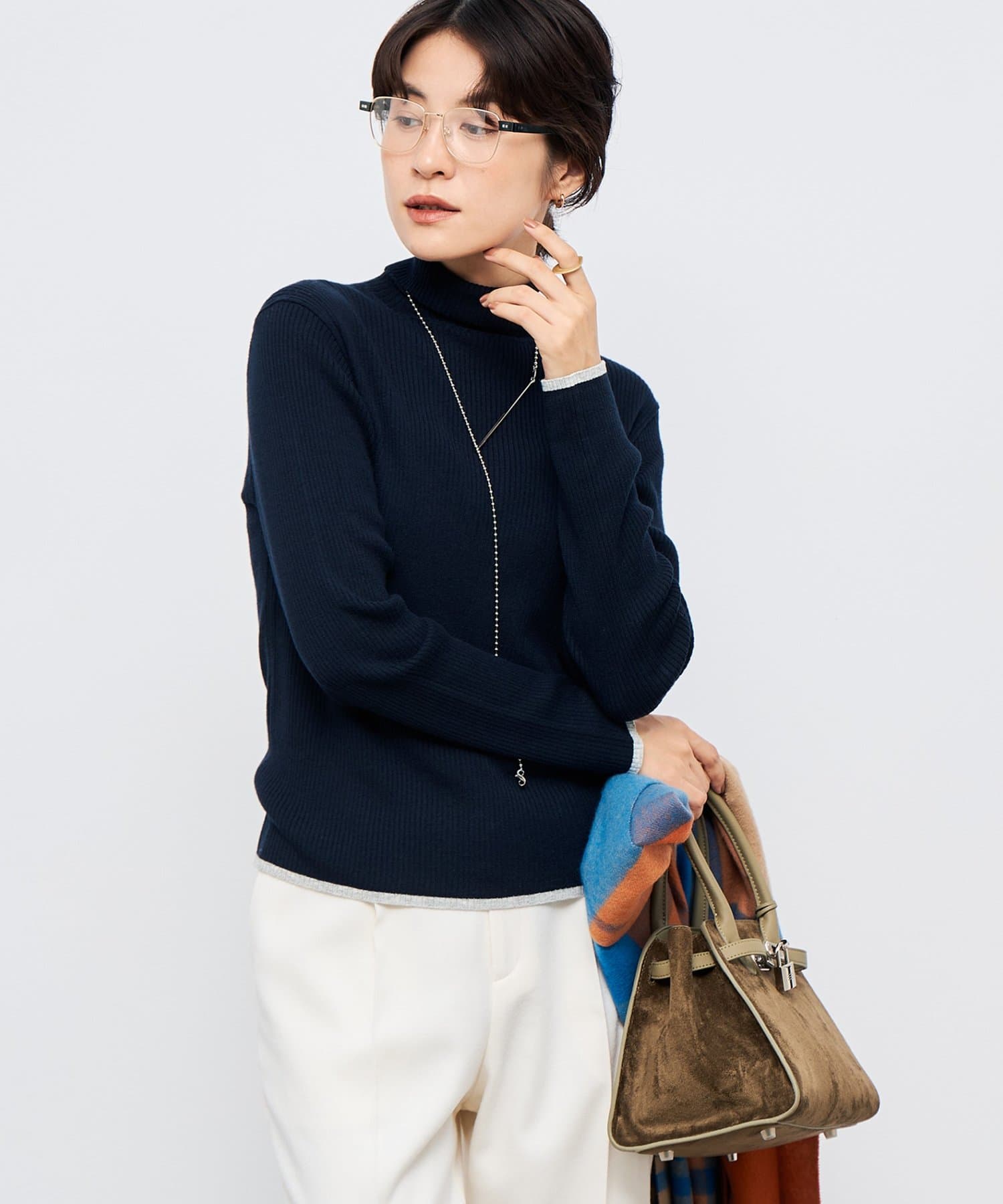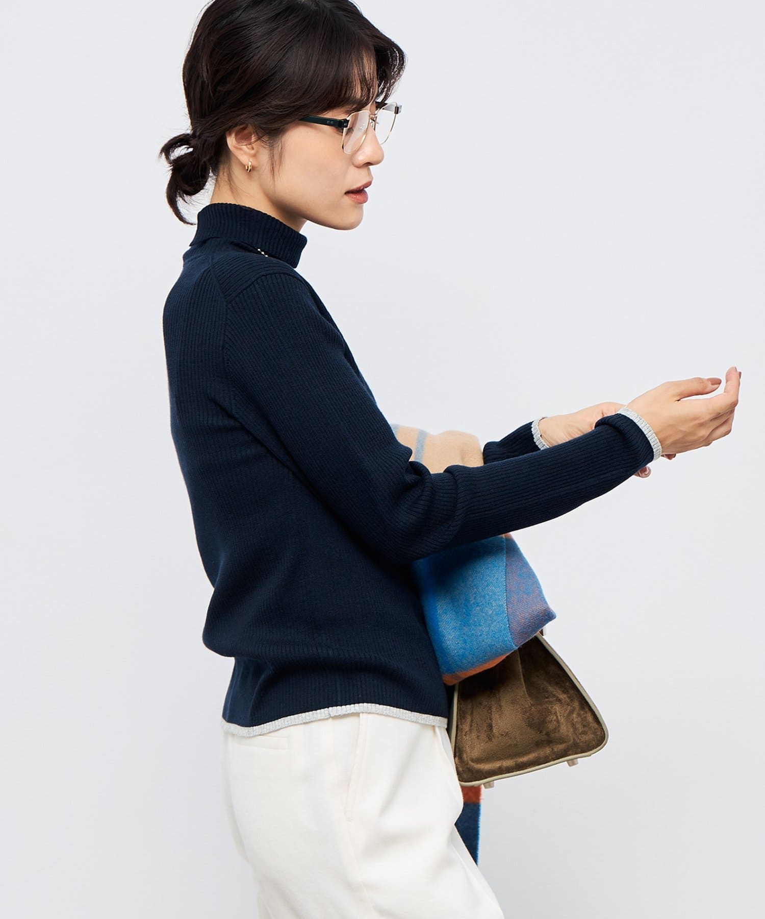 ・繊細な編み目が美しい、16ゲージのハイゲージニットで仕立てたタートルネック