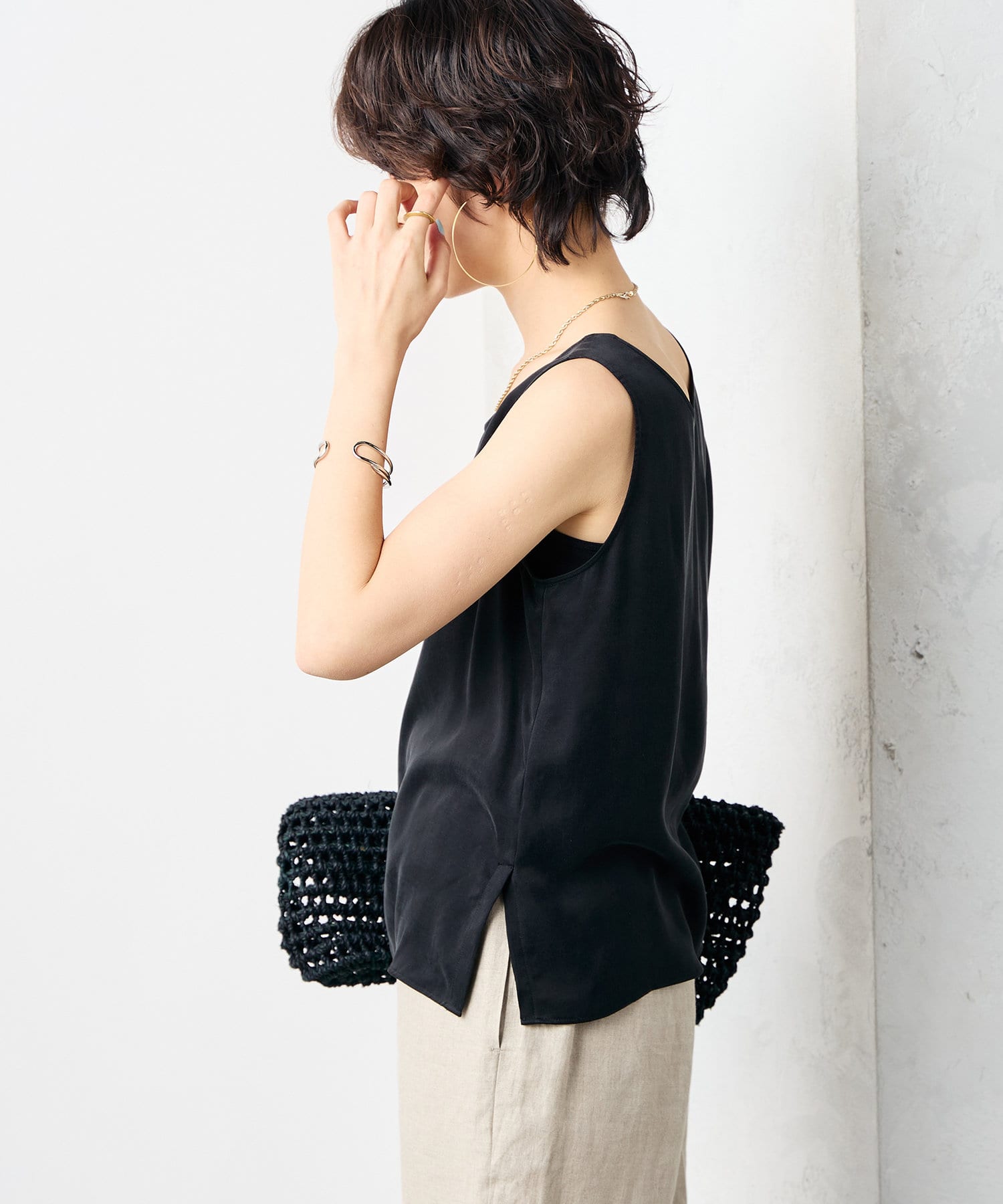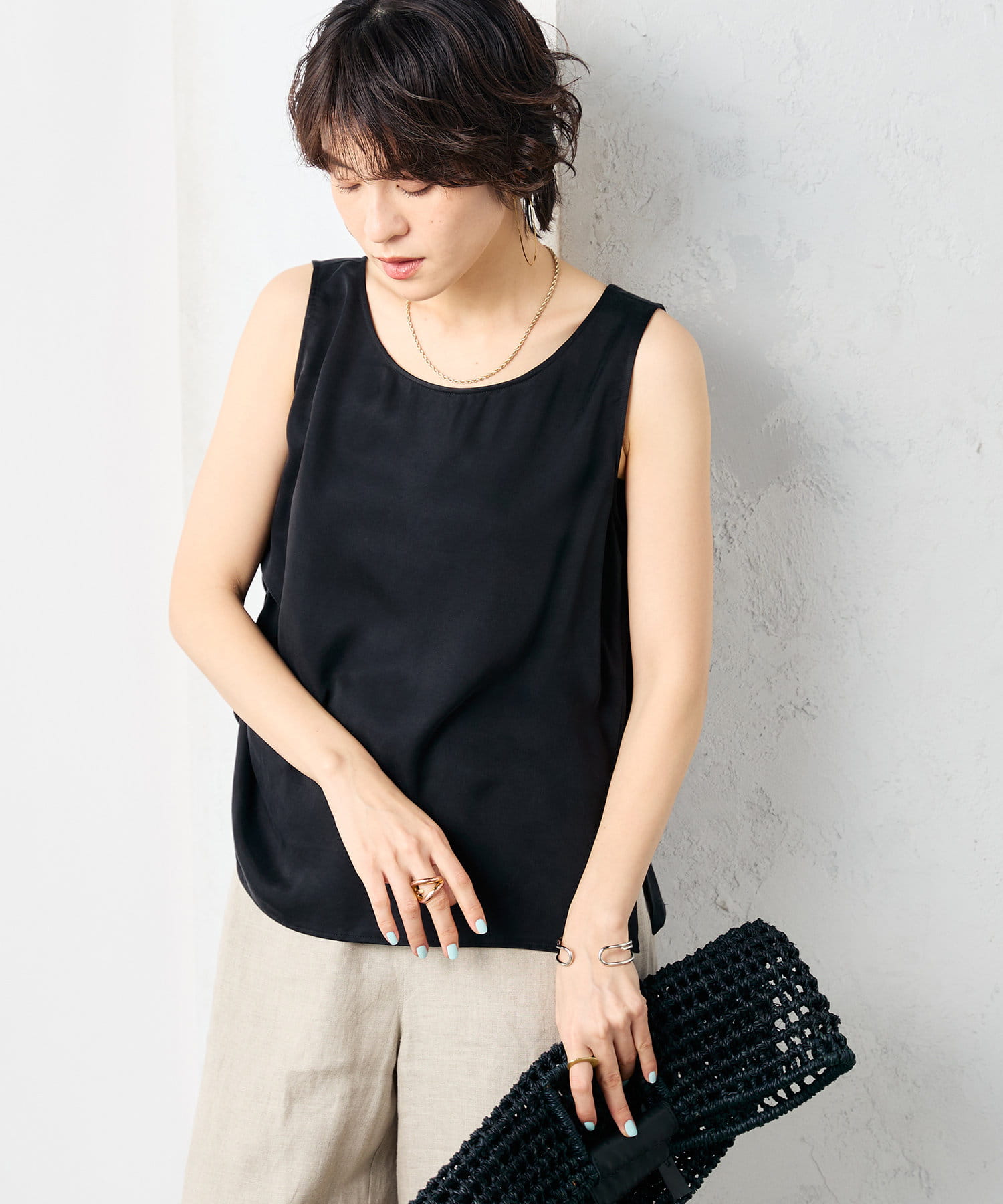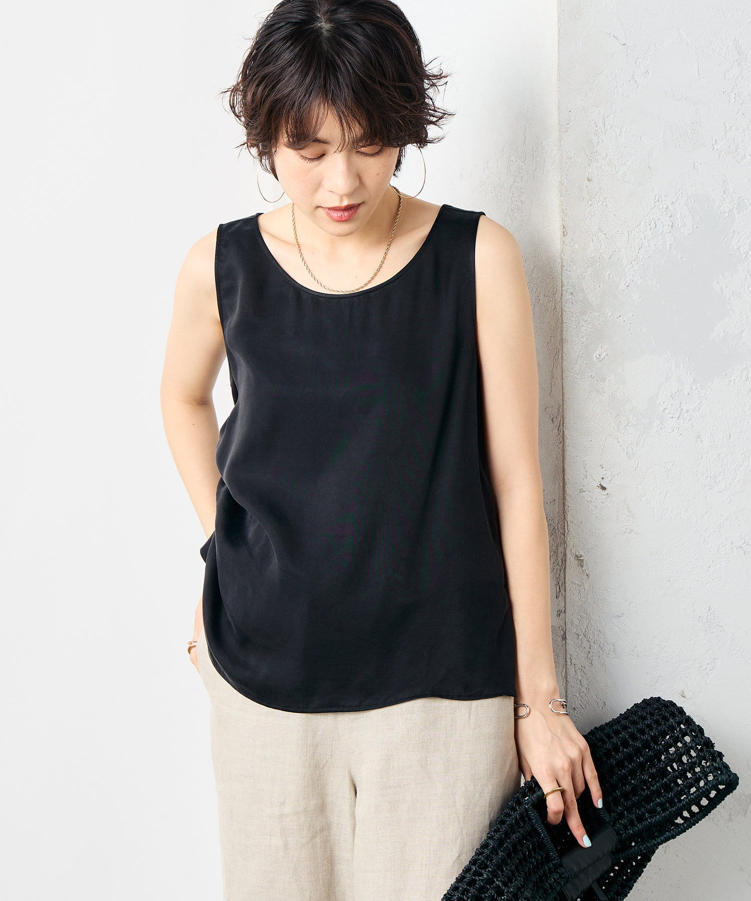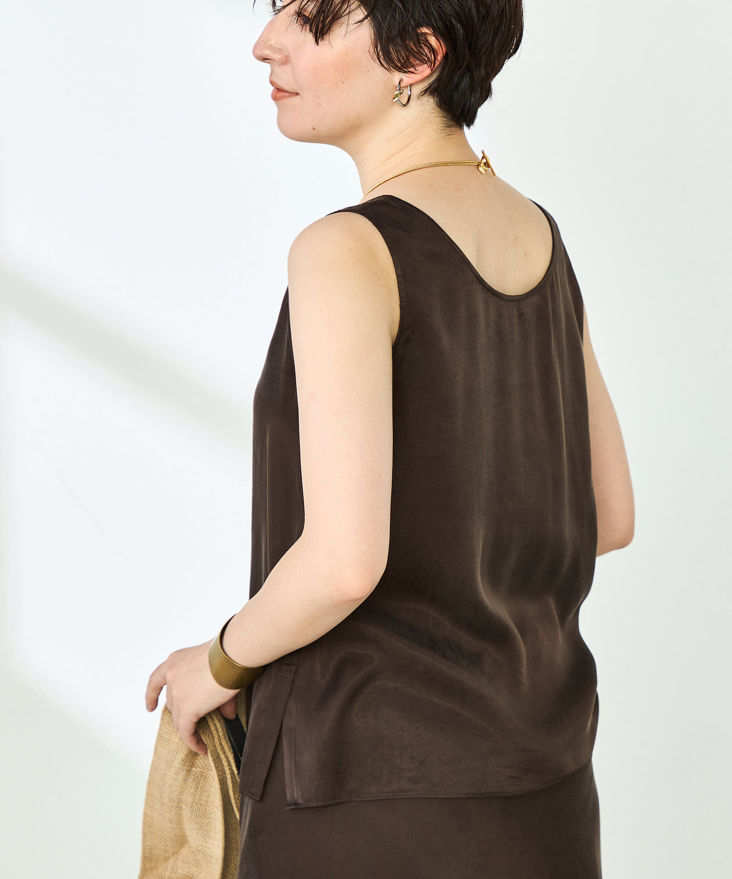 ・人気素材「キュプラレーヨンフィブリルサテン」を使用したタンクトップ