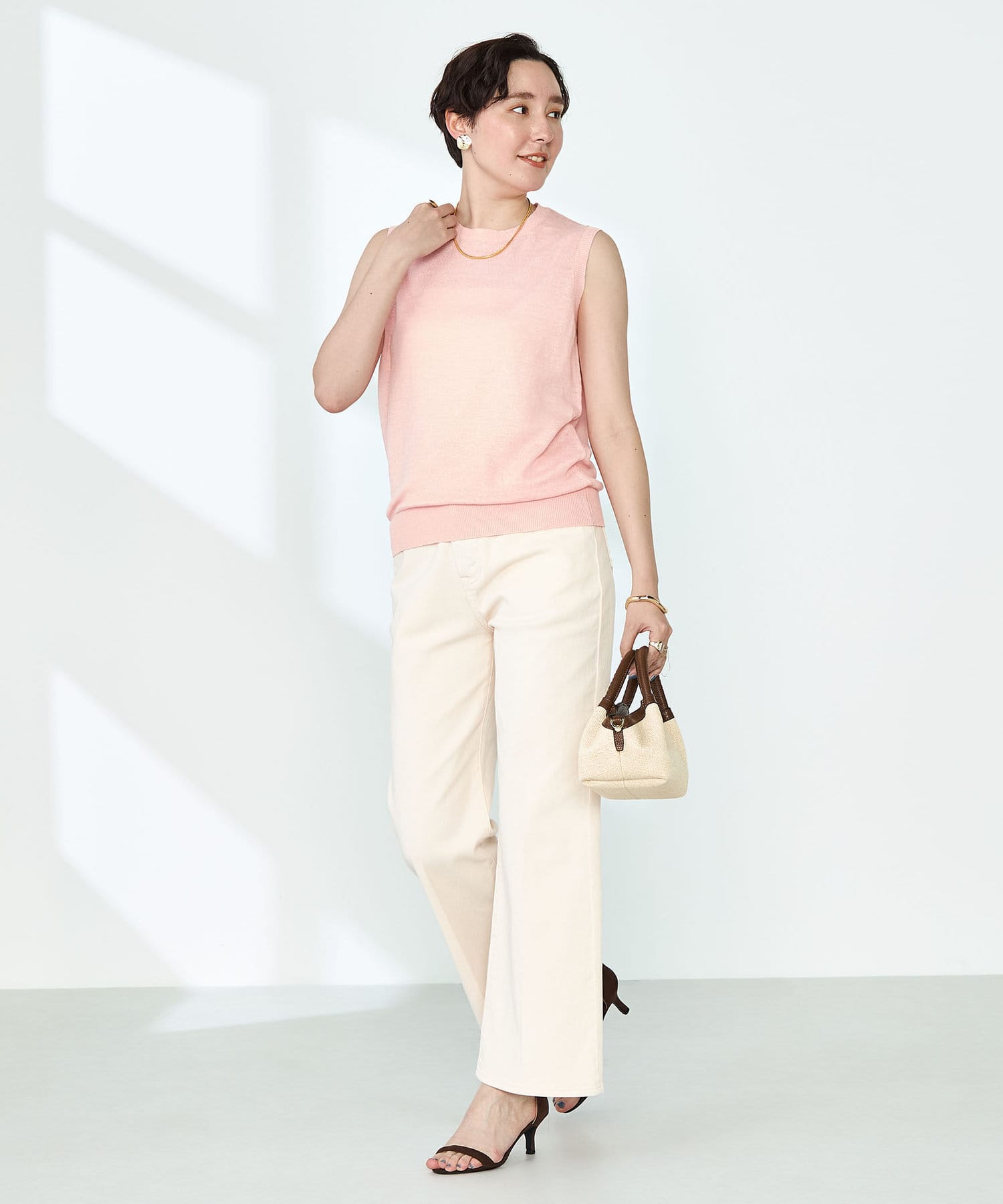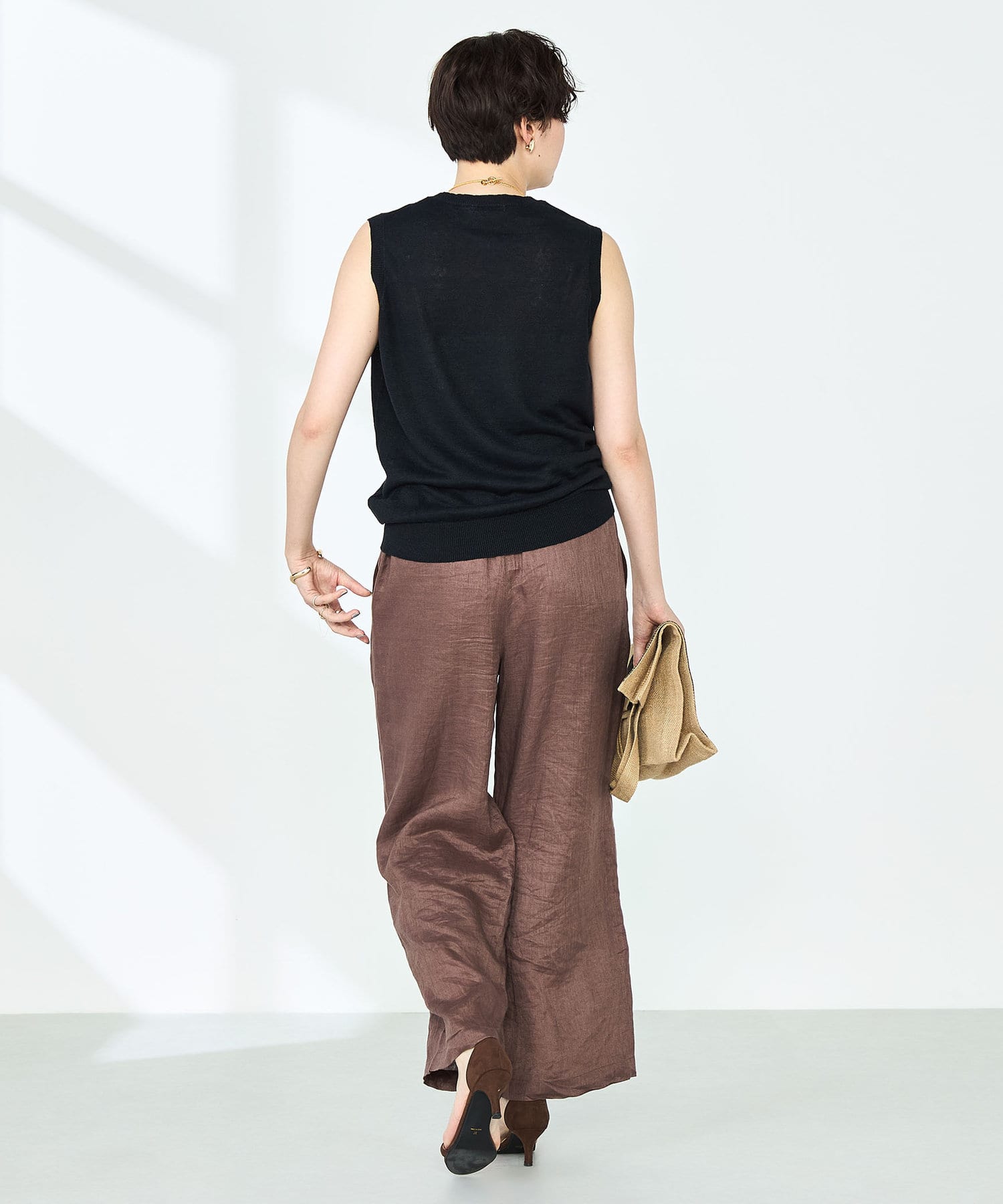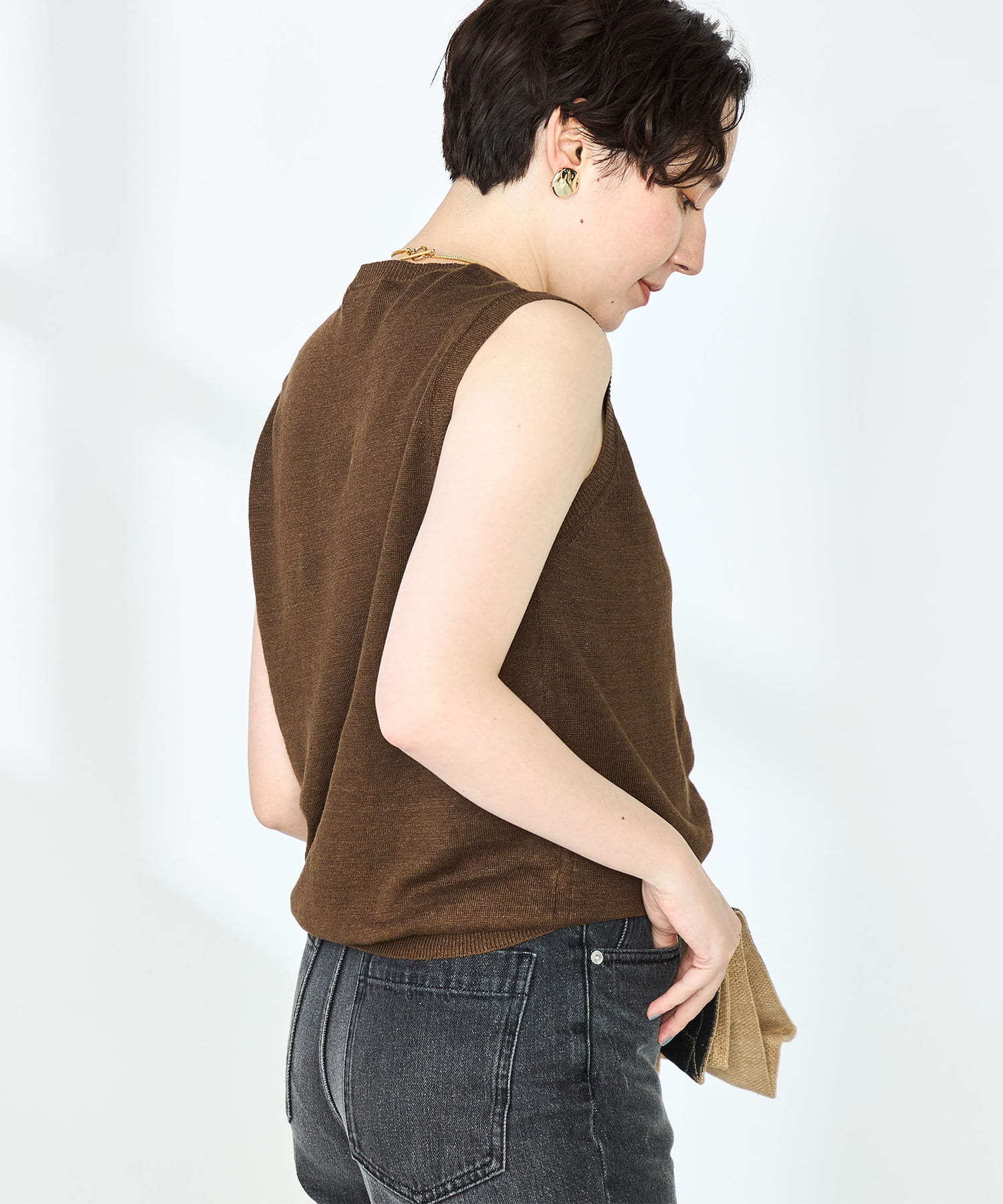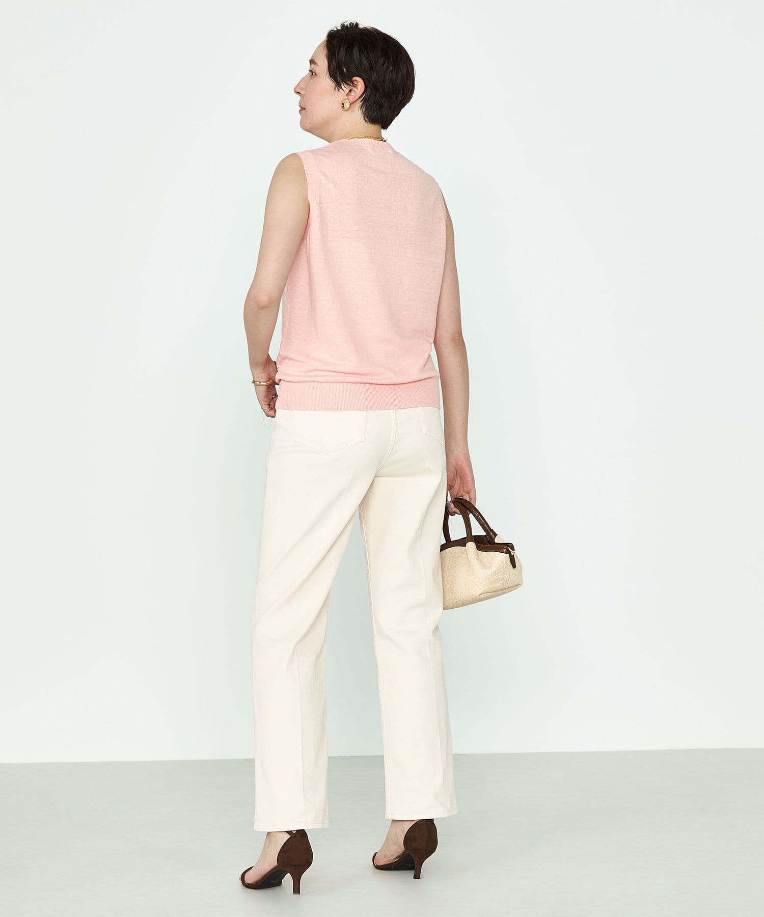 《アンサンブル対応》《手洗い可能》フレンチリネンノースリーブプルオーバーニット