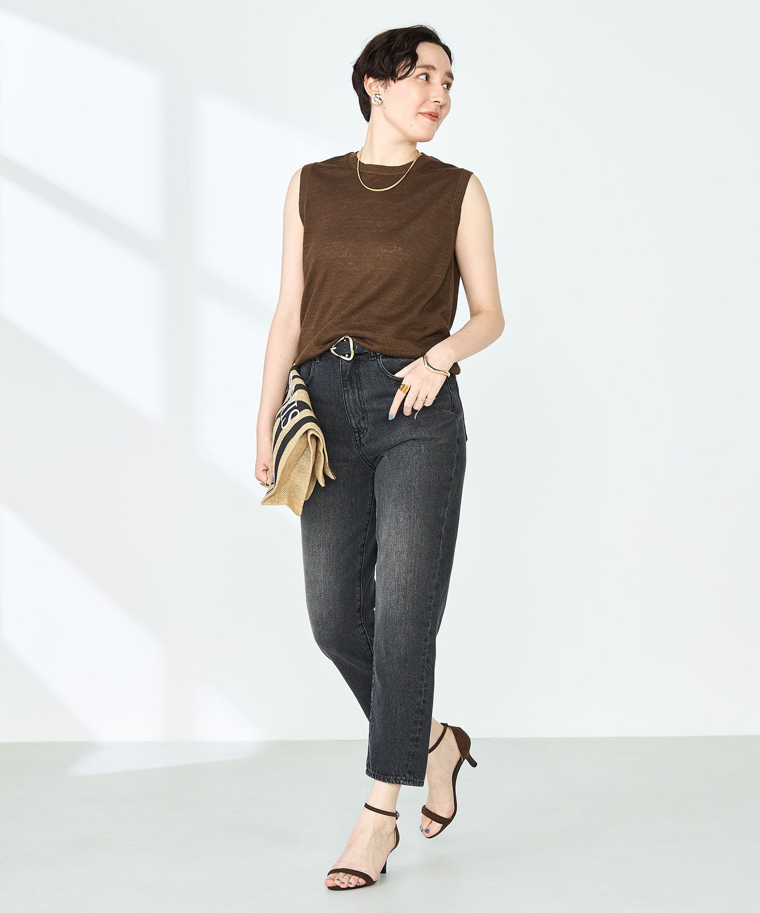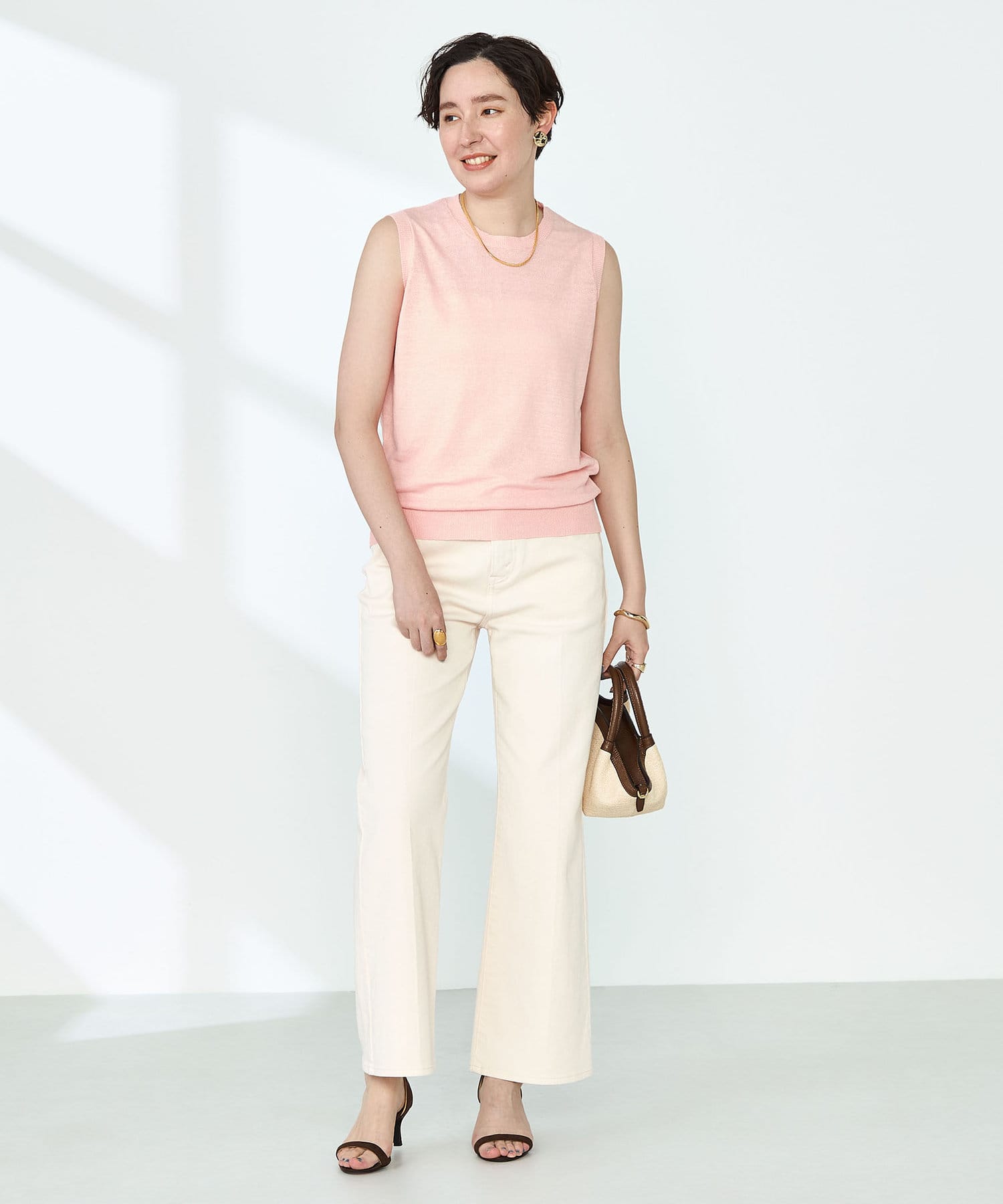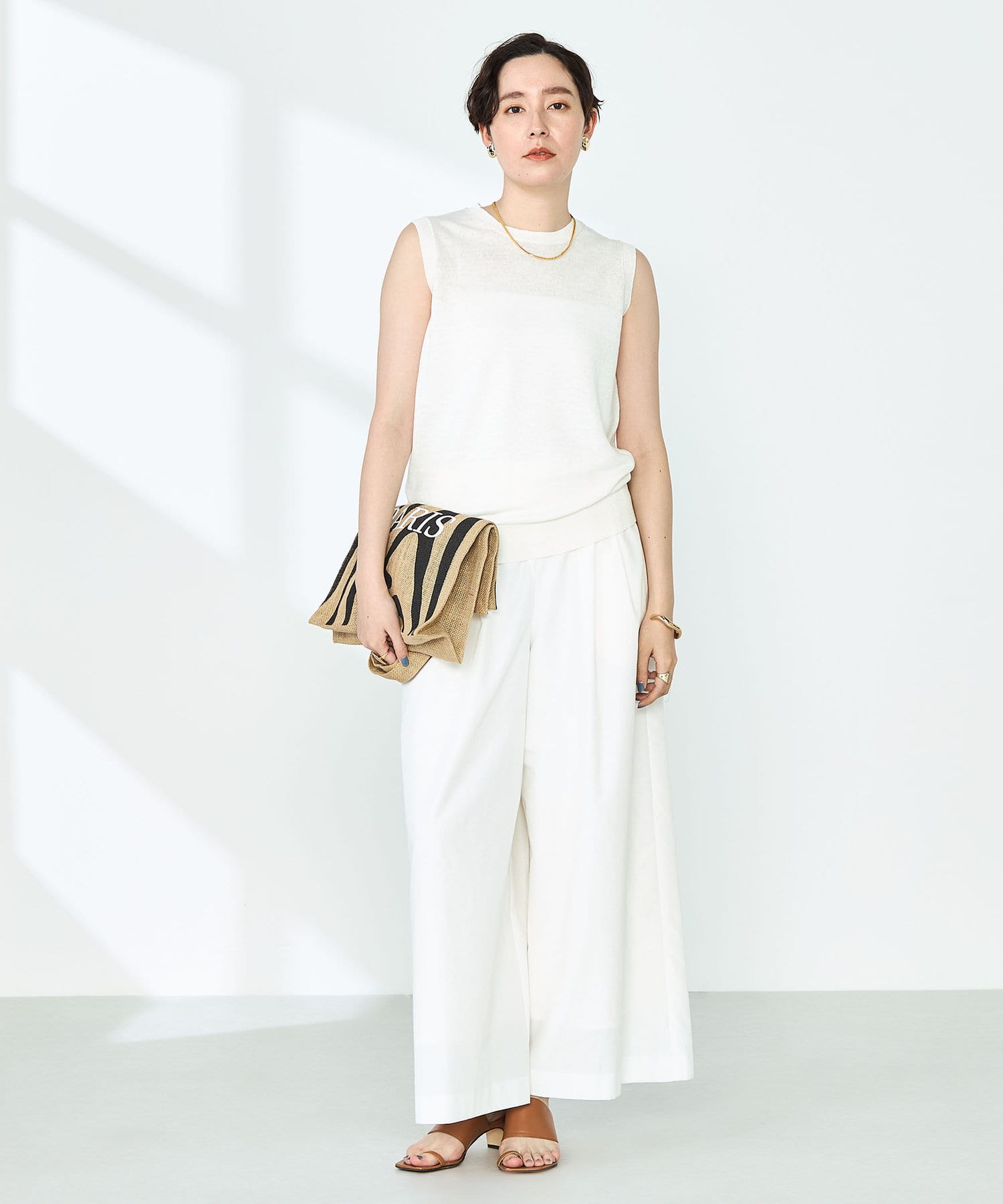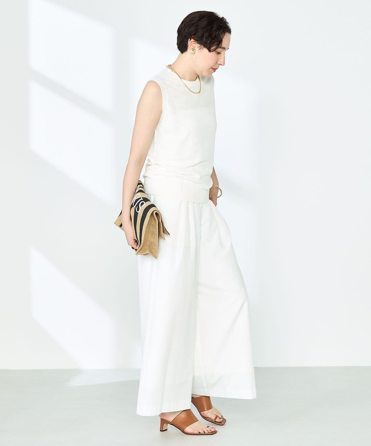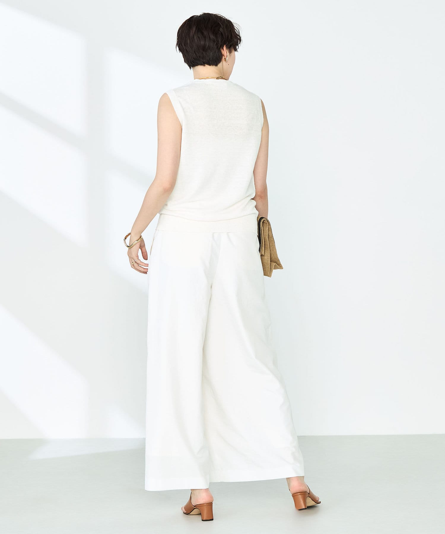 《アンサンブル対応》《手洗い可能》フレンチリネンノースリーブプルオーバーニット