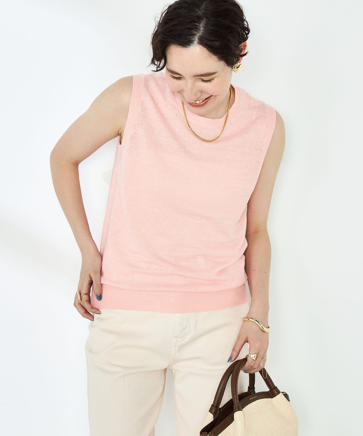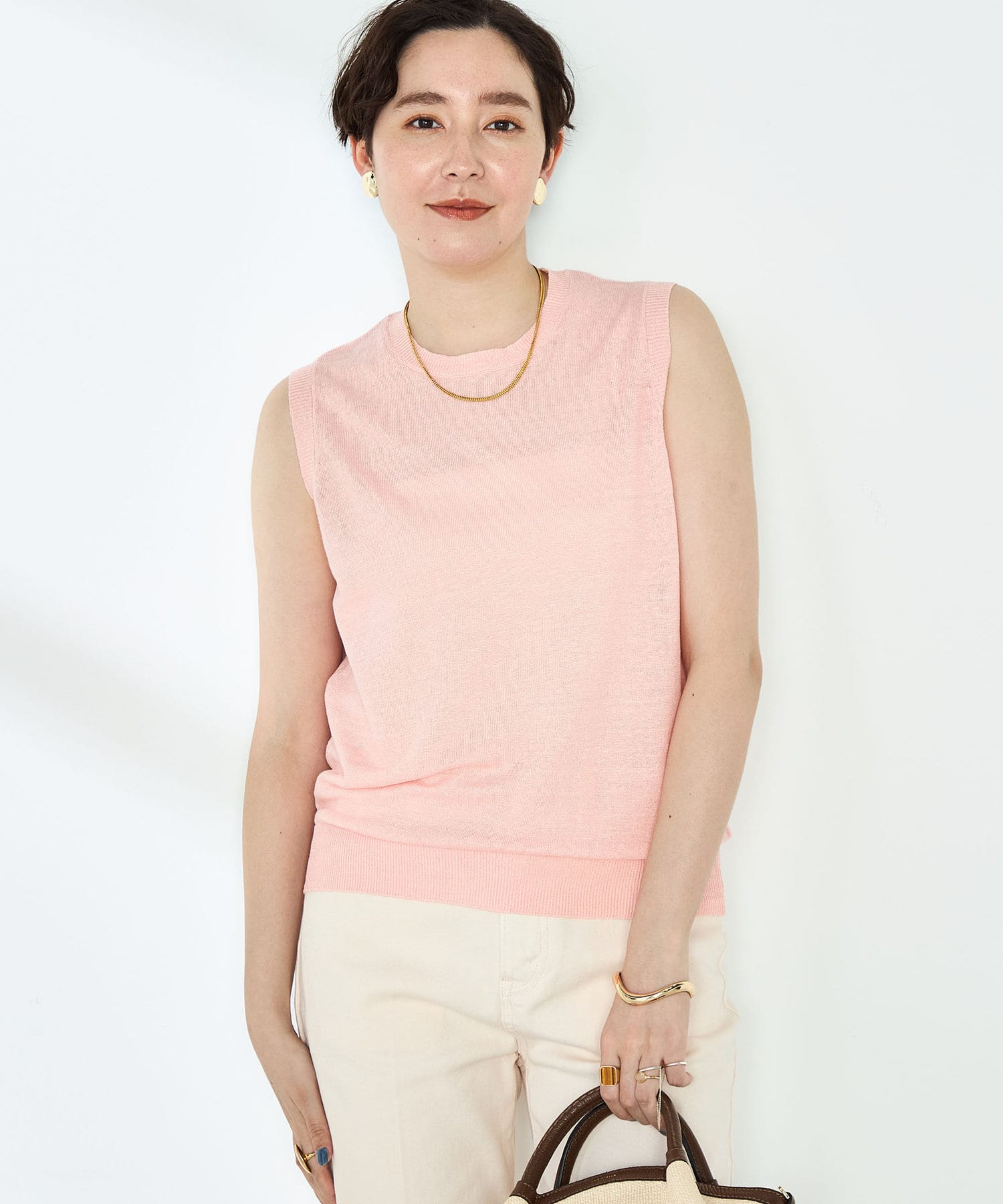 ・定番人気のフレンチリネンシリーズのノースリーブプルオーバー