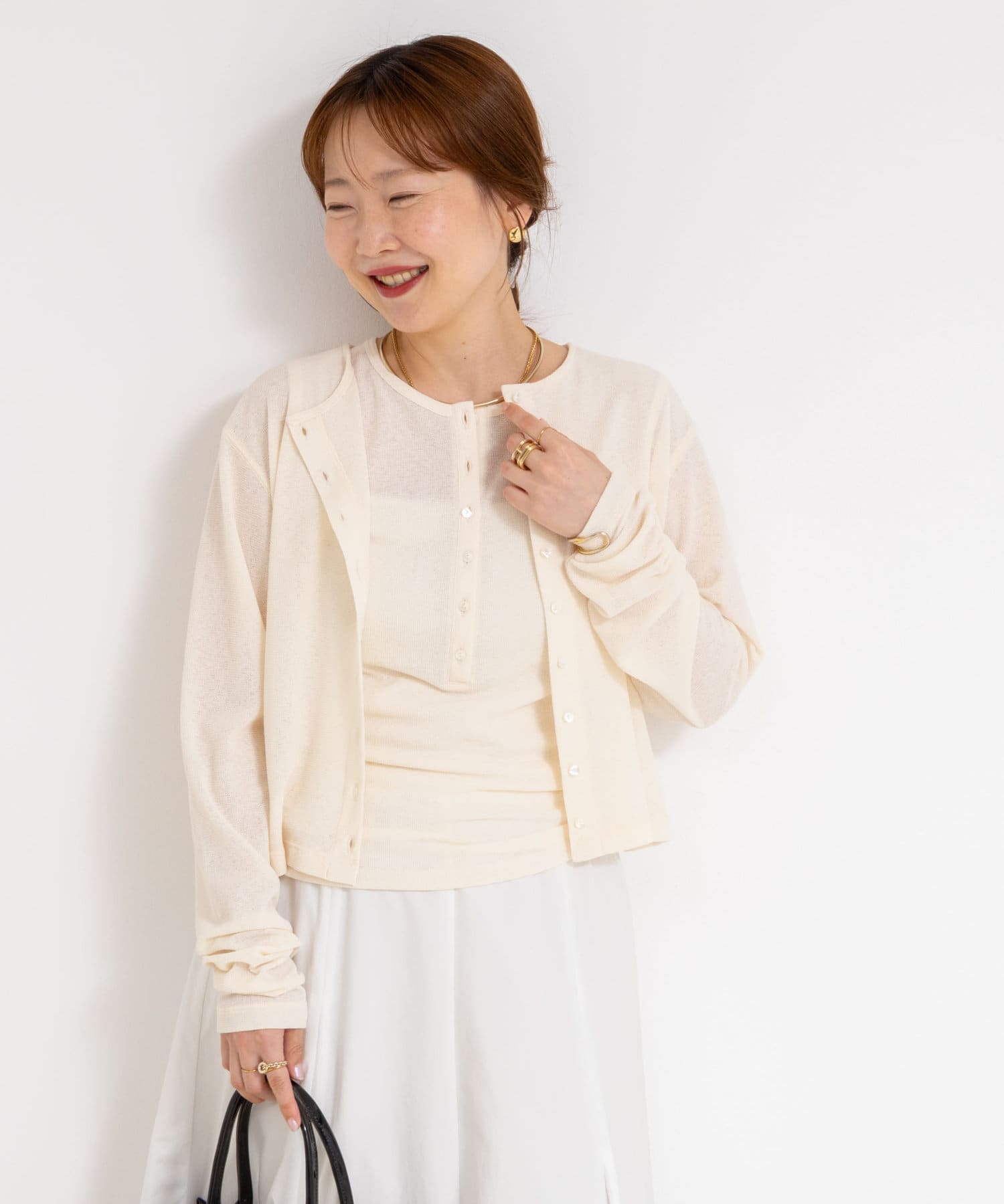 《アンサンブル対応》シアーワッフル2WAYカーディガン