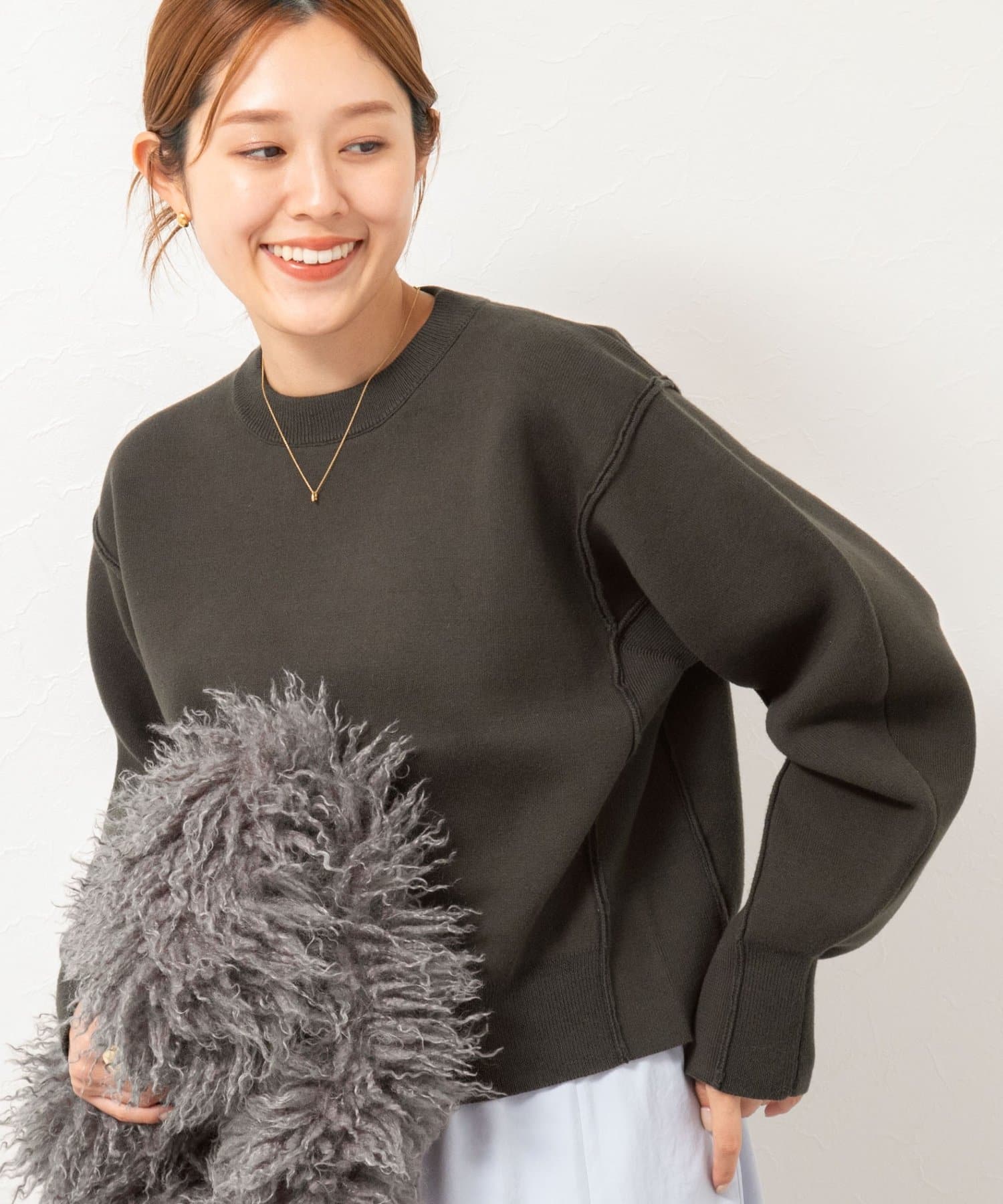 【WEB&一部店舗限定色アイテム】《手洗い可能》スウェット風ニットプルオーバー